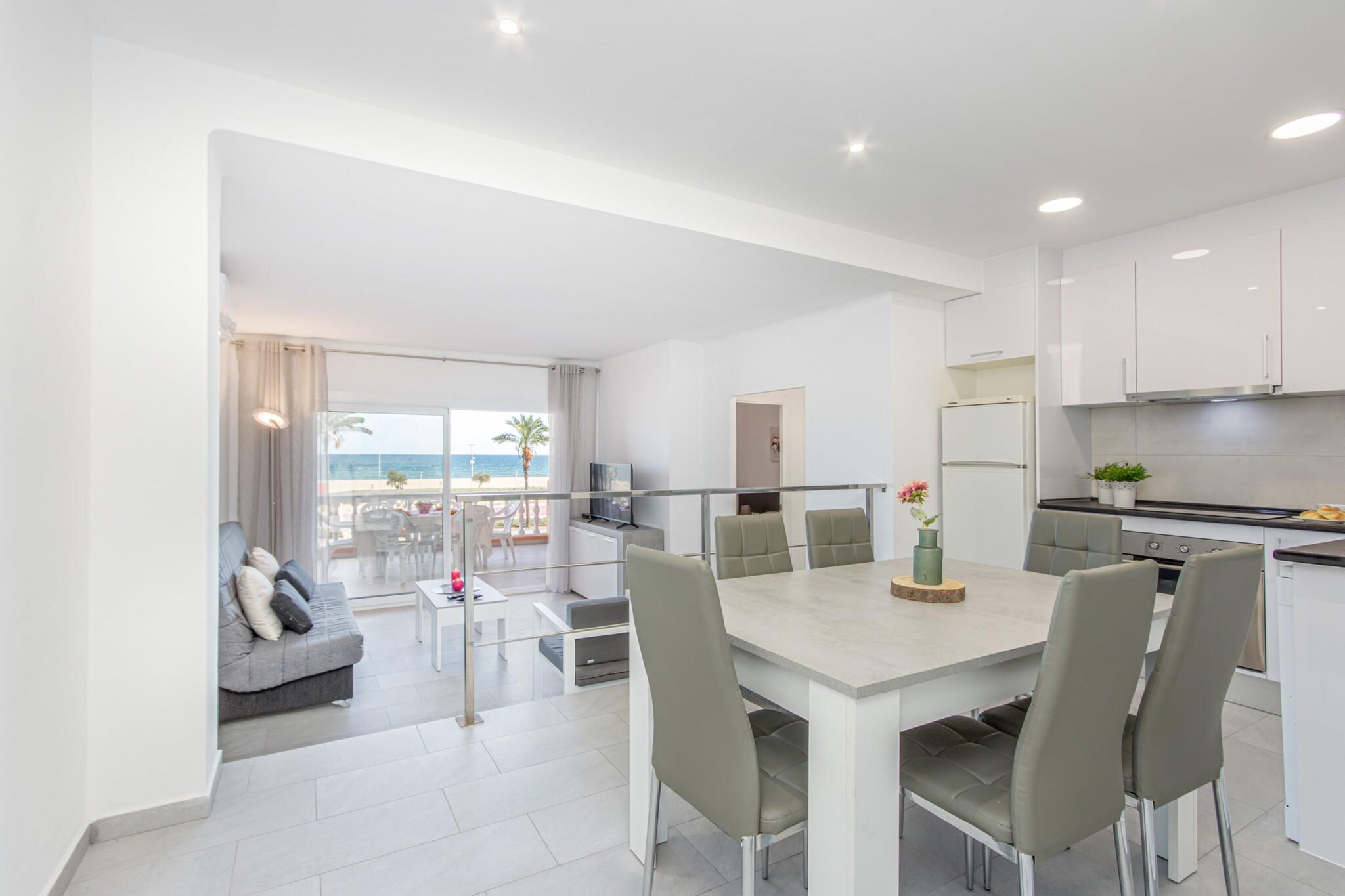 Nyd den ultimative ferie ved havet i denne smukt renoverede lejlighed ved stranden i Empuriabrava. Denne rummelige lejlighed på 86 m² ligger kun 50 meter fra sandstranden og har tre komfortable soveværelser og to moderne badeværelser, hvilket gør den ideel til familier eller grupper på op til seks gæster. Med en fantastisk havudsigt og en fredelig, familievenlig beliggenhed tilbyder den den perfekte blanding af komfort og kystcharme. Lejligheden er fuldt udstyret med alt hvad du behøver for et afslappende ophold, herunder aircondition overalt, Wi-Fi, satellit-tv og en privat terrasse med havemøbler. Det åbne køkken har keramisk kogeplade, ovn, mikrobølgeovn, opvaskemaskine og vaskemaskine, hvilket gør det nemt at nyde hjemmelavede måltider med udsigt. Gæsterne har også adgang til fire sæsonbestemte swimmingpools i komplekset (mod et ekstra gebyr). Bekvemt beliggende i nærheden af et supermarked og kun en kort køretur fra Peralada golfbane, Figueres AVE/TGV-stationen og Girona Lufthavn, er denne lejlighed en god base for at udforske Costa Brava. Uanset om du slapper af på stranden, nyder en middag ved solnedgang på terrassen eller udforsker nærliggende byer, tilbyder dette strandparadis en stilfuld og mindeværdig middelhavsferie.