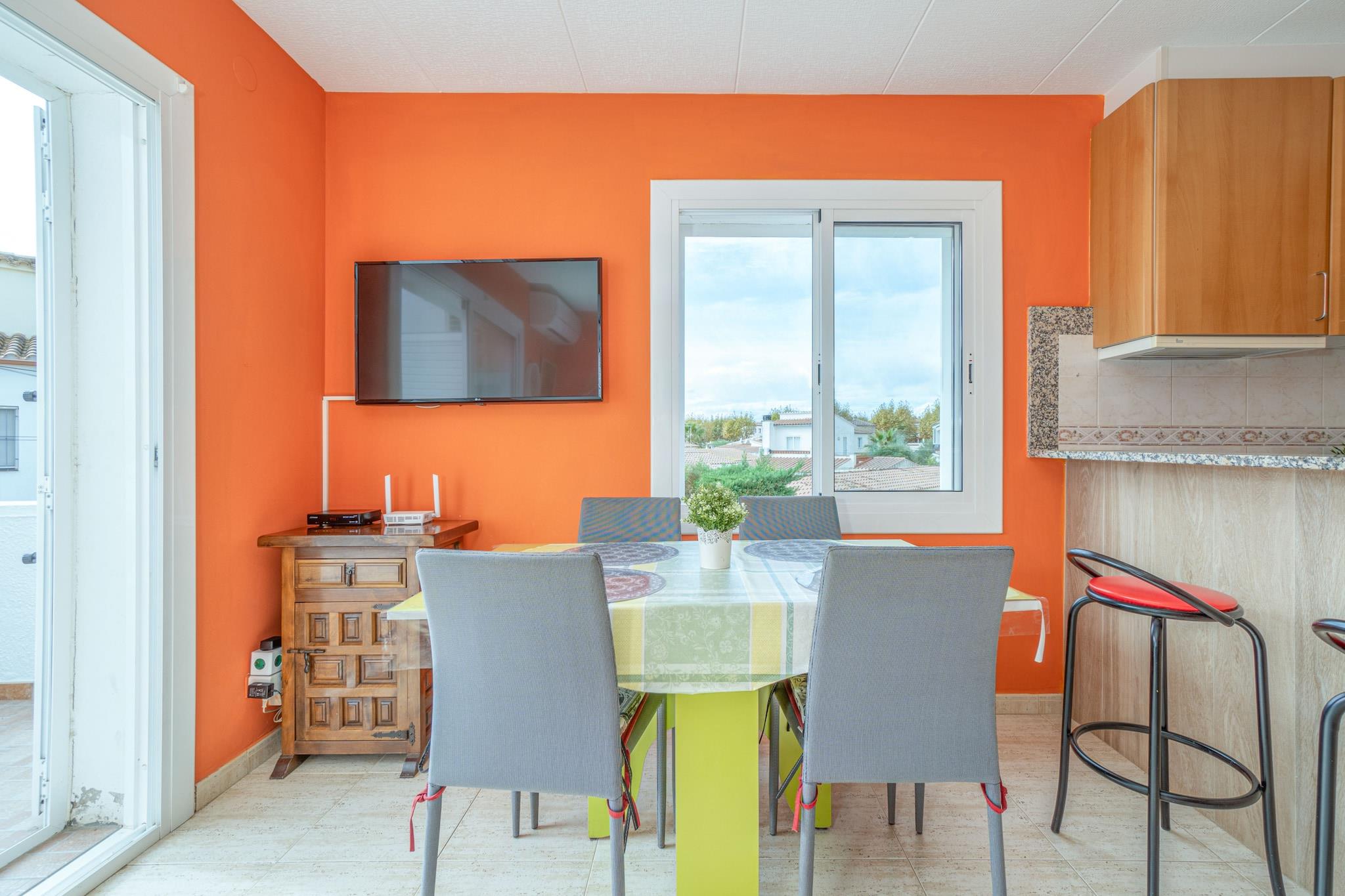 The lejlighed i Empuriabrava har 1 soveværelse(r) og kapacitet til 4 person(er). Bolig på 50 m² hjemlig og is very luminous. Er beliggende 120 m fra supermarkedet, 200 m fra stranden "Empuriabrava", 10 km fra vandland, 16 km fra golfbanen "Peralada", 20 km fra togstationen "Ave/Tgv Figueres", 65 km fra lufthavnen "Girona" og er beliggende i en ideel for familier område og tæt på butikker og restauranter. Tilbyder terrassemøbler, terrasse, vaskemaskine, grill, internet (wifi), varmepumpe, aircondition i stuen, utildækket parkering, TV, satellit (Sprog: Spansk, Tysk, Fransk). The amerikanske køkken, på keramiske kogeplader, med service og køleskab, mikroovn, tallerkener/bestik, køkkenredskaber, kaffemaskine og brødrister.