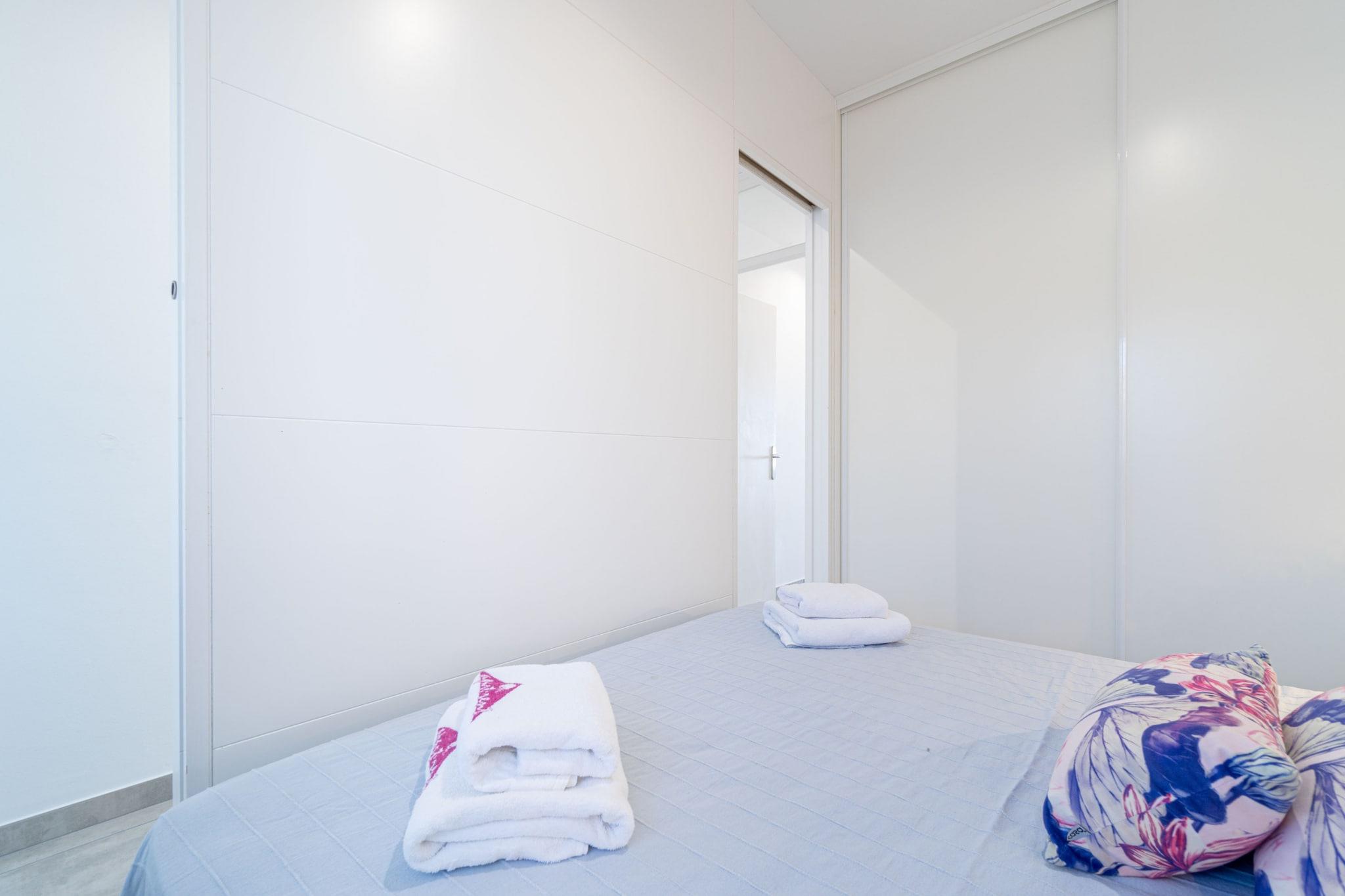 Denne moderne og komfortable lejlighed med 1 soveværelse i Empuriabrava er ideel til par eller små familier og har plads til op til 4 gæster. Med et boligareal på 40 m² og direkte havudsigt ligger den kun 50 meter fra sandstranden og 300 meter fra et supermarked. Lejligheden ligger i et fredeligt, familievenligt område og tilbyder en afslappende kystferie med alt, hvad der er nødvendigt for et behageligt ophold. Lejligheden har et soveværelse med dobbeltseng og en dobbelt sovesofa i opholdsstuen. Det åbne køkken er fuldt udstyret med keramisk kogeplade, mikrobølgeovn, køleskab, fryser, opvaskemaskine, kaffemaskine, brødrister og elkedel. Gæsterne kan nyde en privat terrasse med havemøbler, satellit-tv, Wi-Fi og aircondition i stuen. Der er også vaskemaskine og udendørs parkering for ekstra bekvemmelighed. Lejligheden har en perfekt beliggenhed for at udforske Costa Brava og ligger 16 km fra Peralada Golf, 20 km fra Figueres AVE/TGV-stationen og 65 km fra Girona Lufthavn. Kæledyr er velkomne efter anmodning, og ejendommen accepterer ikke ungdomsgrupper, hvilket sikrer en rolig og afslappende atmosfære. Med sin beliggenhed ved stranden og praktiske faciliteter er denne lejlighed et godt valg til en ferie ved havet i Empuriabrava.
