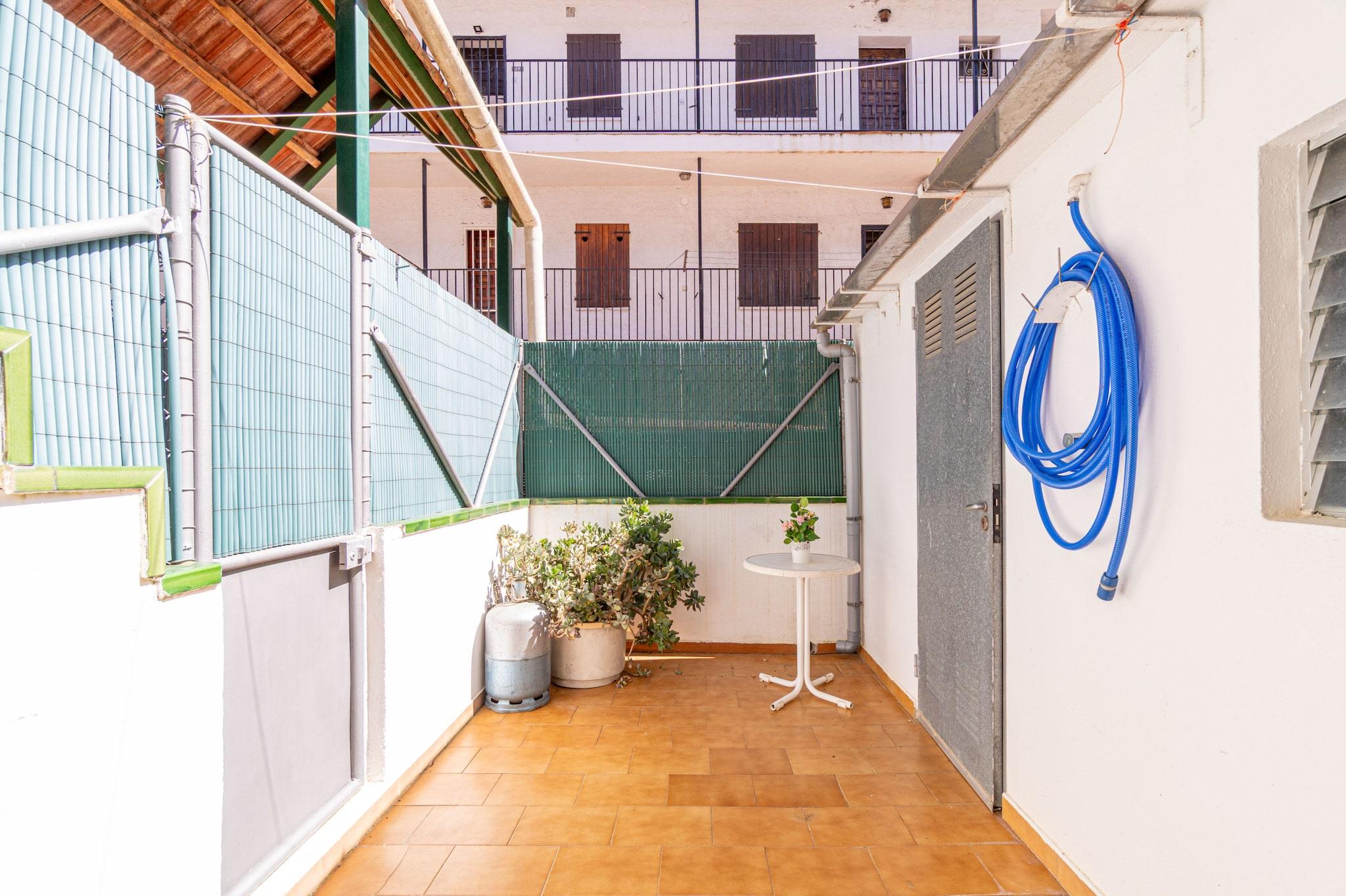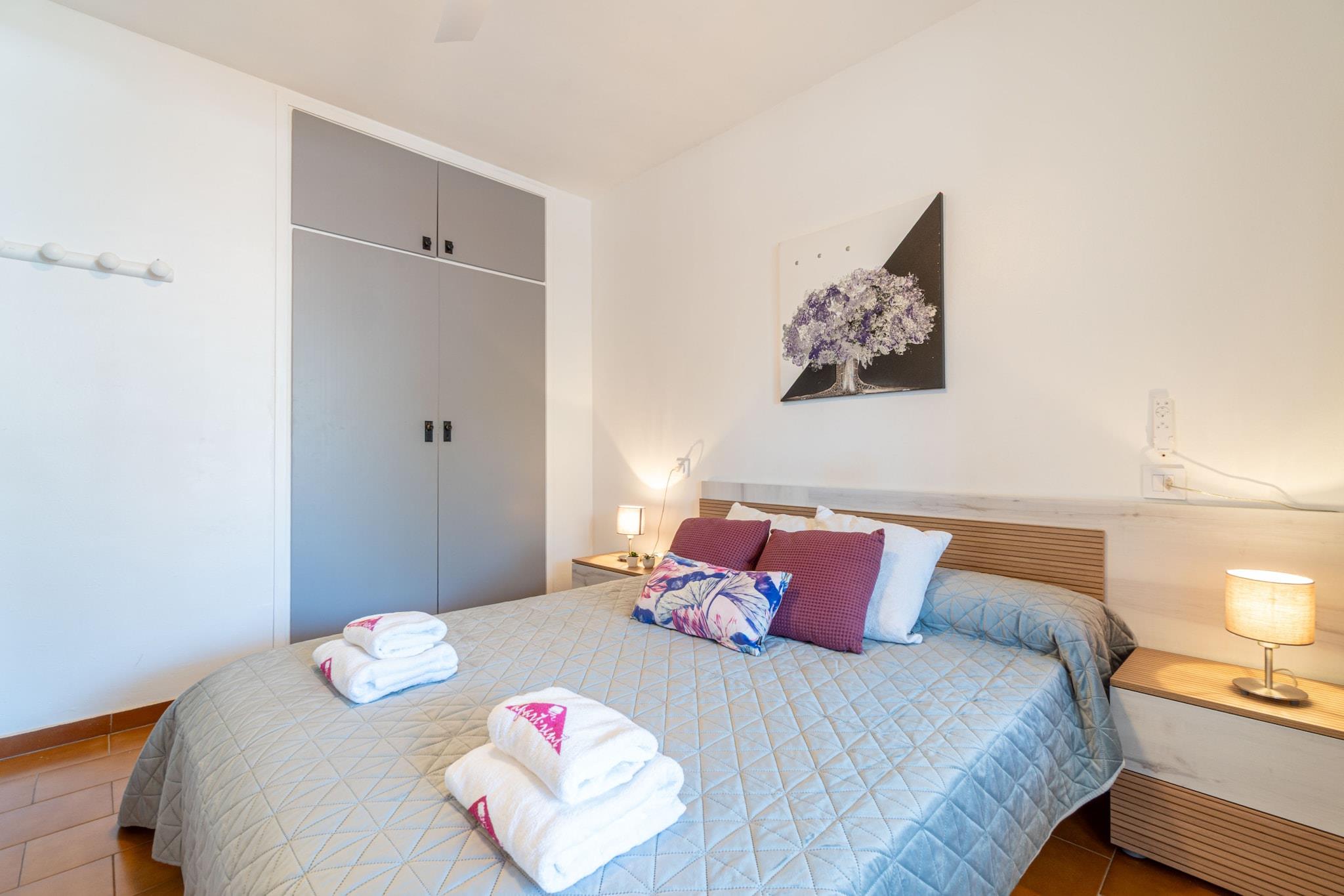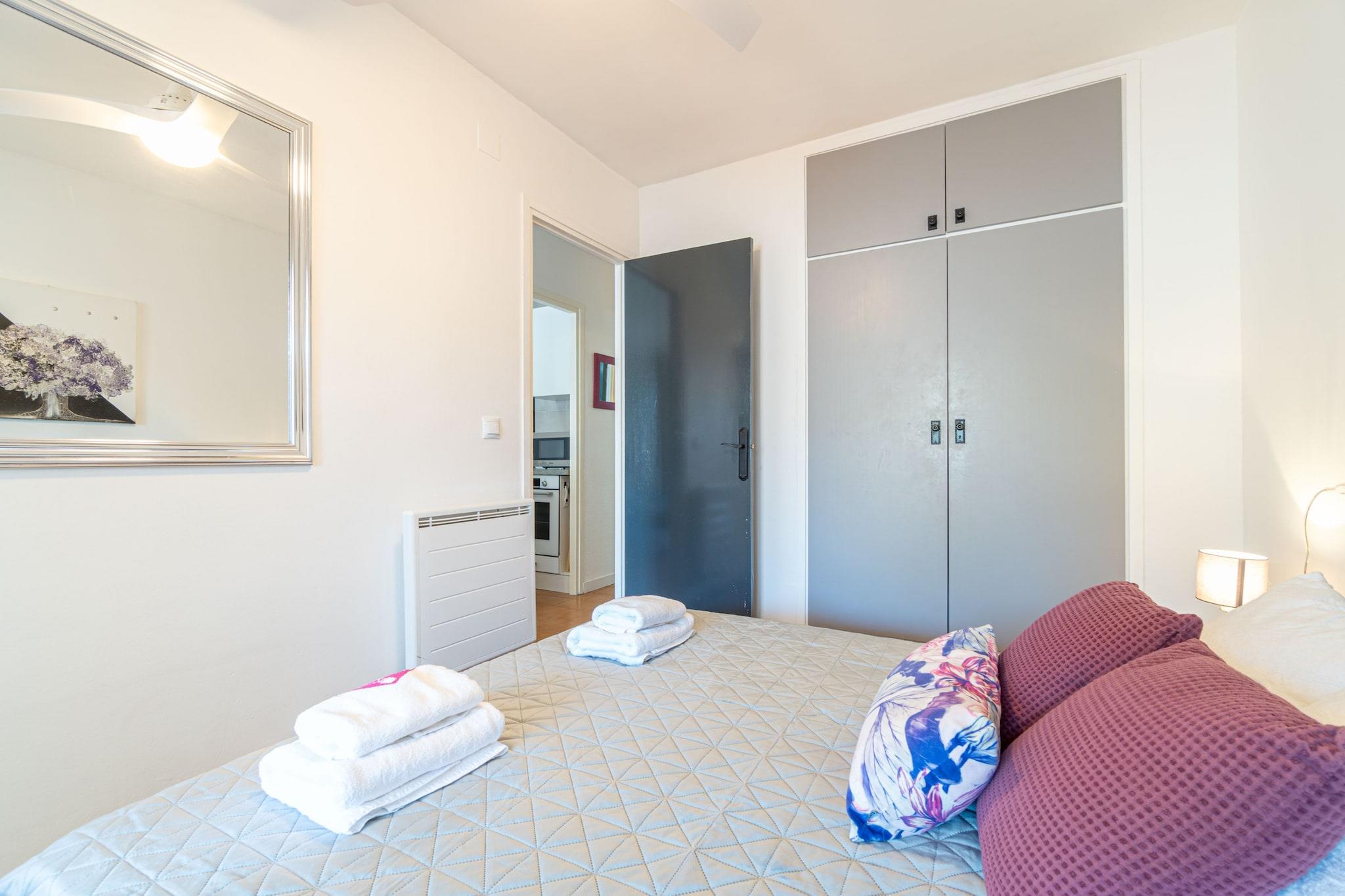 Denne moderne og velbeliggende lejlighed med 2 soveværelser i Empuriabrava tilbyder et komfortabelt ophold for op til 5 gæster. Med et boligareal på 52 m² og en rummelig terrasse på 33 m² ligger den kun 450 meter fra sandstranden og 150 meter fra et supermarked. Lejligheden ligger i et familievenligt område tæt på butikker og restauranter og er ideel til familier eller små grupper, der søger en afslappende ferie ved kysten. Lejligheden har to dobbeltværelser og en enkelt sovesofa i opholdsstuen. Det åbne køkken er fuldt udstyret med keramisk kogeplade, ovn, mikrobølgeovn, køleskab, kaffemaskine og brødrister. Gæsterne kan nyde faciliteter såsom Wi-Fi, aircondition i stuen, varmepumpe, vaskemaskine, satellit-tv og en privat garage i samme bygning. Den store terrasse med havemøbler er perfekt til udendørs spisning eller afslapning. Lejligheden, der ligger i stueetagen, er kæledyrsvenlig efter anmodning og tilbyder nem adgang til lokale attraktioner som Peralada Golf (16 km), Figueres AVE/TGV-station (20 km) og Girona Lufthavn (65 km). Med sin blanding af komfort, bekvemmelighed og nærhed til stranden er denne lejlighed et godt valg til en afslappet ferie i Empuriabrava.