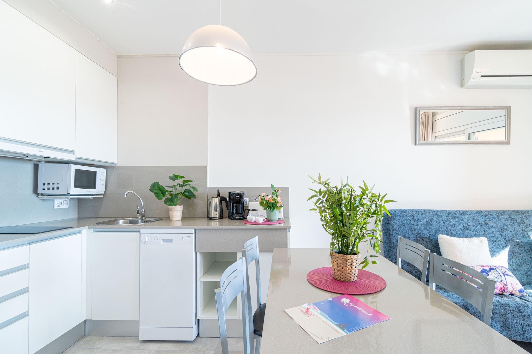 Denne moderne og hyggelige lejlighed med 1 soveværelse i Empuriabrava er perfekt til par eller små familier og har komfortabel plads til op til 4 gæster. Med et boligareal på 35 m² og direkte havudsigt ligger den kun 50 meter fra sandstranden og 300 meter fra et supermarked. Beliggende i et fredeligt, familievenligt område lige ved havet, tilbyder lejligheden en afslappende kystferie med alt det nødvendige for et behageligt ophold. Lejligheden har et soveværelse med dobbeltseng og en dobbelt sovesofa i opholdsstuen. Det åbne køkken er fuldt udstyret med keramisk kogeplade, mikrobølgeovn, køleskab, opvaskemaskine, vaskemaskine, kaffemaskine og køkkenredskaber. Gæsterne kan nyde en privat terrasse med havemøbler, satellit-tv, Wi-Fi og aircondition i stuen. Udendørs parkering er inkluderet, og lejligheden ligger i stueetagen for nem adgang. Kæledyr er velkomne efter anmodning, og lejligheden ligger også tæt på lokale attraktioner såsom Peralada Golf (16 km), Figueres AVE/TGV-station (20 km) og Girona Lufthavn (65 km). Med sin beliggenhed ved stranden, praktiske faciliteter og indbydende atmosfære er denne lejlighed et godt valg til en afslappende og overkommelig ferie i Empuriabrava.