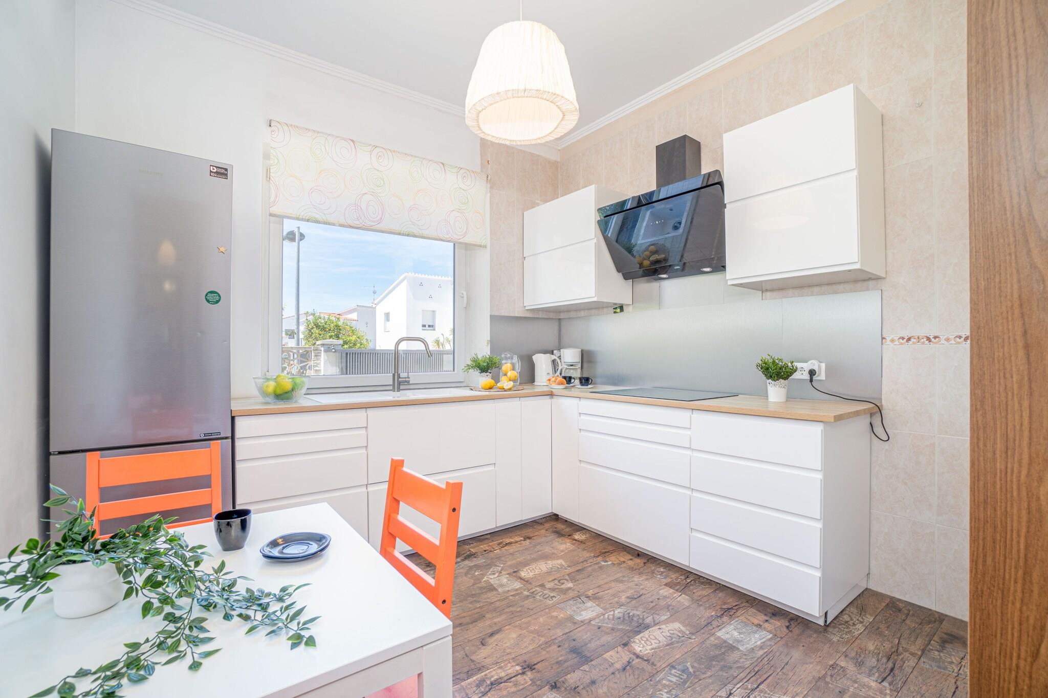 0125-MONTGRI House i Empuriabrava er en rummelig og stilfuld villa, der er perfekt til familier eller grupper, og som tilbyder 200 m² boligareal og en privat pool. Med tre soveværelser og en dobbeltsovesofa har den komfortabel plads til op til otte gæster. Beliggende kun 600 meter fra stranden og 400 meter fra et supermarked, ligger den i et roligt boligområde, ideelt til en afslappende kystferie. Denne villa er fuldt udstyret til komfort og bekvemmelighed med en indhegnet have, terrasse, grill, pejs og udendørs parkering. Det separate køkken inkluderer keramisk kogeplade, køleskab, mikrobølgeovn, ovn, fryser, opvaskemaskine og alle nødvendige redskaber. Gæsterne kan nyde aircondition i stuen og nogle soveværelser, centralvarme, satellit-tv og gratis Wi-Fi. Med nem adgang til Peralada Golfbane (16 km), Figueres AVE/TGV-station (20 km) og Girona Lufthavn (65 km) er villaen godt forbundet til at udforske regionen. Der opkræves et refunderbart depositum, og der tilbydes valgfrie tjenester som sengelinned, håndklæder og slutrengøring. Kæledyr er ikke tilladt, og ungdomsgrupper accepteres ikke, hvilket sikrer et fredeligt og familievenligt miljø.