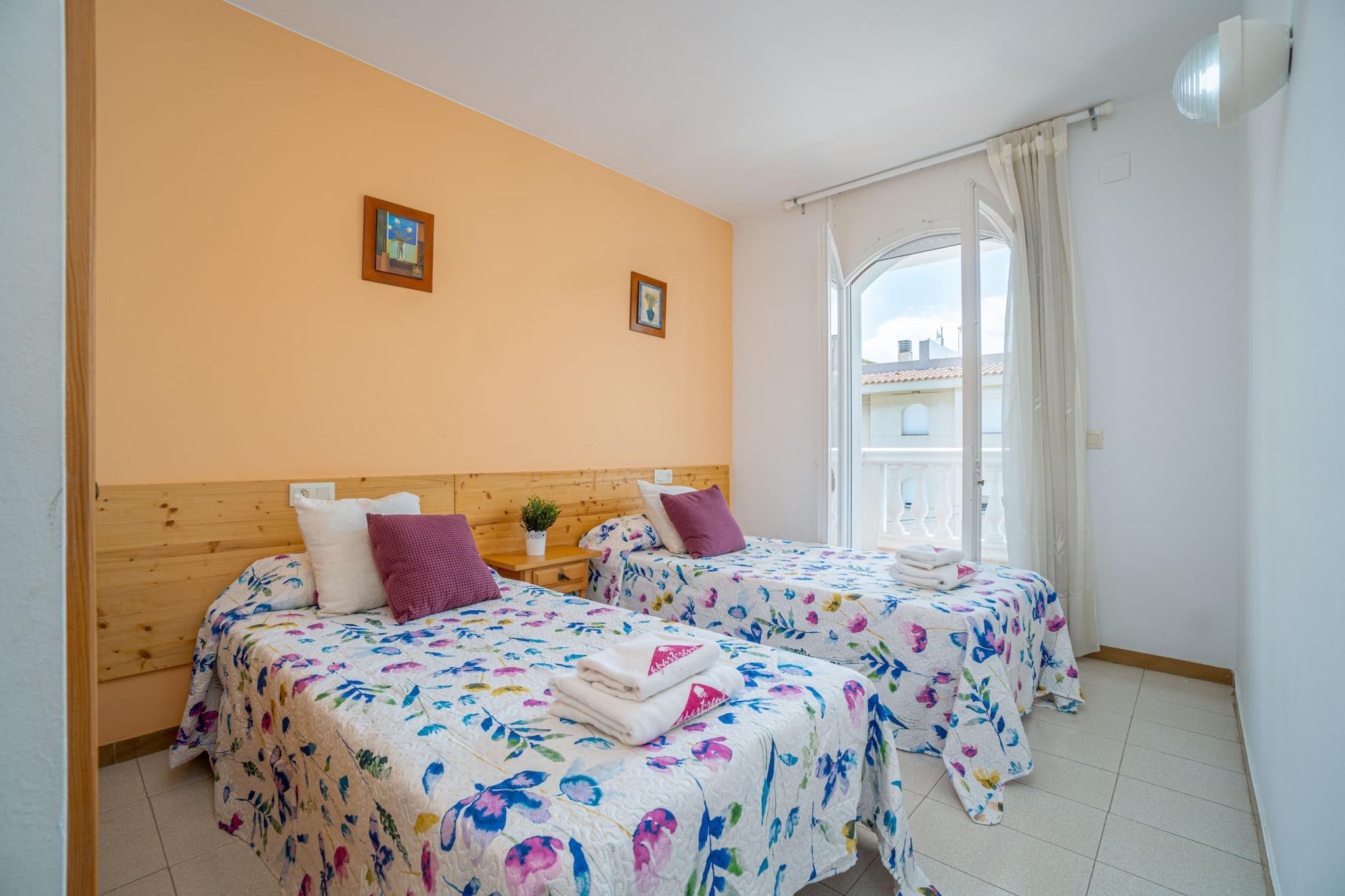 Denne komfortable lejlighed med 2 soveværelser i Empuriabrava tilbyder 67 m² boligareal og kan rumme op til 6 gæster. Beliggende kun 3 km fra stranden og 100 meter fra et supermarked, er den ideel for familier eller grupper, der søger et fredeligt tilflugtssted nær naturen. Lejligheden har en privat terrasse med udsigt over søen og ligger i et roligt boligområde tæt på naturreservatet Aiguamolls de l'Empordà. Det åbne køkken er fuldt udstyret med keramisk kogeplade, ovn, mikrobølgeovn, fryser, opvaskemaskine, kaffemaskine, brødrister og elkedel. Gæsterne kan nyde satellit-tv, Wi-Fi (valgfrit), vaskemaskine og to ventilatorer for komfort. Lejligheden inkluderer udendørs parkering i samme bygning og er kæledyrsvenlig efter anmodning, hvilket gør den til en god mulighed for rejsende med kæledyr. Lejligheden er bekvemt placeret i nærheden af Peralada Golfbane (12 km), Figueres AVE/TGV-station (15 km) og Girona Lufthavn (65 km) og har gode forbindelser til Costa Brava. Der opkræves et refunderbart depositum, og der tilbydes valgfrie tjenester såsom sengelinned, håndklæder og slutrengøring. Fleksibel indtjekning tilbydes i lavsæsonen, og sen ankomst kan imødekommes via en sikker nøgleboks.