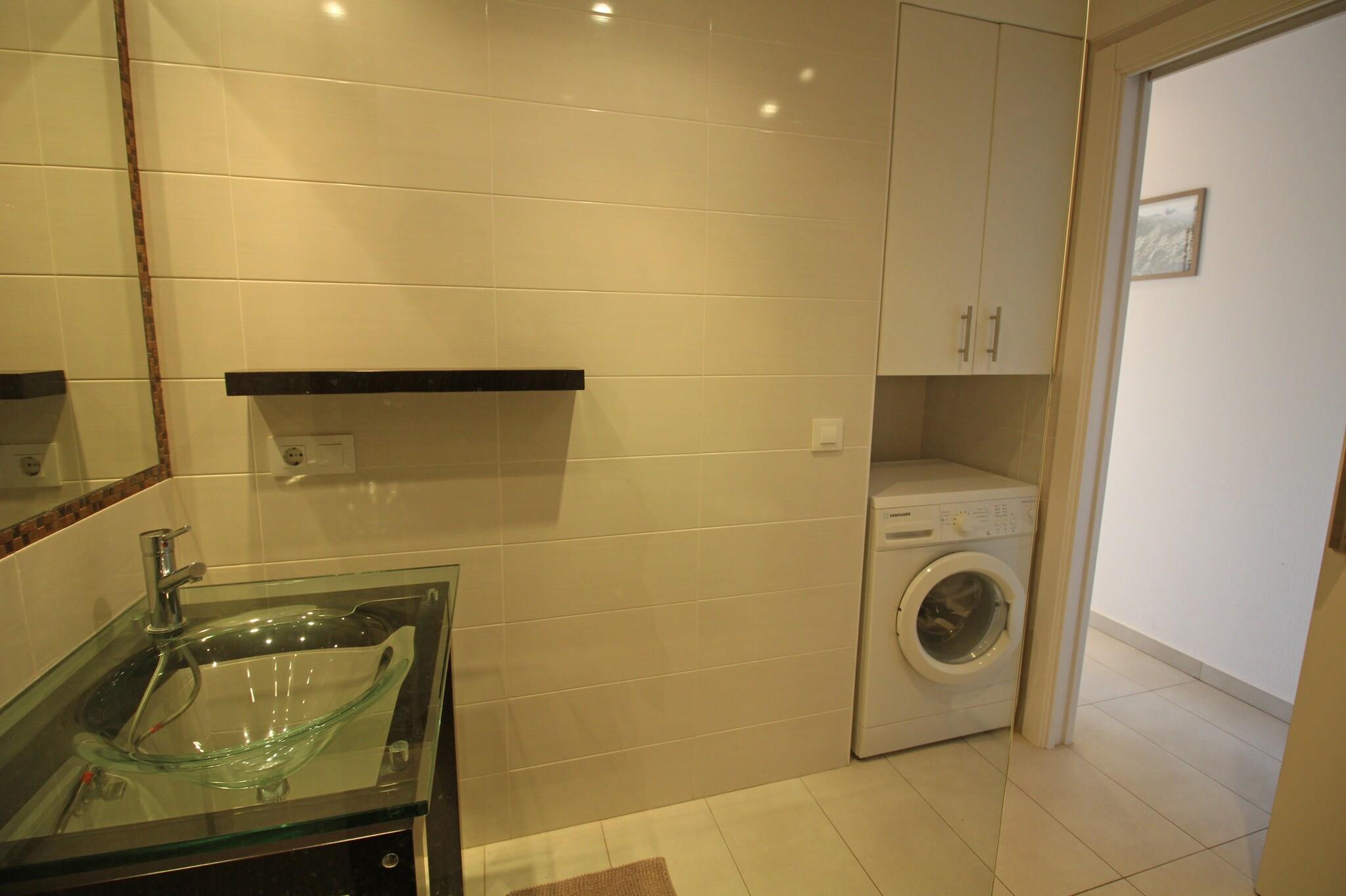 På 1. etage: (Stue(enkeltsovesofa, enkeltsovesofa, Fjernsyn(parabol), spisebord, sofahjørne), åbent køkken(kogeplade, brødrister, kaffemaskine, ovn, mikrobølgeovn, opvaskemaskine , køle-fryseskab, ), soveværelse(dobbeltseng), badeværelse(bruser)) Internetadgang, Havemøbler, vaskemaskine, klimaanlæg, terrasse, swimmingpool(deles med andre gæster, herunder en del for børn (maks. dybde 50 cm)), strygejern, luft til luft-varmepumpe