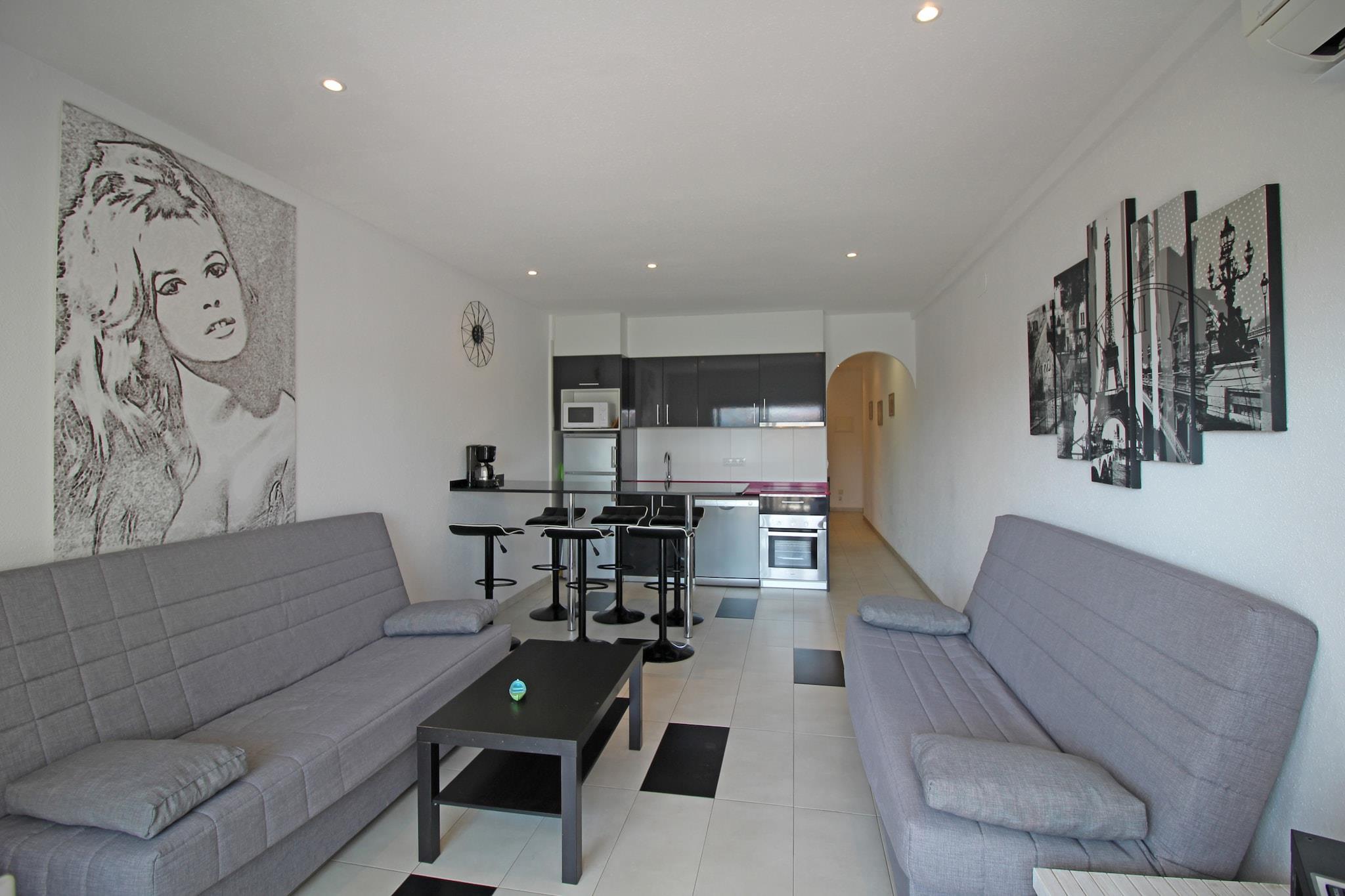 Denne charmerende lejlighed på 45 m² i Empuriabrava er ideel til par eller små familier og tilbyder indkvartering til op til 4 gæster. Den ligger på første sal og har et soveværelse med en dobbeltseng og to enkeltsofaer i opholdsstuen. Lejligheden har en 7 m² stor terrasse med dejlig udsigt over kanalen og de omkringliggende grønne områder, perfekt til at nyde en fredelig morgen eller aften udendørs. Det åbne køkken er fuldt udstyret med keramisk kogeplade, køleskab, mikrobølgeovn, ovn, opvaskemaskine, kaffemaskine og brødrister, hvilket gør det nemt at tilberede måltider derhjemme. Yderligere faciliteter inkluderer aircondition i stuen, Wi-Fi (valgfrit), satellit-tv, vaskemaskine og adgang til en fælles pool og børnepool. Lejligheden ligger i et roligt, familievenligt boligområde. Lejligheden har en bekvem beliggenhed kun 700 meter fra et supermarked og 3 km fra sandstranden. Derudover tilbyder den nem adgang til lokale attraktioner såsom Peralada Golfbane (16 km), Dalí-museet i Figueres (20 km) og Girona Lufthavn (65 km). Uanset om du leder efter et afslappende tilflugtssted eller en base for at udforske Costa Brava, tilbyder denne lejlighed et komfortabelt og naturskønt ophold.