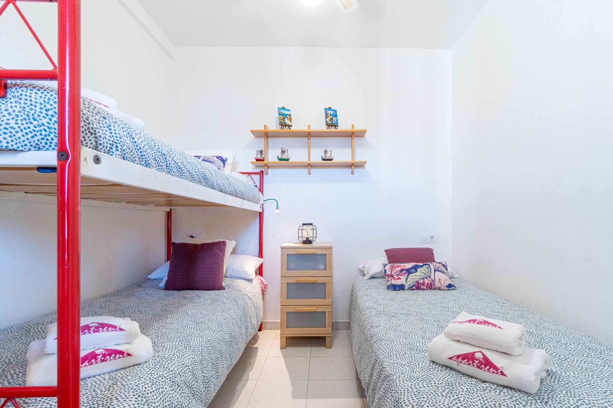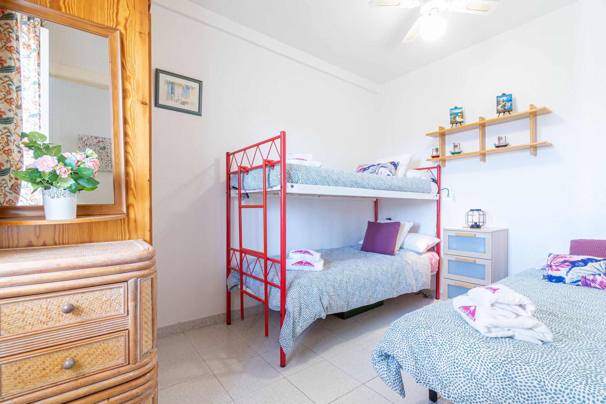 Denne komfortable lejlighed på 72 m² i Empuriabrava er ideel til familier eller små grupper og tilbyder indkvartering til op til 5 gæster. Den ligger på anden sal og har to soveværelser - et med en dobbeltseng og det andet med en enkeltseng og en køjeseng - hvilket gør den til et godt valg for både voksne og børn. Lejligheden har en privat terrasse med udsigt over kanalen og poolen, perfekt til at nyde de fredelige omgivelser. Det åbne køkken er fuldt udstyret med keramisk kogeplade, køleskab, mikrobølgeovn, ovn, kaffemaskine, brødrister og alt nødvendigt køkkenudstyr. Gæsterne kan nyde moderne bekvemmeligheder såsom Wi-Fi, aircondition i stuen, varmepumpe, vaskemaskine og tv. Komplekset tilbyder også en fælles pool og en børnepool samt udendørs parkering og to ventilatorer for ekstra komfort. Lejligheden ligger i et roligt boligområde, kun 700 meter fra et supermarked og 3 km fra sandstranden. Den ligger også tæt på lokale attraktioner som Peralada Golfbane (16 km), Dalí-museet i Figueres (20 km) og Girona Lufthavn (65 km). Med sin naturskønne udsigt, familievenlige indretning og bekvemme beliggenhed er denne lejlighed en god base for en afslappende ferie i Empuriabrava.