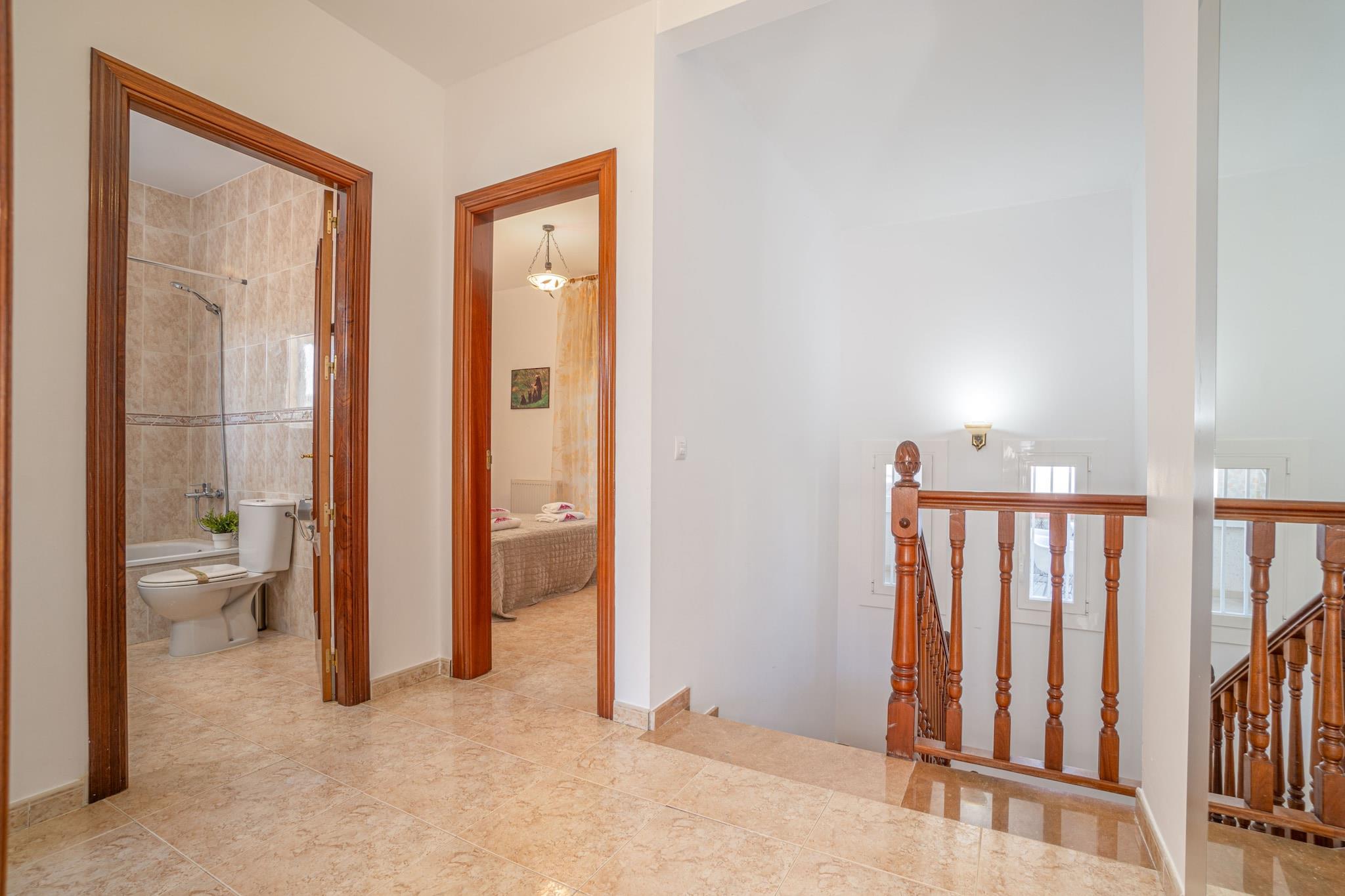 Køkken(elkedel, brødrister, kaffemaskine, ovn, mikrobølgeovn, opvaskemaskine , køleskab, ), stue / spisestue(Fjernsyn(parabol), spisebord, sofahjørne), soveværelse(dobbeltseng), soveværelse(dobbeltseng), soveværelse(dobbeltseng), soveværelse(enkeltseng, enkeltseng), badeværelse(bruser), badeværelse(badekar), badeværelse(badekar), Havemøbler, vaskemaskine, varme(central), klimaanlæg, terrasse, grill, parkering, swimmingpool(privat)