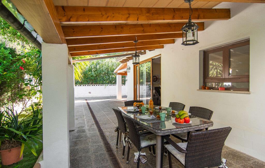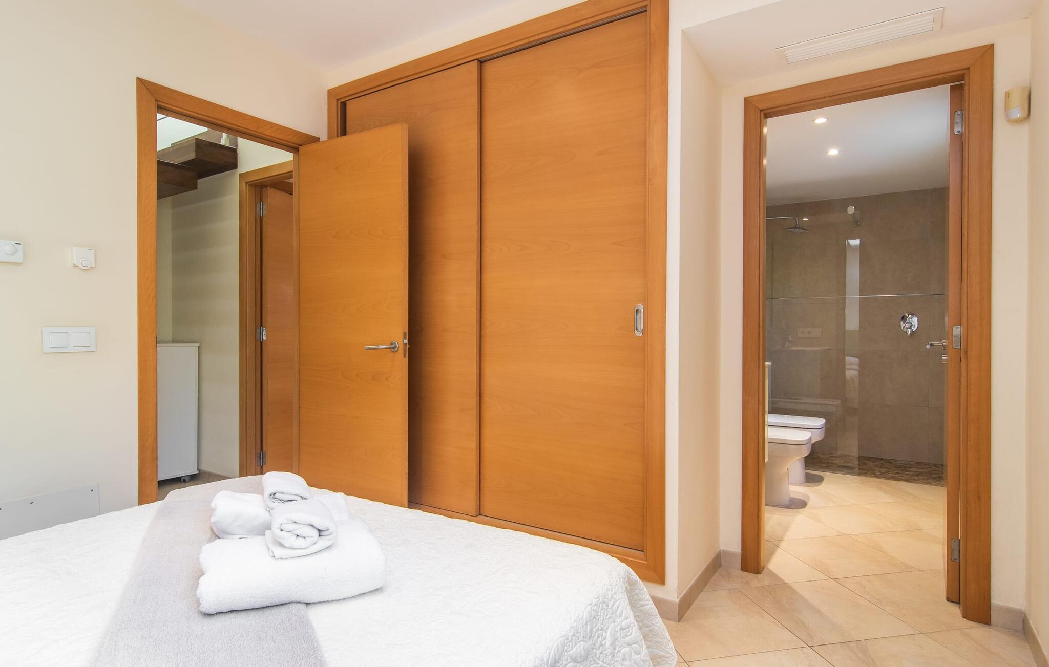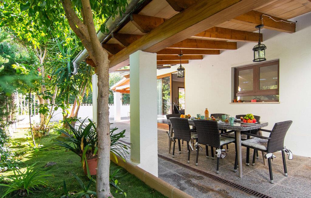 Strandvillaen "Es Baladre Beach" er en sand perle for feriegæster. Kun 100 meter fra stranden er det ideelt placeret, hvilket betyder, at der er lidt behov for en lejebil og ingen behov for en pool. Middelhavet med sin forfriskende brise og duften af fyrretræer er praktisk talt lige uden for døren. Villaens udendørsområde er omgivet af middelhavsplanter, hvilket giver privatliv og en rolig atmosfære. To overdækkede terrasser giver mange muligheder for at slappe af. Den ene har en spiseplads med komfortable kvalitetsmøbler nær kulgrillen, velegnet til både morgenmad og aftensmad. Den anden terrasse er et afslappende loungehjørne, ideelt til at slappe af om aftenen. Liggestole er tilgængelige til solbadning eller en afslappende siesta. Villaens indre er lige så afslappet som dens beliggenhed, med lyse gulvfliser og blød stemningsbelysning. Den åbne stue, spisestue og køkken er rummelig og alsidig. Køkkenet er fuldt udstyret og morgenmadsbaren i amerikansk stil med barstole sikrer en omgængelig selvforplejningsoplevelse. I stueetagen er der to soveværelser med dobbeltsenge, et med en-suite badeværelse, mens et tredje soveværelse er ovenpå, også med en-suite badeværelse. Villaens gulvvarme sikrer komfort hele året rundt, hvilket gør "Es Baladre Beach" til et perfekt rejsemål selv i de milde vintermåneder. Strandvillaen med middelhavshave ligger i den velkendte havneby Alcúdia. Shopping i byen, besøg på restauranter, barer eller caféer kan kombineres med hyggelige gåture uden at skulle leje en bil. Den lange sandstrand i Platja d'Alcúdia ligger ca. 100 m væk.