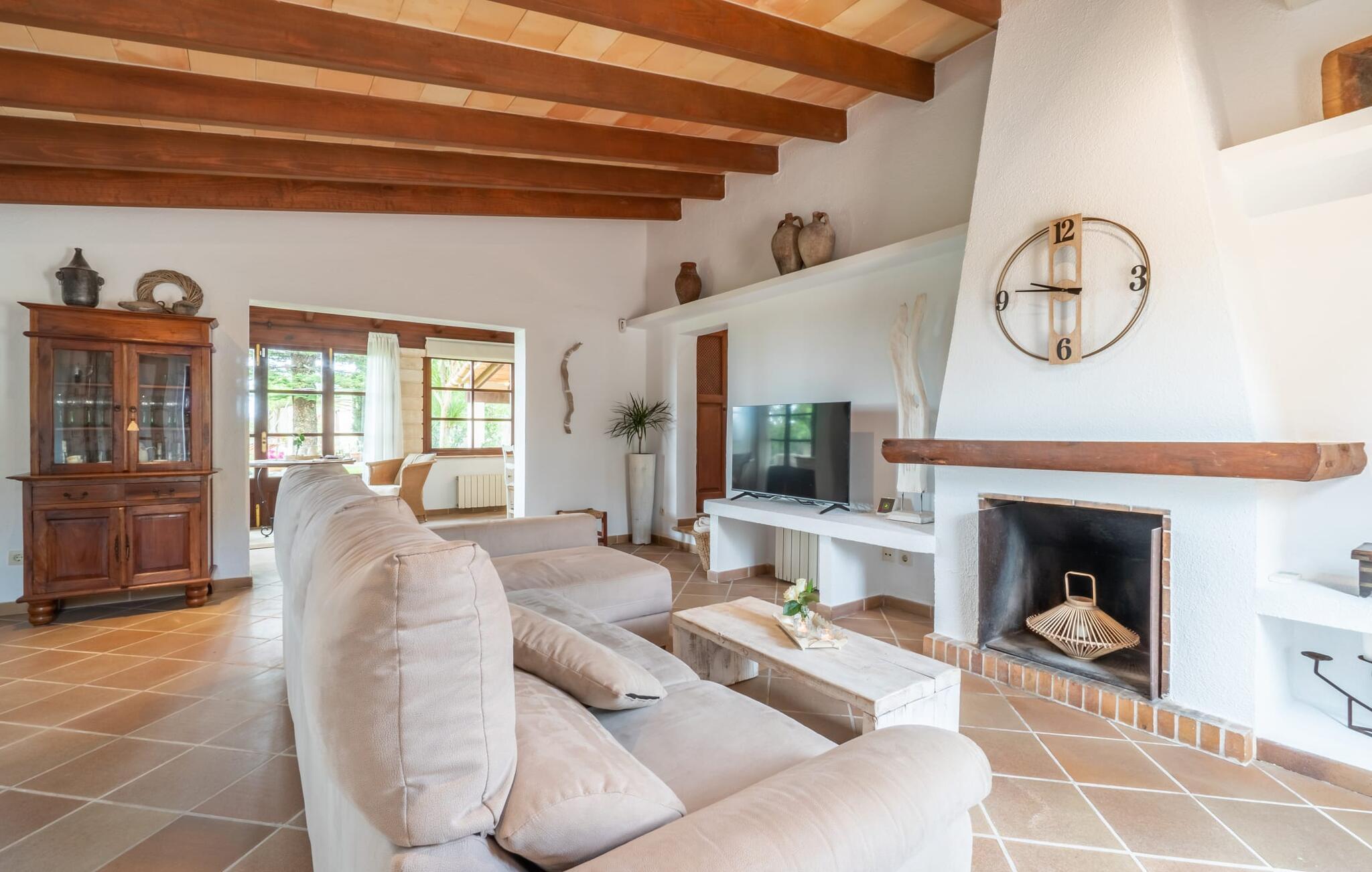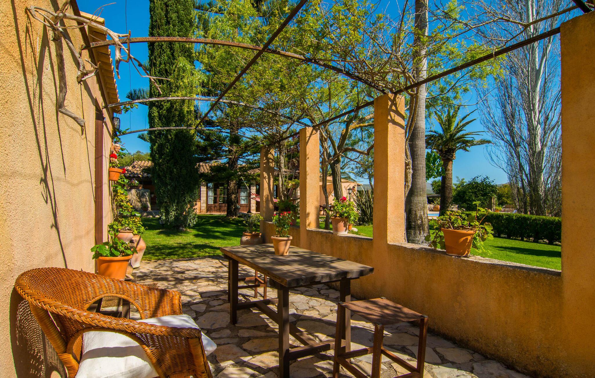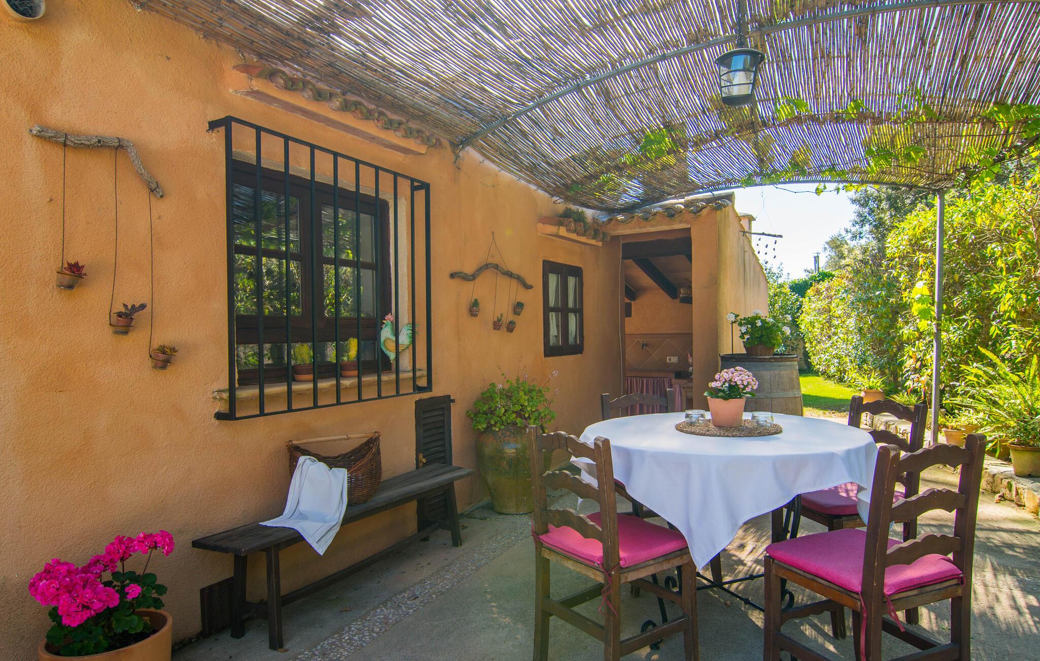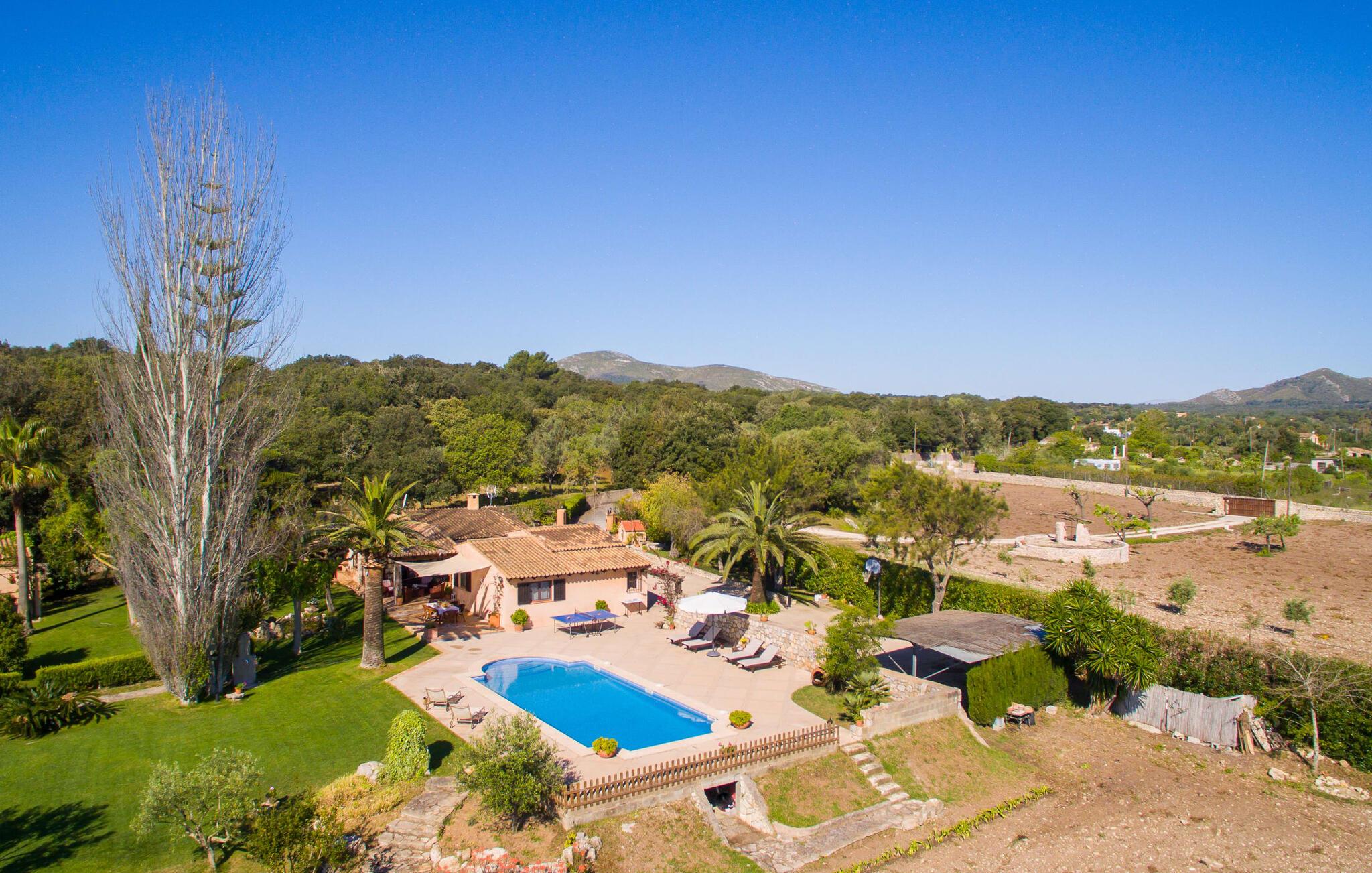 Velkommen til dette lille paradis kaldet "Es Capritx". Den sarte, ved første øjekast uanselige villa forstår at fortrylle med sin oaseagtige drømmehave og de indvendige møbler, kærligt dekoreret ned til mindste detalje. I en vidunderlig landlig, let forhøjet beliggenhed kan I nyde en vidunderlig udsigt over den maleriske landsby Artá ??og nabolandet Capdepera. Det sydvendte, renoverede hus er omgivet af et utrolig smukt landskab: rummelige græsplæner med god plads til vores små gæster at lege, en lille dam med guldfisk, talrige pragtfulde blomstrende planter, middelhavstræer og høje palmer præger det harmoniske billede. Afslapning er garanteret i hængekøjen. Det samme gælder en svømmetur i den enorme pool, som er omgivet af en solterrasse med masser af liggestole og parasoller. Bordtennisbordet og basketballkurven sørger for sportslig sjov, som ældre besøgende helt sikkert også vil sætte pris på. Der er masser af attraktive udendørs siddepladser med tidløse kurvemøbler. Der er en terrasse i forlængelse af poolterrassen; Den har et skyggesejl, der giver beskyttelse mod solen. Fortsætter I gennem den tilstødende stue rundt om huset, kommer I først forbi et mere end praktisk udekøkken. I ankommer derefter til en helt romantisk overdækket spiseplads, placeret direkte foran køkkenet, hvilket gør madlavning let. Så intet står i vejen for en hyggelig grillaften. Den gamle bygning blev fuldstændig renoveret indvendigt. Møbleringen er vidunderlig enkel, men valgt med en unik sans for detaljer. Mokkafarvede gulvfliser, træbjælkelofter, synligt murværk i stenbrud, lyse hvide vægge og nogle moderne detaljer vidner ikke kun om de venlige ejeres fremragende smag, men giver også villaen en vis finesse, som ikke er hverdagskost. Fra den hyggelige stue kommer I til køkkenet via den åbne spisestue med rustikt træbord. Køkkenet er enkelt, men stadig udstyret med alle tænkelige bekvemmeligheder (der er trods alt også et udekøkken, der kan bruges). Det hyggelige læsehjørne tilføjer et strejf af orientalsk eksotisme til det harmoniske indretningskoncept. Endelig finder I en behagelig nats søvn i de tre dobbeltværelser, hvoraf det ene har to separate senge og derfor er ideelt som børneværelse. Det store soveværelse har eget badeværelse. De to andre charmerende møblerede soveværelser deler et andet badeværelse med badekar, selvom der er en separat brusekabine. Følelsen af ??velvære rundes af med charmerende dekorative detaljer som træfigurer og andre artefakter af høj kvalitet med et strejf af delikat nostalgi. Et perfekt sted at slappe af - frem for alt finder I tid til jer selv og jeres familie her. Den bemærkelsesværdige villa "Es Capritx" passer perfekt ind i denne region omkring middelalderbyen Artà, cirka 5 minutter væk i bil. Hver tirsdag er der et ugentligt marked i centrum omkring Plaça del Conquerodor. Der vil I opdage en lang række kulinariske specialiteter fra regionen samt udvalgte kunsthåndværk. Bare nyd travlheden med en café con leche i en af ??de lokale barer langs markedspladsen. Ægtheden af ??denne middelalderlandsby, med dens udsøgte butikker og fremragende restauranter, er det, der giver den dens charme og appel. Villaen er nem at nå, da den ligger tæt på en landevej, som kan høres afhængigt af vinden, der fører til Artà og de omkringliggende landsbyer, så strandene kan besøges meget hurtigt. Til en forandring kan I besøge den livlige strand og havnepromenade i Cala Ratjada, som kan nås på cirka 20 minutter i bil. Undervejs vil I se talrige skilte, der peger mod smukke naturlige strande, så tag gerne en pause undervejs for at tage en forfriskende svømmetur eller bare tage et kig på havet. Ren ferie. Den smukke villa "Es Capritx" har en smuk landlig og høj beliggenhed og tilbyder en fænomenal udsigt over middelalderbyerne Capdepera og Artá ??fra den smukt anlagte have. Til jeres daglige behov kan I handle i supermarkederne eller i "frugt- og grøntsagsbutikken" kun 2 km væk. Smukke sandstrande som Platja de son Moll, Cala Agulla og Cala Mesquida med tilstødende klitlandskab er ca. 13-14 km væk.
