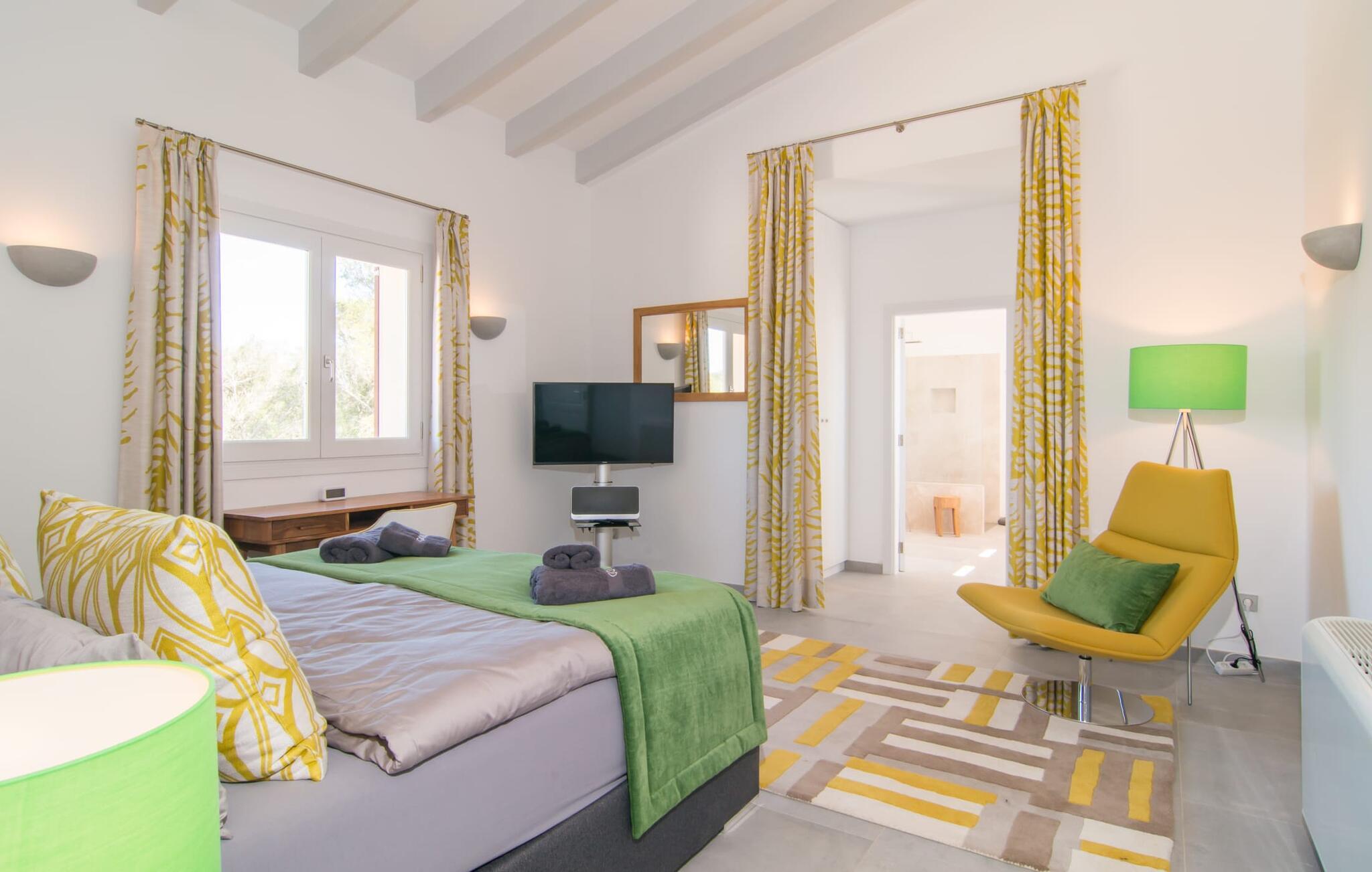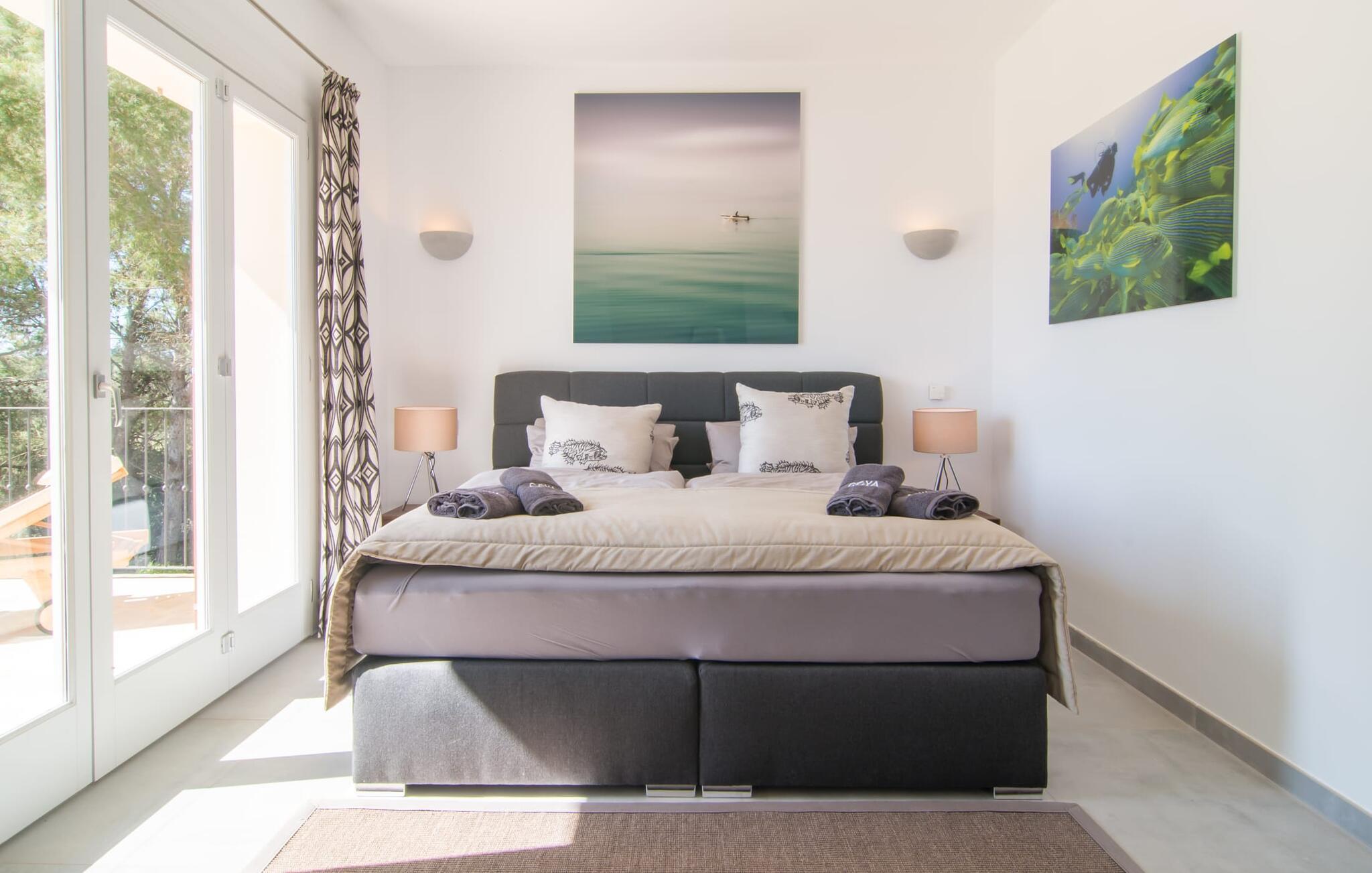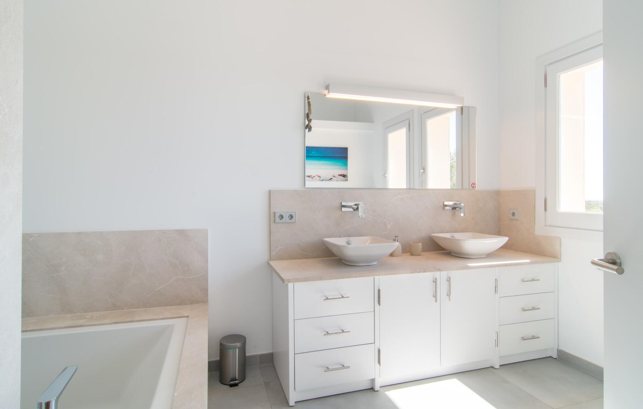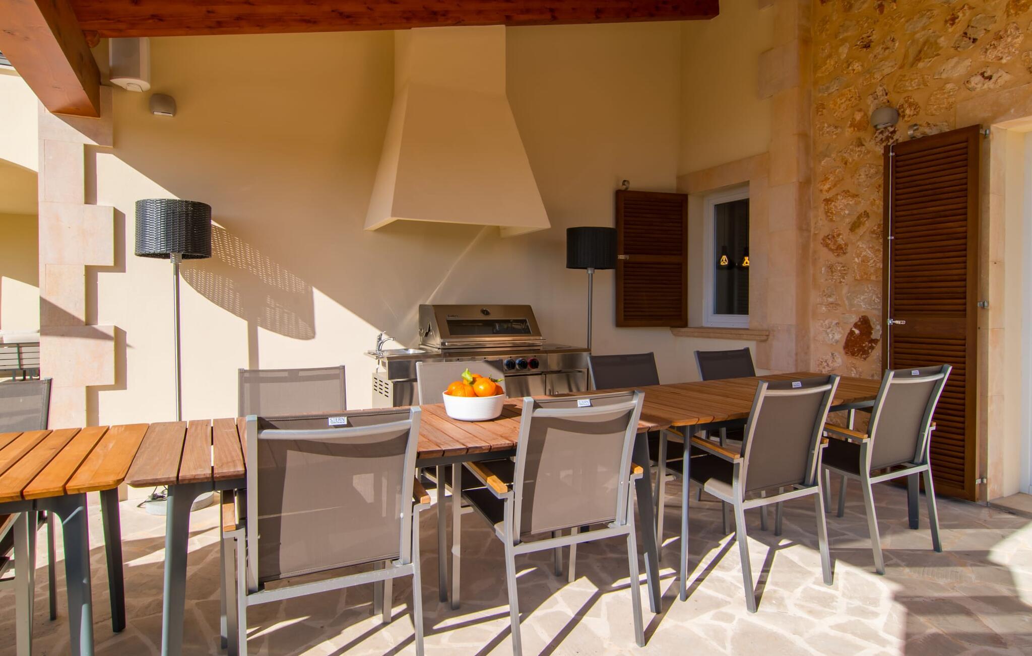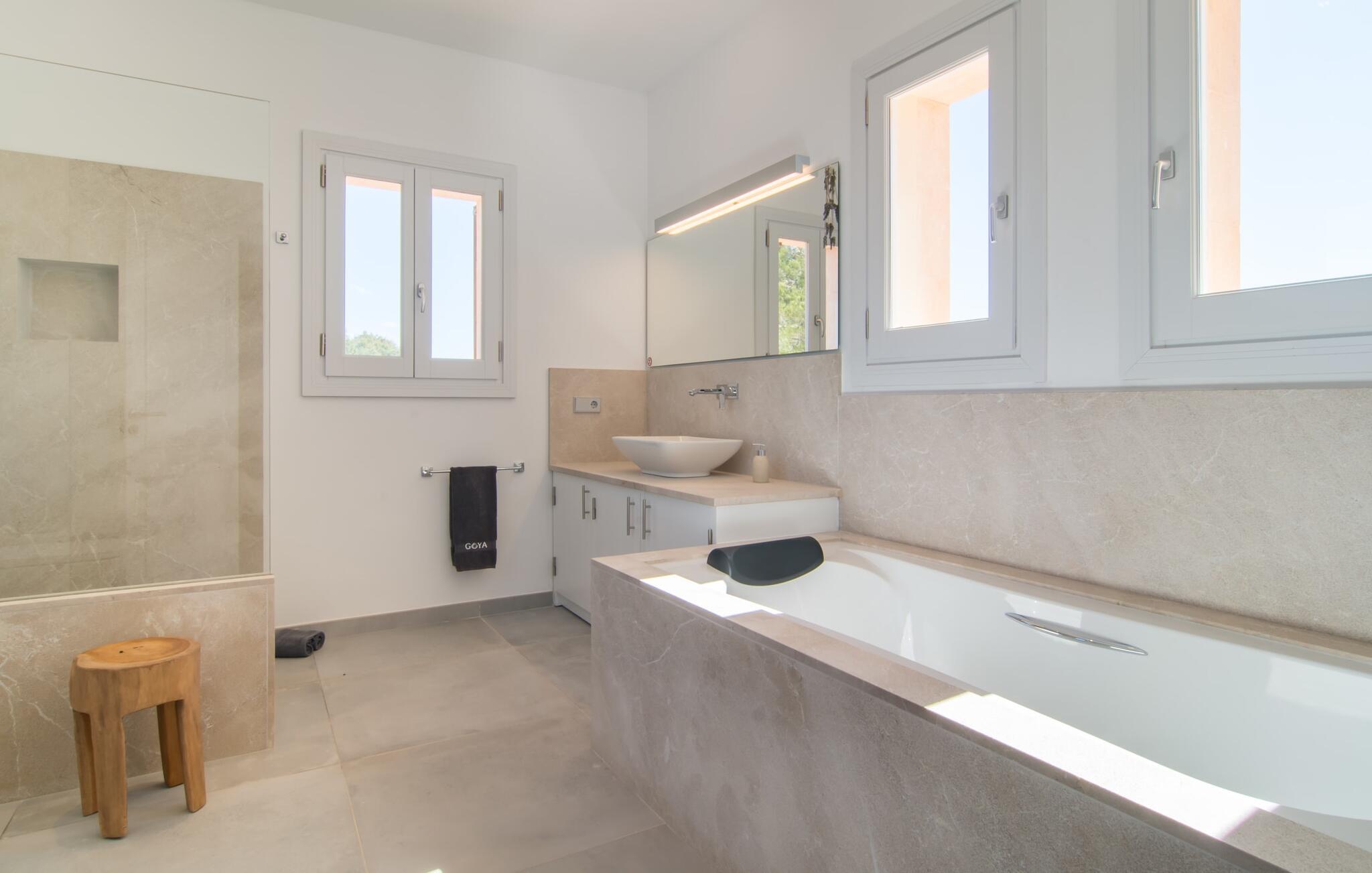 Villa "Es Clape de Sa Galera" er simpelthen fantastisk. Det ydre af den luksuriøse ejendom er en sand fryd for øjet. Villaen, bygget i typisk mallorcansk stil, ligger på en stor grund med en smukt anlagt have. Hyggelige loungemøbler på terrassen inviterer jer til at blive hængende. Store dele af terrassen er overdækket, resten af terrassen er udstyret med parasoller. En anden terrasse, tilgængelig fra et af soveværelserne, er åben og inviterer jer til at slappe af og solbade. De komfortable liggestole er her allerede! Fra terrasserne kan I nyde udsigten over den storslåede ejendom med dens store infinity-pool og det omkringliggende landskab. Nyd udsøgte delikatesser ved det lange træbord på terrassen, som I kan tilberede på forhånd på den eksklusive grill. Og om aftenen skal I sørge for at tænde de smukke kuglelys spredt over hele ejendommen. De skaber en helt speciel atmosfære. Poolen strækker sig over 15 m og er ideel til at svømme et par længder eller slappe af ved poolkanten på en af de førsteklasses liggestole. Lyst, muntert, moderne og eksklusivt - de perfekte ord til at beskrive interiøret i denne villa. Den hyggelige stue i stueetagen inviterer til afslapning og alle vil helt sikkert finde deres yndlingsplads i en af lænestolene i pejsestuen. Den er direkte forbundet med stuen og kan adskilles med et gardin. Pejsestuen fører til spiseplads med åbent køkken. Alle gæster kan sidde sammen på de komfortable stole ved det store bord og nyde et måltid sammen. Det hvide køkken er - i overensstemmelse med resten af villaen - af fremragende kvalitet og udstyret med alle bekvemmeligheder. Alt hvad I behøver kan findes her. Indeholder en stor opvaskemaskine og et stilfuldt komfur, der er integreret i en kogestation. I stueetagen er der to dobbeltværelser med komfortable boxmadrasser (også velegnet til handicappede), og hvert soveværelse har sit eget badeværelse med store brusere. Villaens flair af høj kvalitet fortsætter på øverste etage. Der er yderligere fire rummelige dobbeltværelser med eget badeværelse - hvoraf to har badekar. Nogle af soveværelserne har et lille indgangsparti eller en fin skriveplads og alle har udgang til husets altaner, som er udstyret med komfortable havemøbler. Den nærliggende by Portocolom er en virkelig malerisk fiskerby ved en bred bugt. Der er en dejlig promenade med masser af dejlige restauranter og barer. Foran den maleriske havn dupper flere traditionelle fiskerbåde side om side med moderne lystbåde. I bil kan I nå stedet på cirka 4 km via vejen nær villaen, hvilket kan høres fra ejendommen under visse vindforhold. jeres sommerhus "Es Clape de Sa Galera" tilbyder også et attraktivt udgangspunkt for vandre- eller vandreture. Det smukke landskab vil helt sikkert byde på masser af fred og afslapning. Og hvis I foretrækker at tage til havet, kan I nå den lille strand Cala Marçal på kun 6 km i bil; Sa Pobla-bugten ligger kun 10 km væk. Leder I efter en rolig strand, finder I den i Cala Ratjada-bugten, som kun er omkring 30 m bred og også ligger omkring 10 km fra villaen. I kan dog ikke parkere jeres bil der. Stranden kan kun nås til fods, hvorfor der er så stille der. Den statelige villa "Es Clape de Sa Galera" er beliggende i landlige omgivelser i den østlige del af Mallorca. Den lille fiskerby Portocolom, hvor det nærmeste supermarked ligger, er omkring 4 km væk. Der er mange gode restauranter, barer og en smuk promenade. De nærmeste strande ligger også kun få kilometer væk. For eksempel skal I kun køre cirka 12 minutter for at nå Cala Marçal-stranden.