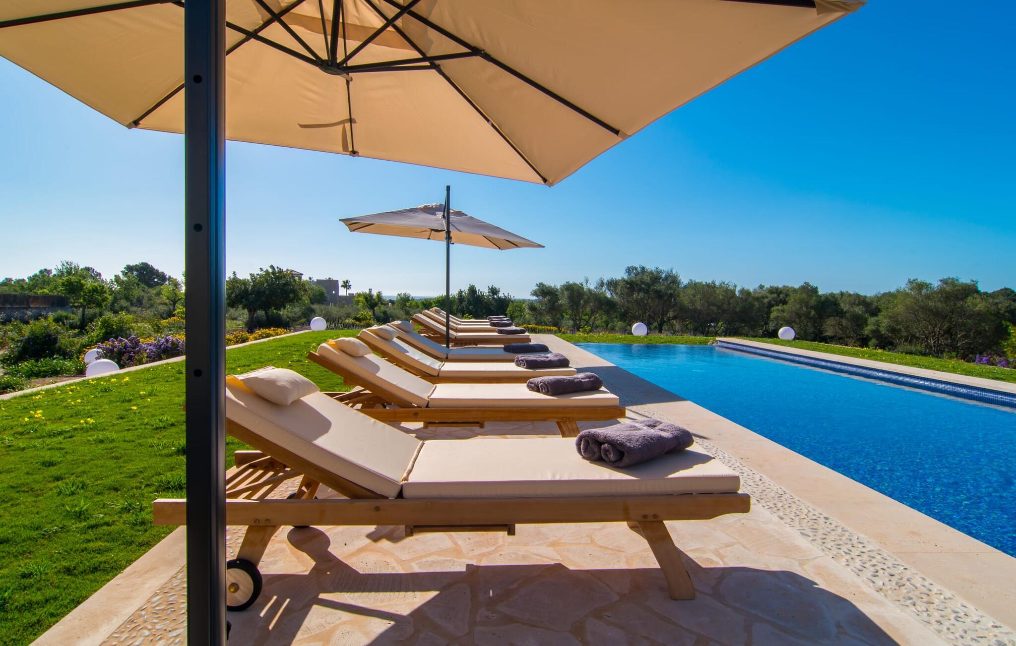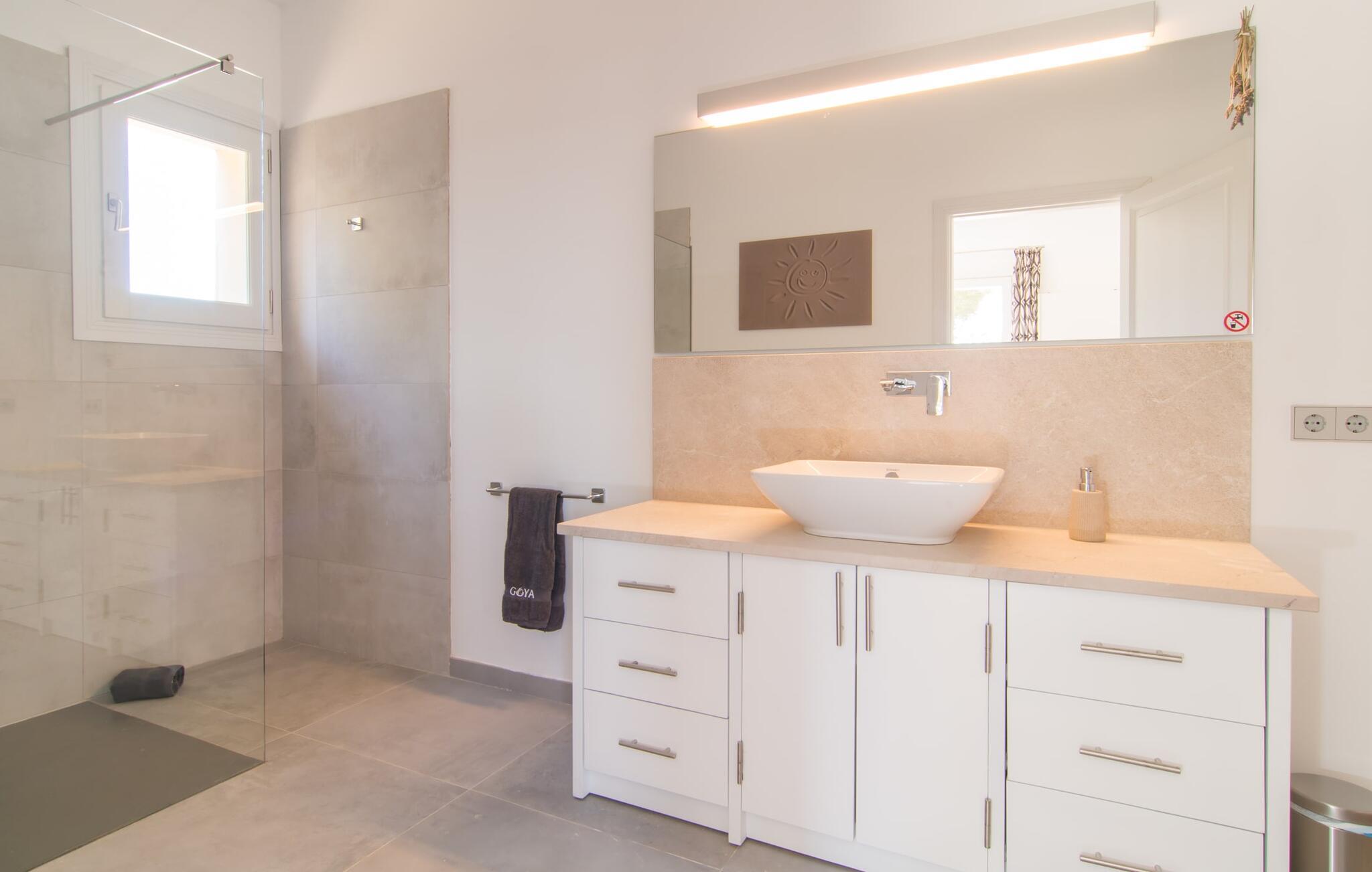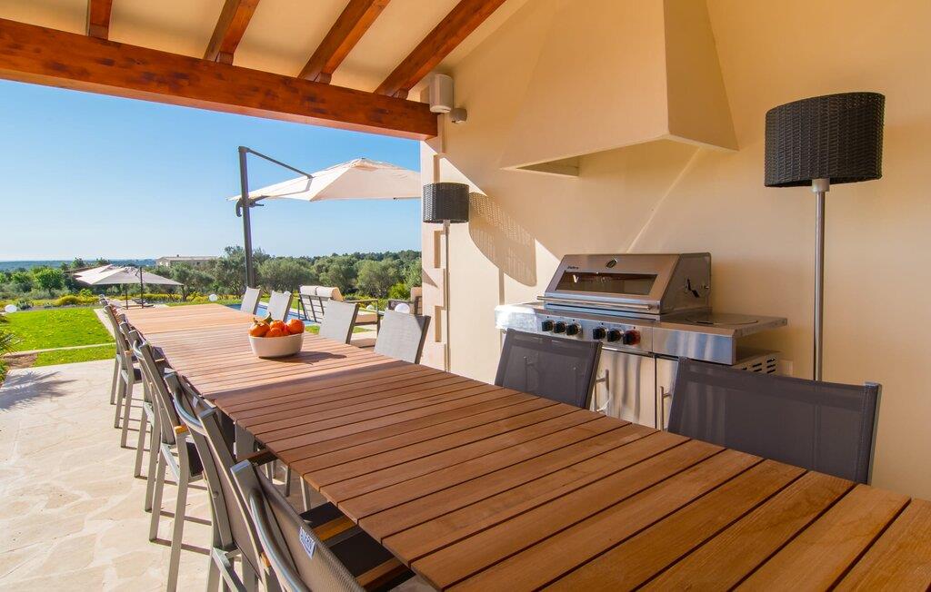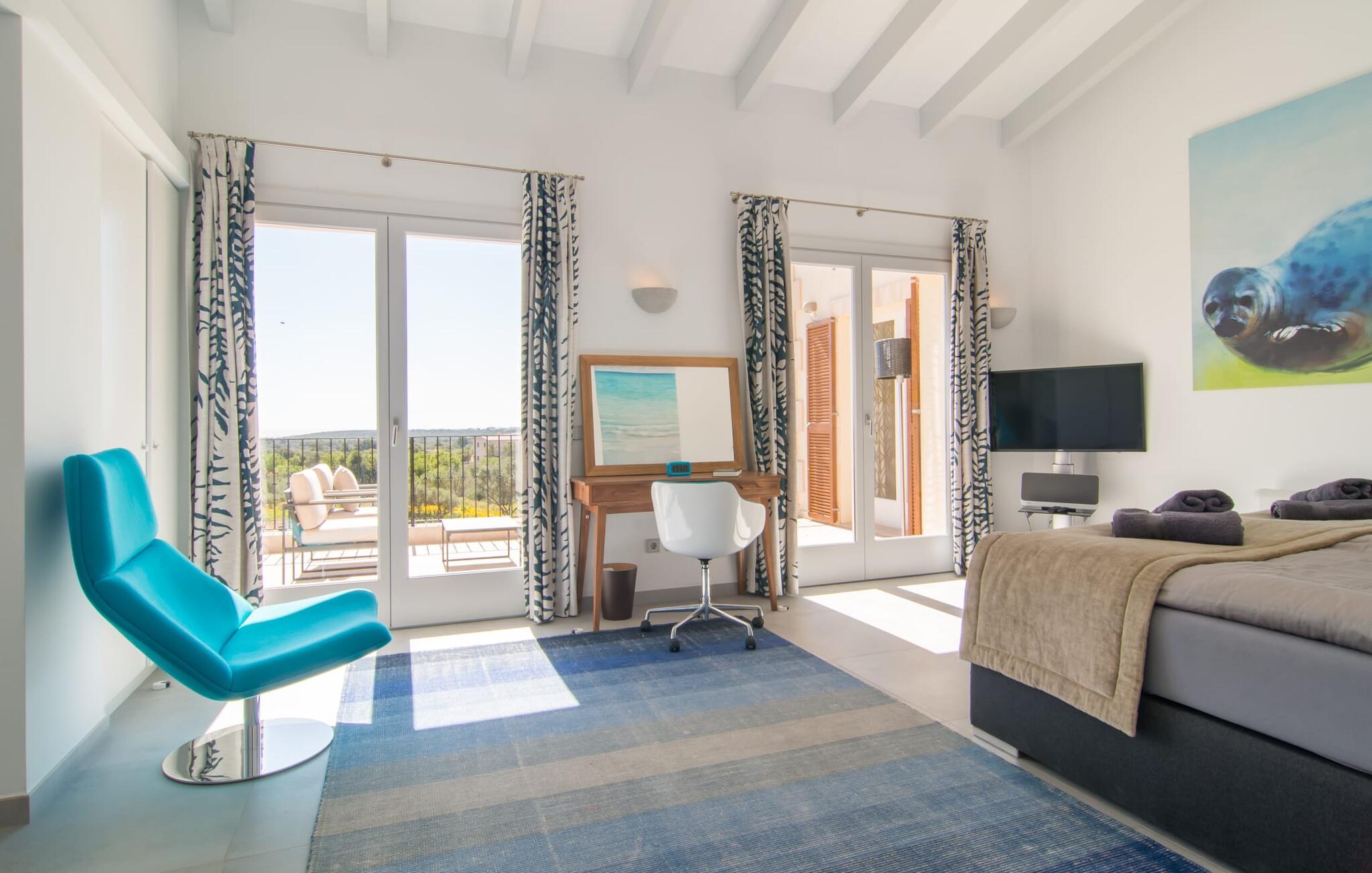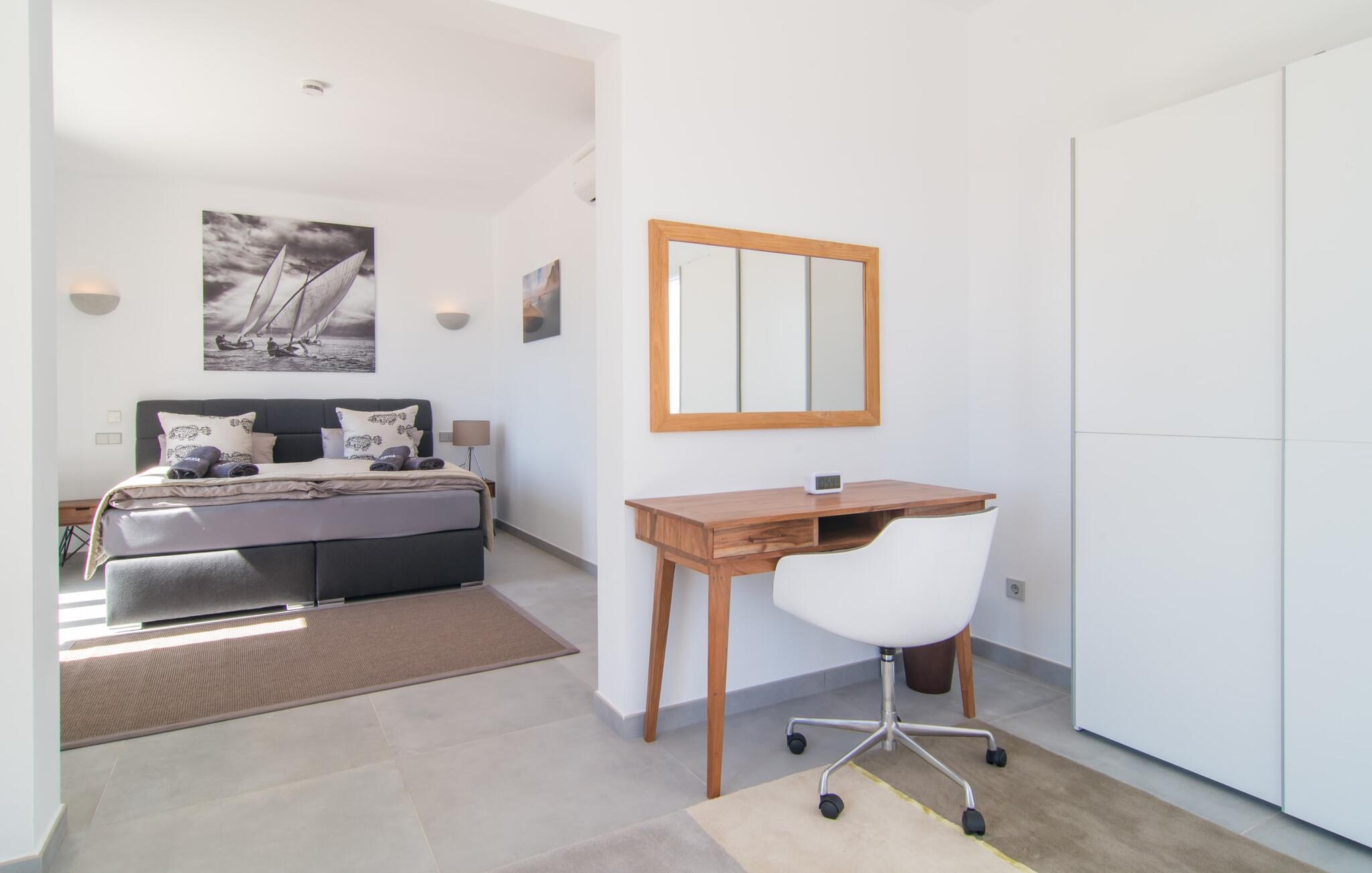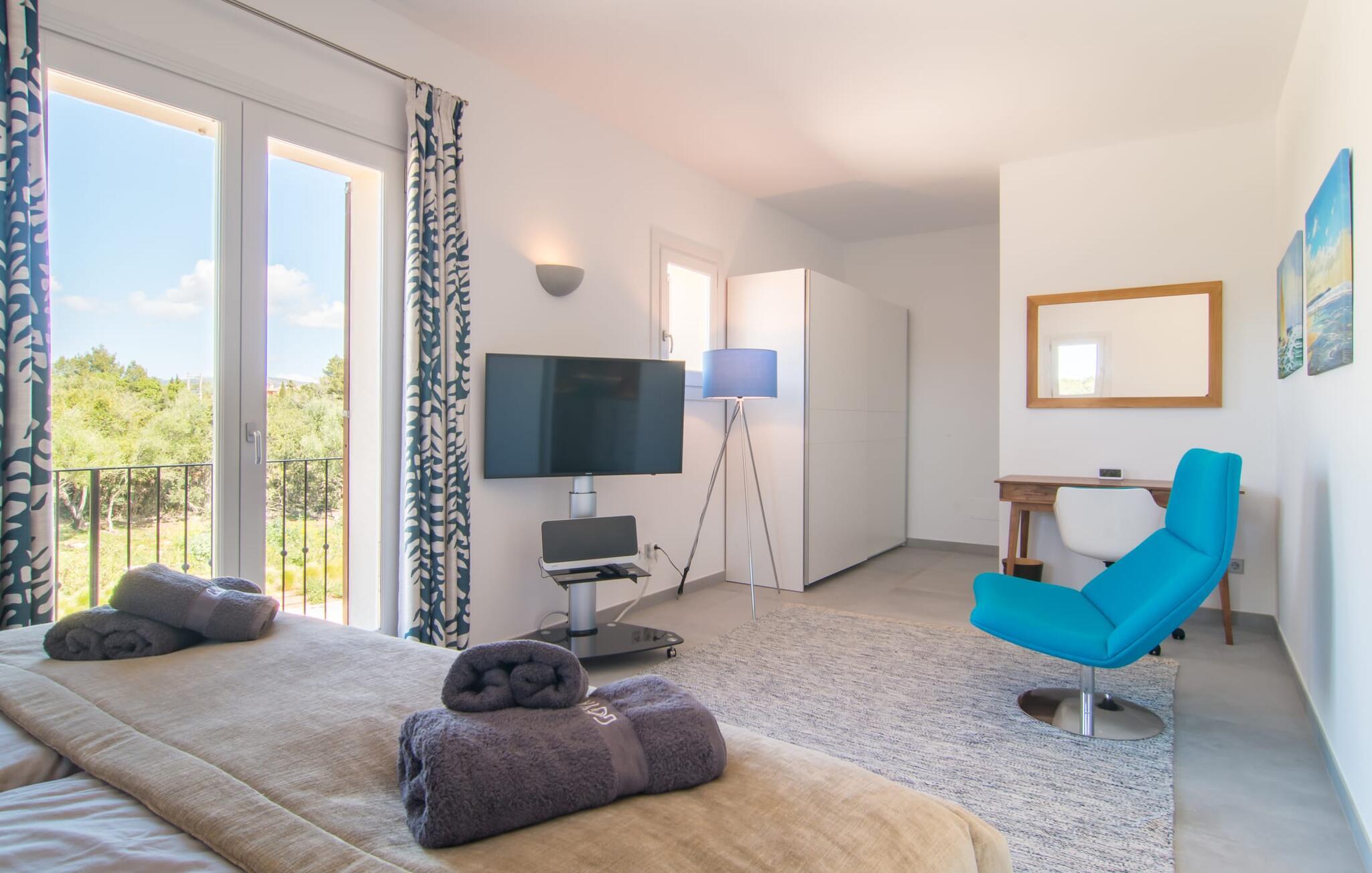Villa "Es Clape de Sa Galera" er simpelthen fantastisk. Det ydre af den luksuriøse ejendom er en sand fryd for øjet. Villaen, bygget i typisk mallorcansk stil, ligger på en stor grund med en smukt anlagt have. Hyggelige loungemøbler på terrassen inviterer jer til at blive hængende. Store dele af terrassen er overdækket, resten af terrassen er udstyret med parasoller. En anden terrasse, tilgængelig fra et af soveværelserne, er åben og inviterer jer til at slappe af og solbade. De komfortable liggestole er her allerede! Fra terrasserne kan I nyde udsigten over den storslåede ejendom med dens store infinity-pool og det omkringliggende landskab. Nyd udsøgte delikatesser ved det lange træbord på terrassen, som I kan tilberede på forhånd på den eksklusive grill. Og om aftenen skal I sørge for at tænde de smukke kuglelys spredt over hele ejendommen. De skaber en helt speciel atmosfære. Poolen strækker sig over 15 m og er ideel til at svømme et par længder eller slappe af ved poolkanten på en af de førsteklasses liggestole. Lyst, muntert, moderne og eksklusivt - de perfekte ord til at beskrive interiøret i denne villa. Den hyggelige stue i stueetagen inviterer til afslapning og alle vil helt sikkert finde deres yndlingsplads i en af lænestolene i pejsestuen. Den er direkte forbundet med stuen og kan adskilles med et gardin. Pejsestuen fører til spiseplads med åbent køkken. Alle gæster kan sidde sammen på de komfortable stole ved det store bord og nyde et måltid sammen. Det hvide køkken er - i overensstemmelse med resten af villaen - af fremragende kvalitet og udstyret med alle bekvemmeligheder. Alt hvad I behøver kan findes her. Indeholder en stor opvaskemaskine og et stilfuldt komfur, der er integreret i en kogestation. I stueetagen er der to dobbeltværelser med komfortable boxmadrasser (også velegnet til handicappede), og hvert soveværelse har sit eget badeværelse med store brusere. Villaens flair af høj kvalitet fortsætter på øverste etage. Der er yderligere fire rummelige dobbeltværelser med eget badeværelse - hvoraf to har badekar. Nogle af soveværelserne har et lille indgangsparti eller en fin skriveplads og alle har udgang til husets altaner, som er udstyret med komfortable havemøbler. Den nærliggende by Portocolom er en virkelig malerisk fiskerby ved en bred bugt. Der er en dejlig promenade med masser af dejlige restauranter og barer. Foran den maleriske havn dupper flere traditionelle fiskerbåde side om side med moderne lystbåde. I bil kan I nå stedet på cirka 4 km via vejen nær villaen, hvilket kan høres fra ejendommen under visse vindforhold. jeres sommerhus "Es Clape de Sa Galera" tilbyder også et attraktivt udgangspunkt for vandre- eller vandreture. Det smukke landskab vil helt sikkert byde på masser af fred og afslapning. Og hvis I foretrækker at tage til havet, kan I nå den lille strand Cala Marçal på kun 6 km i bil; Sa Pobla-bugten ligger kun 10 km væk. Leder I efter en rolig strand, finder I den i Cala Ratjada-bugten, som kun er omkring 30 m bred og også ligger omkring 10 km fra villaen. I kan dog ikke parkere jeres bil der. Stranden kan kun nås til fods, hvorfor der er så stille der. Den statelige villa "Es Clape de Sa Galera" er beliggende i landlige omgivelser i den østlige del af Mallorca. Den lille fiskerby Portocolom, hvor det nærmeste supermarked ligger, er omkring 4 km væk. Der er mange gode restauranter, barer og en smuk promenade. De nærmeste strande ligger også kun få kilometer væk. For eksempel skal I kun køre cirka 12 minutter for at nå Cala Marçal-stranden.