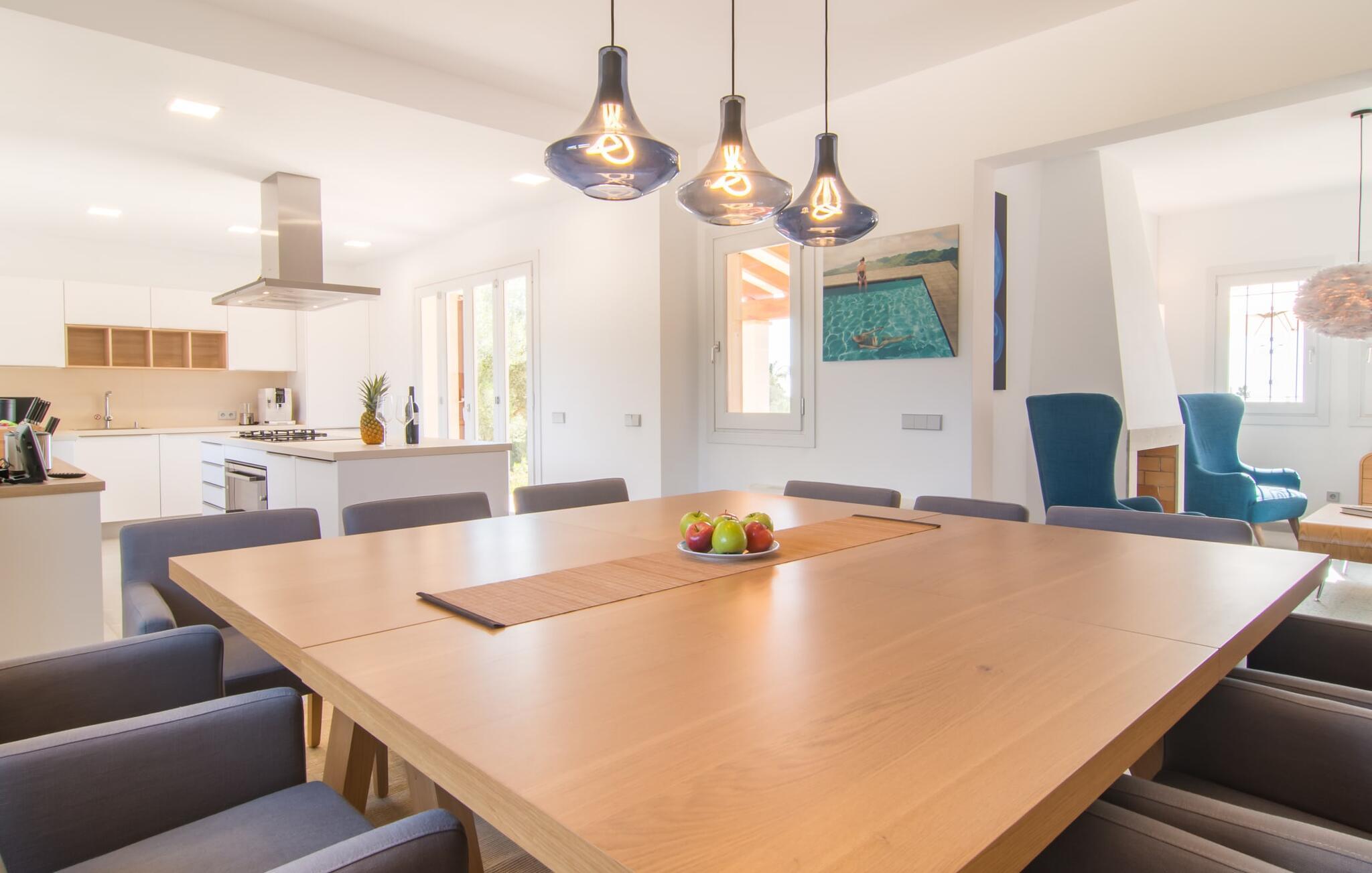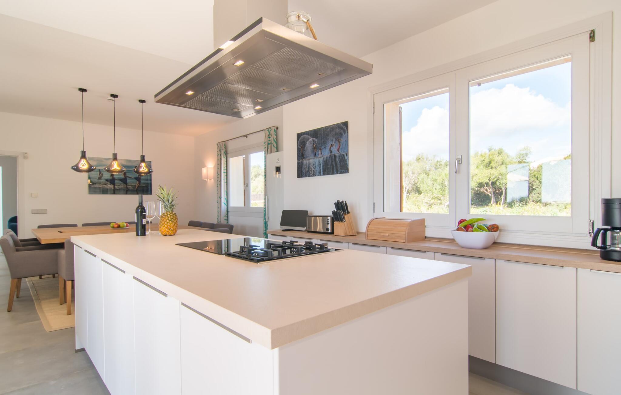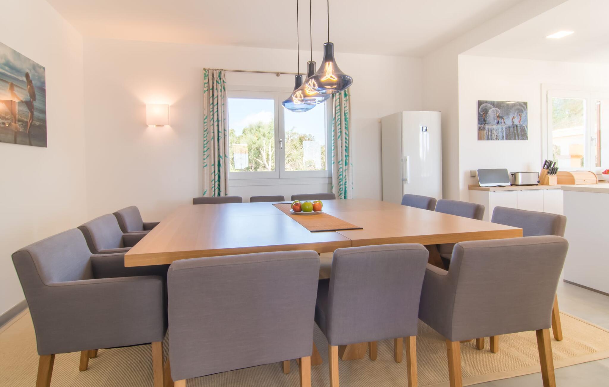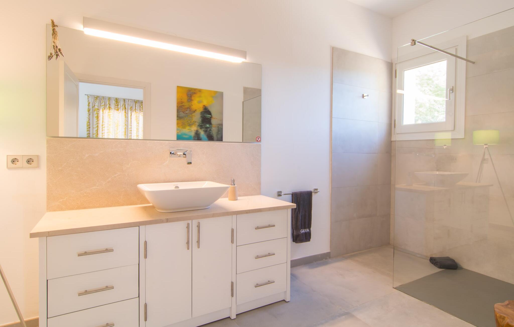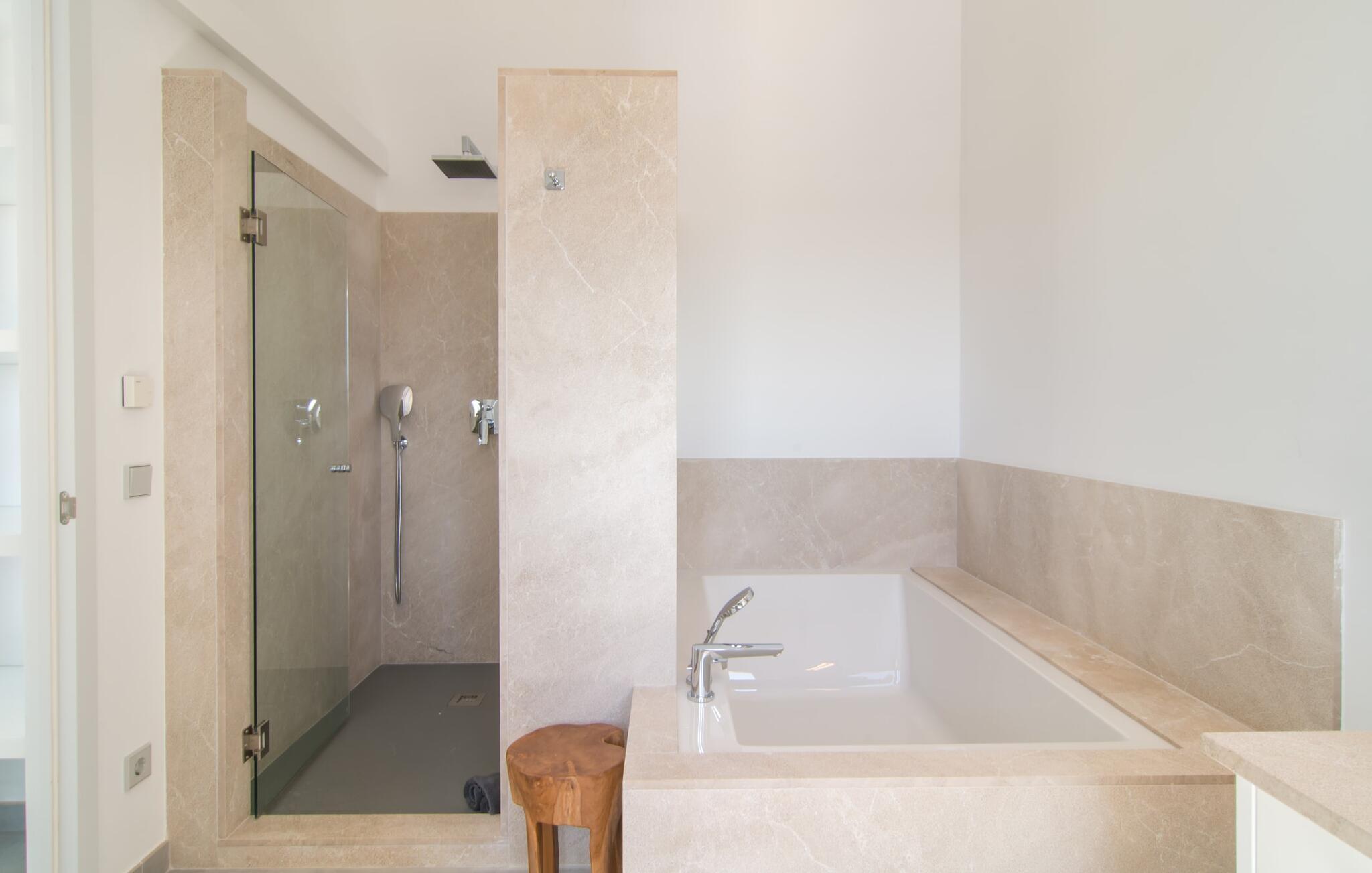 Villa "Es Clape de Sa Galera" er simpelthen fantastisk. Det ydre af den luksuriøse ejendom er en sand fryd for øjet. Villaen, bygget i typisk mallorcansk stil, ligger på en stor grund med en smukt anlagt have. Hyggelige loungemøbler på terrassen inviterer jer til at blive hængende. Store dele af terrassen er overdækket, resten af terrassen er udstyret med parasoller. En anden terrasse, tilgængelig fra et af soveværelserne, er åben og inviterer jer til at slappe af og solbade. De komfortable liggestole er her allerede! Fra terrasserne kan I nyde udsigten over den storslåede ejendom med dens store infinity-pool og det omkringliggende landskab. Nyd udsøgte delikatesser ved det lange træbord på terrassen, som I kan tilberede på forhånd på den eksklusive grill. Og om aftenen skal I sørge for at tænde de smukke kuglelys spredt over hele ejendommen. De skaber en helt speciel atmosfære. Poolen strækker sig over 15 m og er ideel til at svømme et par længder eller slappe af ved poolkanten på en af de førsteklasses liggestole. Lyst, muntert, moderne og eksklusivt - de perfekte ord til at beskrive interiøret i denne villa. Den hyggelige stue i stueetagen inviterer til afslapning og alle vil helt sikkert finde deres yndlingsplads i en af lænestolene i pejsestuen. Den er direkte forbundet med stuen og kan adskilles med et gardin. Pejsestuen fører til spiseplads med åbent køkken. Alle gæster kan sidde sammen på de komfortable stole ved det store bord og nyde et måltid sammen. Det hvide køkken er - i overensstemmelse med resten af villaen - af fremragende kvalitet og udstyret med alle bekvemmeligheder. Alt hvad I behøver kan findes her. Indeholder en stor opvaskemaskine og et stilfuldt komfur, der er integreret i en kogestation. I stueetagen er der to dobbeltværelser med komfortable boxmadrasser (også velegnet til handicappede), og hvert soveværelse har sit eget badeværelse med store brusere. Villaens flair af høj kvalitet fortsætter på øverste etage. Der er yderligere fire rummelige dobbeltværelser med eget badeværelse - hvoraf to har badekar. Nogle af soveværelserne har et lille indgangsparti eller en fin skriveplads og alle har udgang til husets altaner, som er udstyret med komfortable havemøbler. Den nærliggende by Portocolom er en virkelig malerisk fiskerby ved en bred bugt. Der er en dejlig promenade med masser af dejlige restauranter og barer. Foran den maleriske havn dupper flere traditionelle fiskerbåde side om side med moderne lystbåde. I bil kan I nå stedet på cirka 4 km via vejen nær villaen, hvilket kan høres fra ejendommen under visse vindforhold. jeres sommerhus "Es Clape de Sa Galera" tilbyder også et attraktivt udgangspunkt for vandre- eller vandreture. Det smukke landskab vil helt sikkert byde på masser af fred og afslapning. Og hvis I foretrækker at tage til havet, kan I nå den lille strand Cala Marçal på kun 6 km i bil; Sa Pobla-bugten ligger kun 10 km væk. Leder I efter en rolig strand, finder I den i Cala Ratjada-bugten, som kun er omkring 30 m bred og også ligger omkring 10 km fra villaen. I kan dog ikke parkere jeres bil der. Stranden kan kun nås til fods, hvorfor der er så stille der. Den statelige villa "Es Clape de Sa Galera" er beliggende i landlige omgivelser i den østlige del af Mallorca. Den lille fiskerby Portocolom, hvor det nærmeste supermarked ligger, er omkring 4 km væk. Der er mange gode restauranter, barer og en smuk promenade. De nærmeste strande ligger også kun få kilometer væk. For eksempel skal I kun køre cirka 12 minutter for at nå Cala Marçal-stranden.