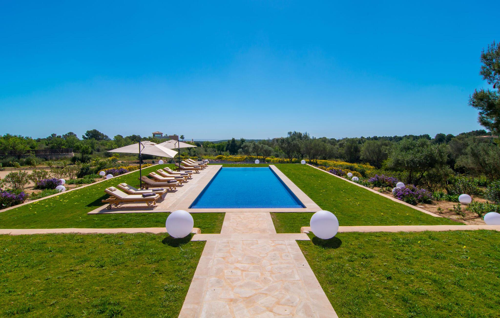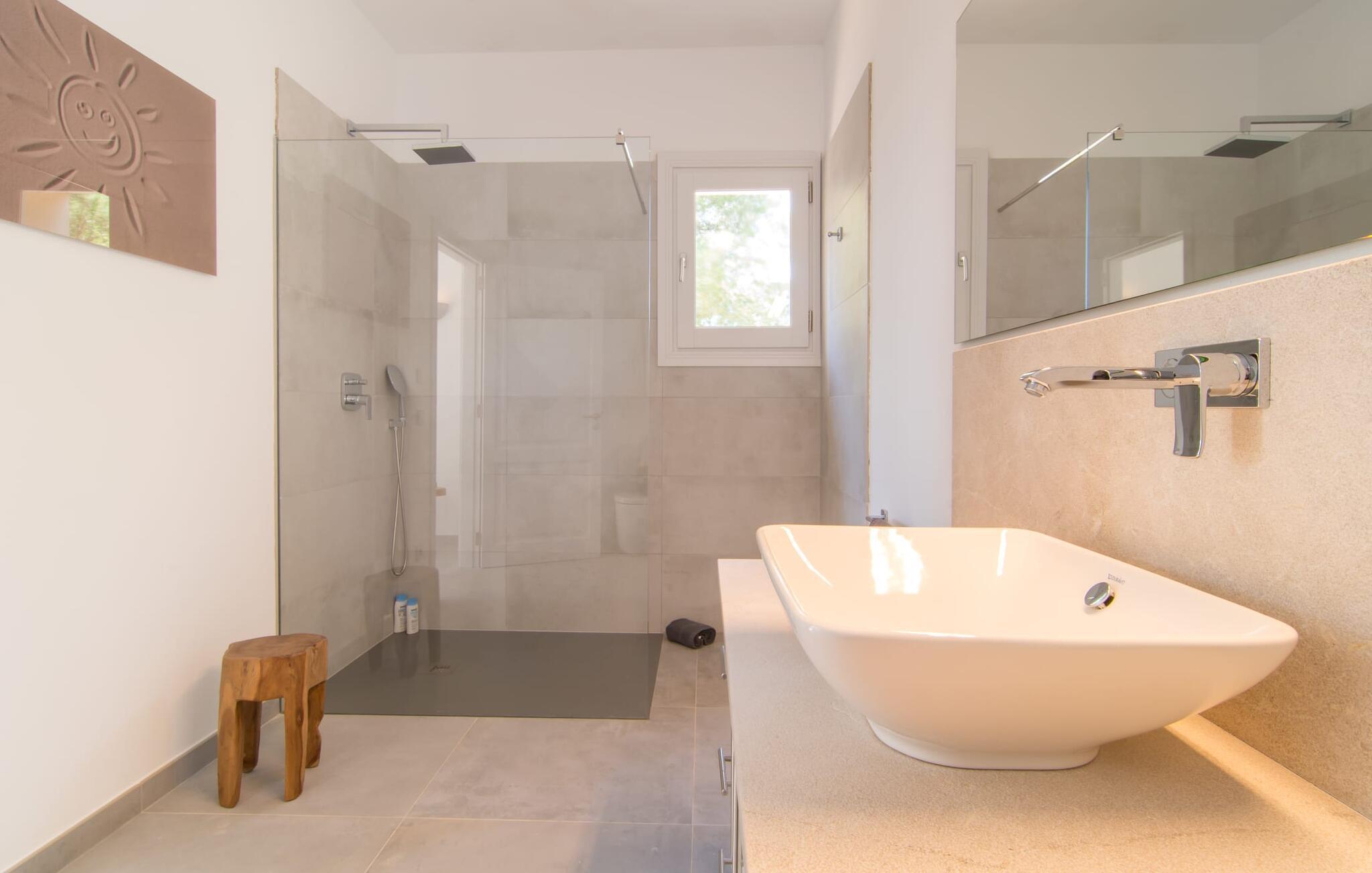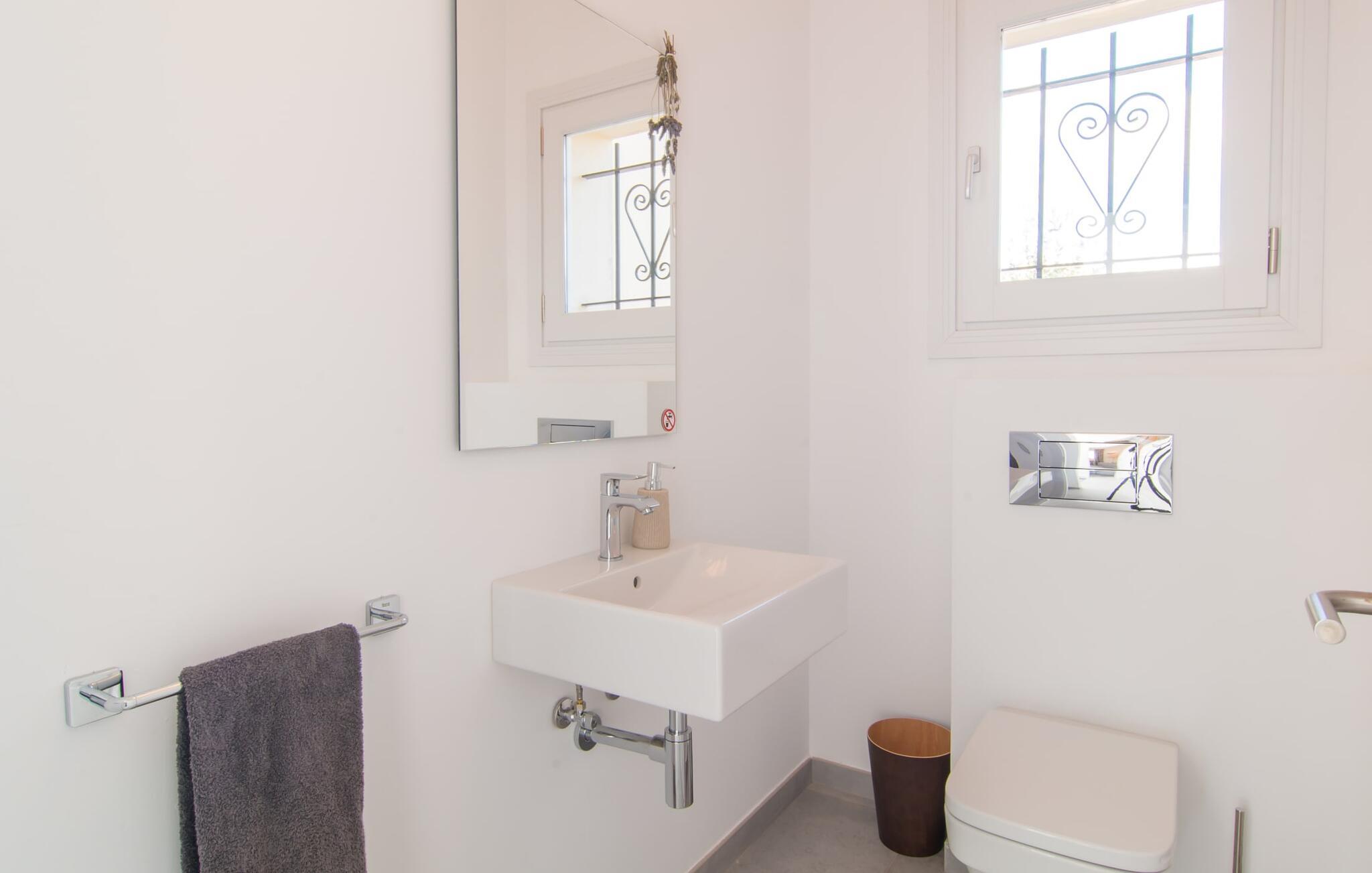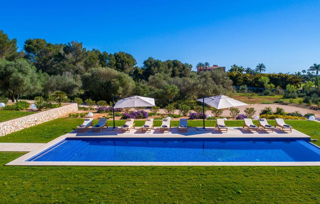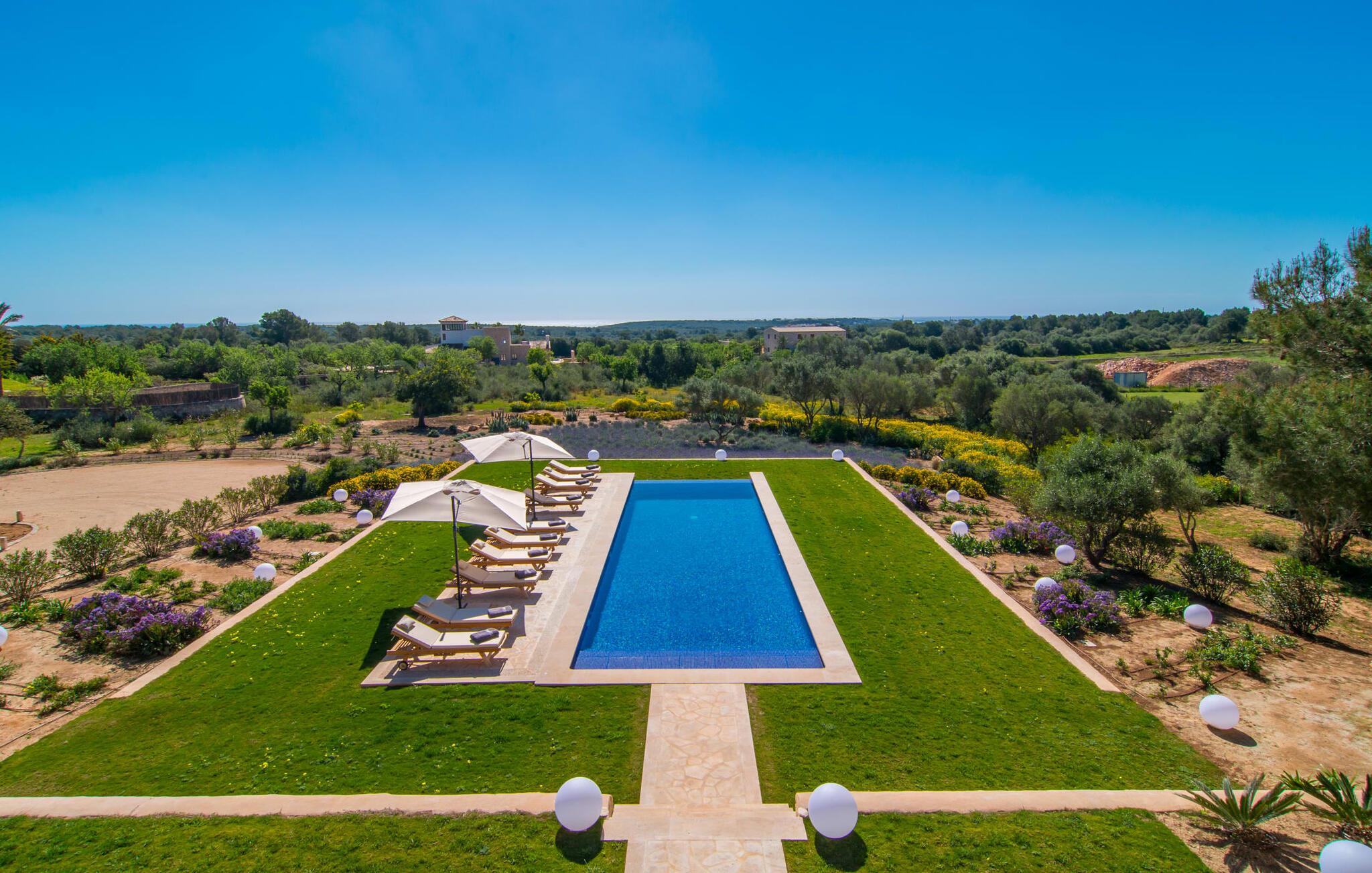 Villa "Es Clape de Sa Galera" er simpelthen fantastisk. Det ydre af den luksuriøse ejendom er en sand fryd for øjet. Villaen, bygget i typisk mallorcansk stil, ligger på en stor grund med en smukt anlagt have. Hyggelige loungemøbler på terrassen inviterer jer til at blive hængende. Store dele af terrassen er overdækket, resten af terrassen er udstyret med parasoller. En anden terrasse, tilgængelig fra et af soveværelserne, er åben og inviterer jer til at slappe af og solbade. De komfortable liggestole er her allerede! Fra terrasserne kan I nyde udsigten over den storslåede ejendom med dens store infinity-pool og det omkringliggende landskab. Nyd udsøgte delikatesser ved det lange træbord på terrassen, som I kan tilberede på forhånd på den eksklusive grill. Og om aftenen skal I sørge for at tænde de smukke kuglelys spredt over hele ejendommen. De skaber en helt speciel atmosfære. Poolen strækker sig over 15 m og er ideel til at svømme et par længder eller slappe af ved poolkanten på en af de førsteklasses liggestole. Lyst, muntert, moderne og eksklusivt - de perfekte ord til at beskrive interiøret i denne villa. Den hyggelige stue i stueetagen inviterer til afslapning og alle vil helt sikkert finde deres yndlingsplads i en af lænestolene i pejsestuen. Den er direkte forbundet med stuen og kan adskilles med et gardin. Pejsestuen fører til spiseplads med åbent køkken. Alle gæster kan sidde sammen på de komfortable stole ved det store bord og nyde et måltid sammen. Det hvide køkken er - i overensstemmelse med resten af villaen - af fremragende kvalitet og udstyret med alle bekvemmeligheder. Alt hvad I behøver kan findes her. Indeholder en stor opvaskemaskine og et stilfuldt komfur, der er integreret i en kogestation. I stueetagen er der to dobbeltværelser med komfortable boxmadrasser (også velegnet til handicappede), og hvert soveværelse har sit eget badeværelse med store brusere. Villaens flair af høj kvalitet fortsætter på øverste etage. Der er yderligere fire rummelige dobbeltværelser med eget badeværelse - hvoraf to har badekar. Nogle af soveværelserne har et lille indgangsparti eller en fin skriveplads og alle har udgang til husets altaner, som er udstyret med komfortable havemøbler. Den nærliggende by Portocolom er en virkelig malerisk fiskerby ved en bred bugt. Der er en dejlig promenade med masser af dejlige restauranter og barer. Foran den maleriske havn dupper flere traditionelle fiskerbåde side om side med moderne lystbåde. I bil kan I nå stedet på cirka 4 km via vejen nær villaen, hvilket kan høres fra ejendommen under visse vindforhold. jeres sommerhus "Es Clape de Sa Galera" tilbyder også et attraktivt udgangspunkt for vandre- eller vandreture. Det smukke landskab vil helt sikkert byde på masser af fred og afslapning. Og hvis I foretrækker at tage til havet, kan I nå den lille strand Cala Marçal på kun 6 km i bil; Sa Pobla-bugten ligger kun 10 km væk. Leder I efter en rolig strand, finder I den i Cala Ratjada-bugten, som kun er omkring 30 m bred og også ligger omkring 10 km fra villaen. I kan dog ikke parkere jeres bil der. Stranden kan kun nås til fods, hvorfor der er så stille der. Den statelige villa "Es Clape de Sa Galera" er beliggende i landlige omgivelser i den østlige del af Mallorca. Den lille fiskerby Portocolom, hvor det nærmeste supermarked ligger, er omkring 4 km væk. Der er mange gode restauranter, barer og en smuk promenade. De nærmeste strande ligger også kun få kilometer væk. For eksempel skal I kun køre cirka 12 minutter for at nå Cala Marçal-stranden.