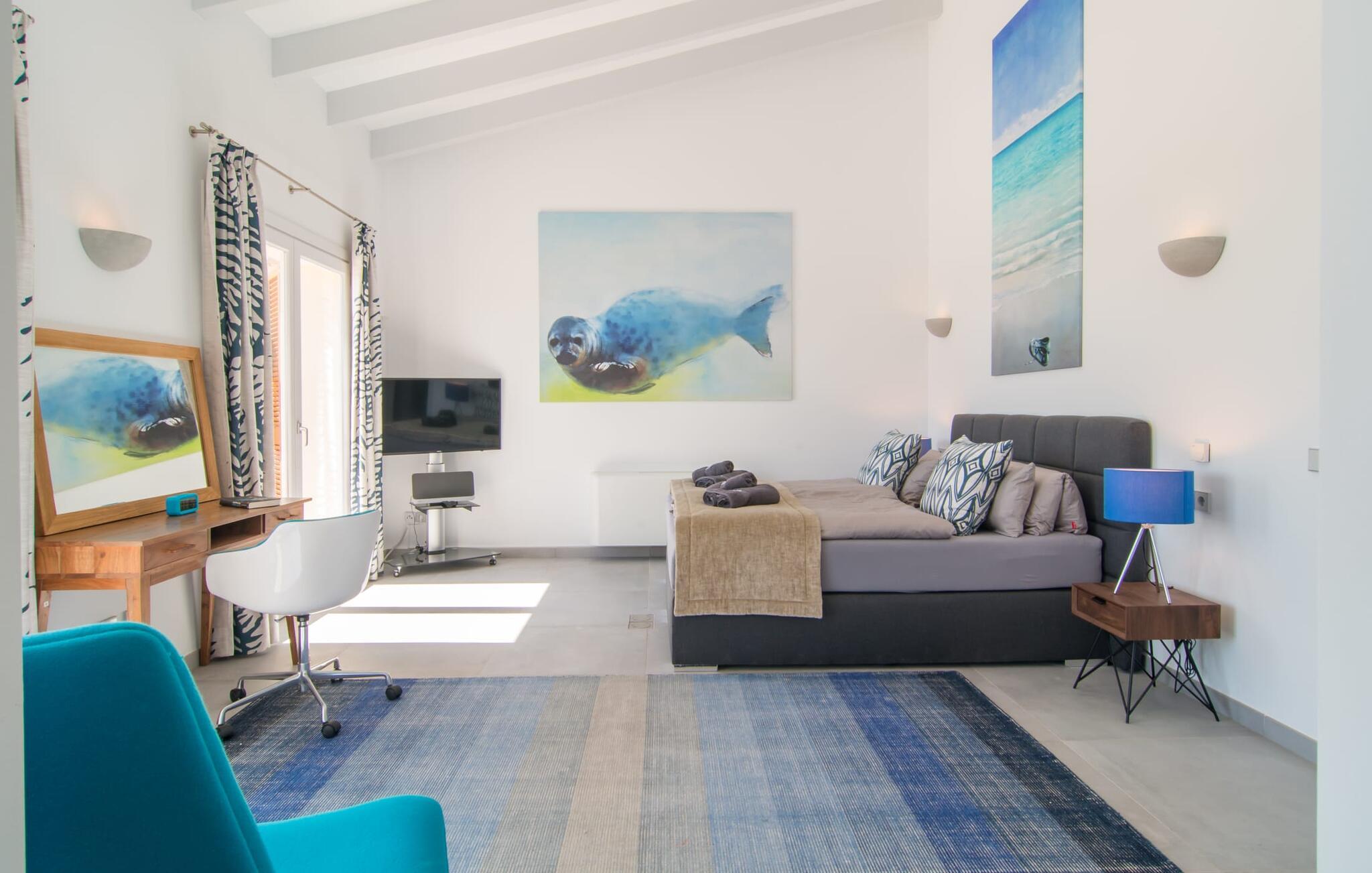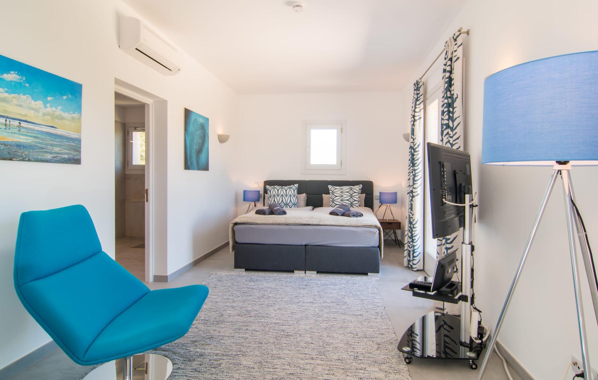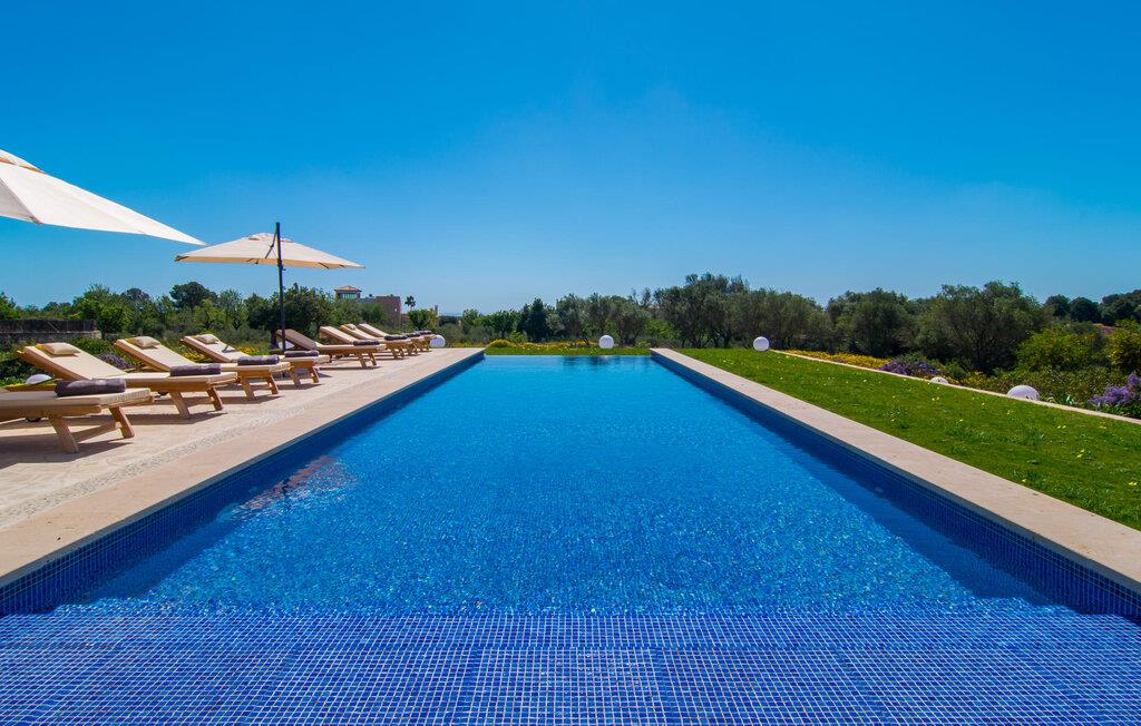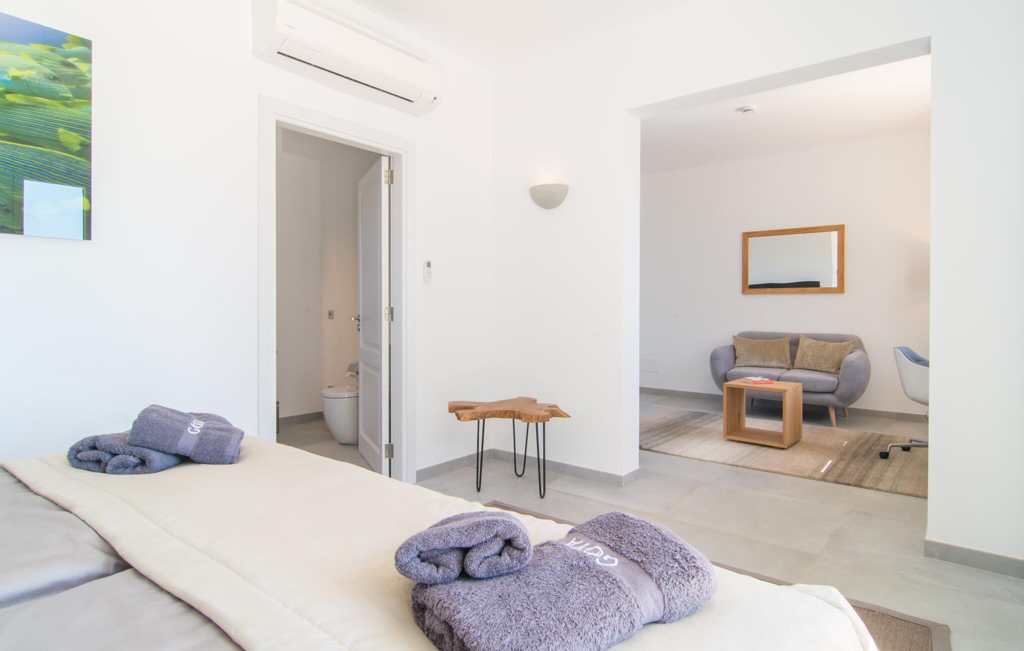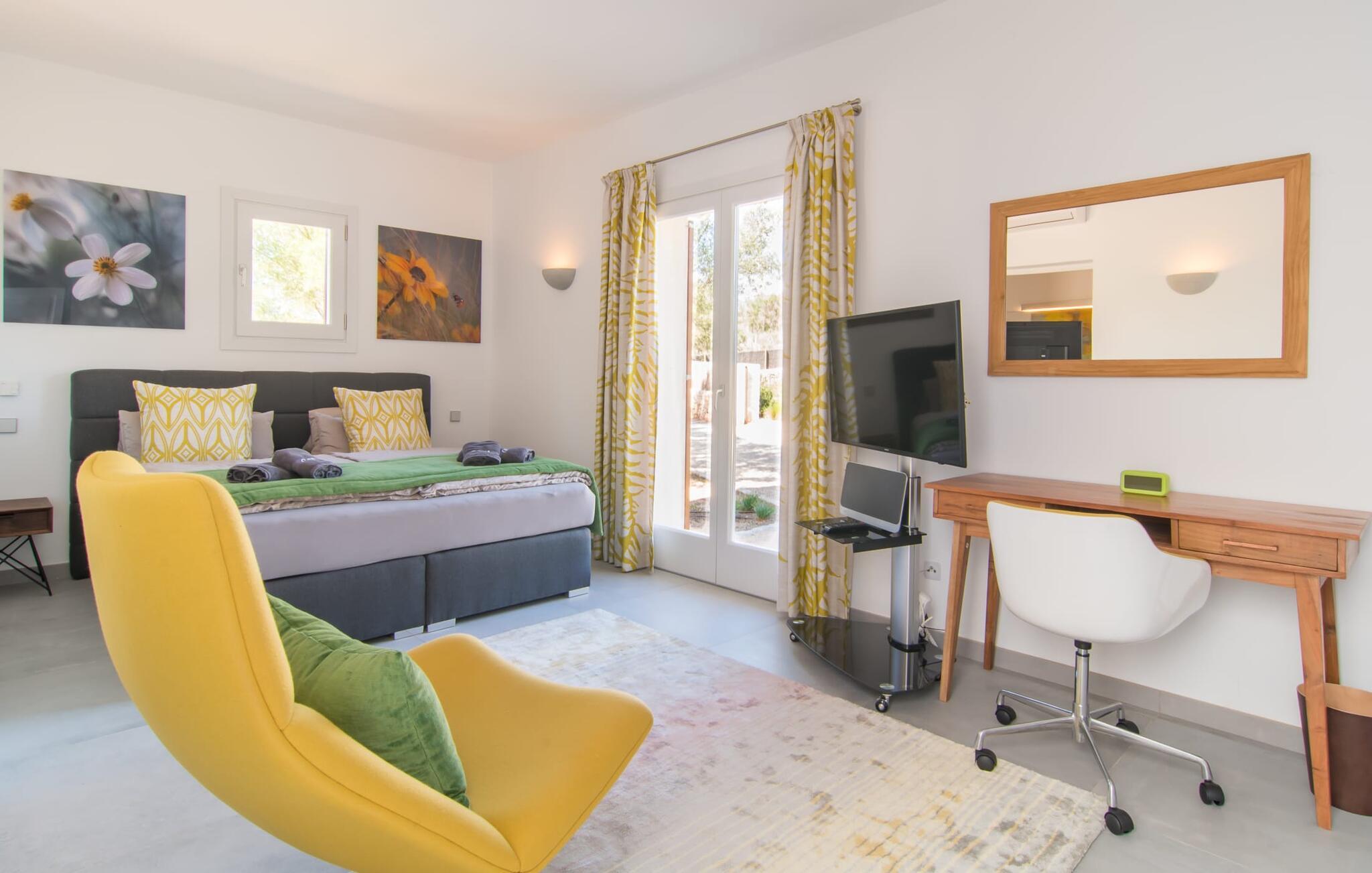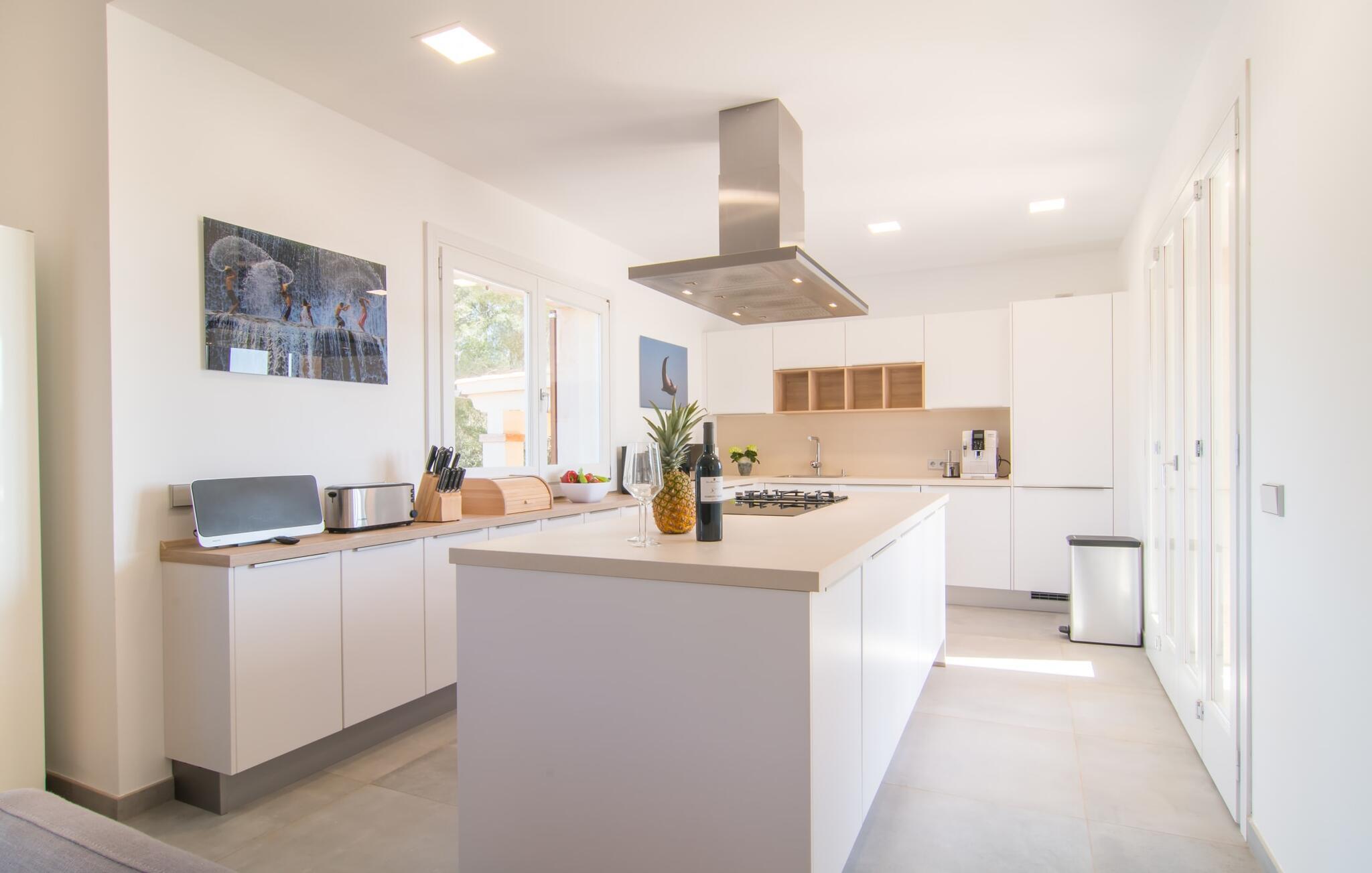 Villa "Es Clape de Sa Galera" er simpelthen fantastisk. Det ydre af den luksuriøse ejendom er en sand fryd for øjet. Villaen, bygget i typisk mallorcansk stil, ligger på en stor grund med en smukt anlagt have. Hyggelige loungemøbler på terrassen inviterer jer til at blive hængende. Store dele af terrassen er overdækket, resten af terrassen er udstyret med parasoller. En anden terrasse, tilgængelig fra et af soveværelserne, er åben og inviterer jer til at slappe af og solbade. De komfortable liggestole er her allerede! Fra terrasserne kan I nyde udsigten over den storslåede ejendom med dens store infinity-pool og det omkringliggende landskab. Nyd udsøgte delikatesser ved det lange træbord på terrassen, som I kan tilberede på forhånd på den eksklusive grill. Og om aftenen skal I sørge for at tænde de smukke kuglelys spredt over hele ejendommen. De skaber en helt speciel atmosfære. Poolen strækker sig over 15 m og er ideel til at svømme et par længder eller slappe af ved poolkanten på en af de førsteklasses liggestole. Lyst, muntert, moderne og eksklusivt - de perfekte ord til at beskrive interiøret i denne villa. Den hyggelige stue i stueetagen inviterer til afslapning og alle vil helt sikkert finde deres yndlingsplads i en af lænestolene i pejsestuen. Den er direkte forbundet med stuen og kan adskilles med et gardin. Pejsestuen fører til spiseplads med åbent køkken. Alle gæster kan sidde sammen på de komfortable stole ved det store bord og nyde et måltid sammen. Det hvide køkken er - i overensstemmelse med resten af villaen - af fremragende kvalitet og udstyret med alle bekvemmeligheder. Alt hvad I behøver kan findes her. Indeholder en stor opvaskemaskine og et stilfuldt komfur, der er integreret i en kogestation. I stueetagen er der to dobbeltværelser med komfortable boxmadrasser (også velegnet til handicappede), og hvert soveværelse har sit eget badeværelse med store brusere. Villaens flair af høj kvalitet fortsætter på øverste etage. Der er yderligere fire rummelige dobbeltværelser med eget badeværelse - hvoraf to har badekar. Nogle af soveværelserne har et lille indgangsparti eller en fin skriveplads og alle har udgang til husets altaner, som er udstyret med komfortable havemøbler. Den nærliggende by Portocolom er en virkelig malerisk fiskerby ved en bred bugt. Der er en dejlig promenade med masser af dejlige restauranter og barer. Foran den maleriske havn dupper flere traditionelle fiskerbåde side om side med moderne lystbåde. I bil kan I nå stedet på cirka 4 km via vejen nær villaen, hvilket kan høres fra ejendommen under visse vindforhold. jeres sommerhus "Es Clape de Sa Galera" tilbyder også et attraktivt udgangspunkt for vandre- eller vandreture. Det smukke landskab vil helt sikkert byde på masser af fred og afslapning. Og hvis I foretrækker at tage til havet, kan I nå den lille strand Cala Marçal på kun 6 km i bil; Sa Pobla-bugten ligger kun 10 km væk. Leder I efter en rolig strand, finder I den i Cala Ratjada-bugten, som kun er omkring 30 m bred og også ligger omkring 10 km fra villaen. I kan dog ikke parkere jeres bil der. Stranden kan kun nås til fods, hvorfor der er så stille der. Den statelige villa "Es Clape de Sa Galera" er beliggende i landlige omgivelser i den østlige del af Mallorca. Den lille fiskerby Portocolom, hvor det nærmeste supermarked ligger, er omkring 4 km væk. Der er mange gode restauranter, barer og en smuk promenade. De nærmeste strande ligger også kun få kilometer væk. For eksempel skal I kun køre cirka 12 minutter for at nå Cala Marçal-stranden.