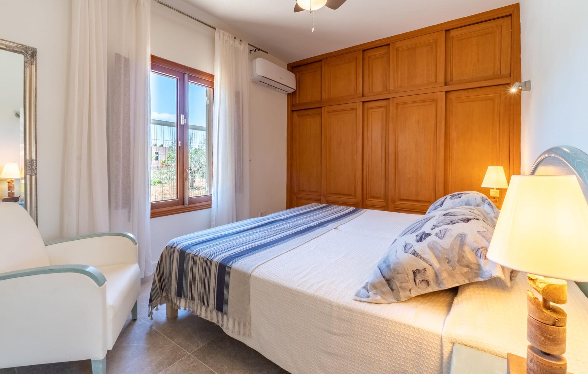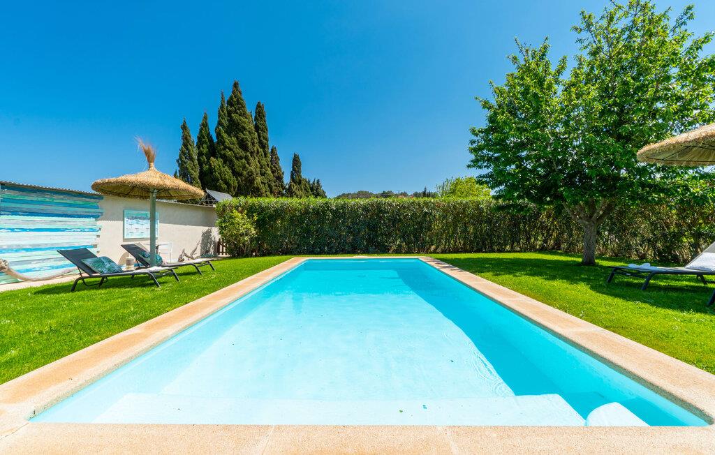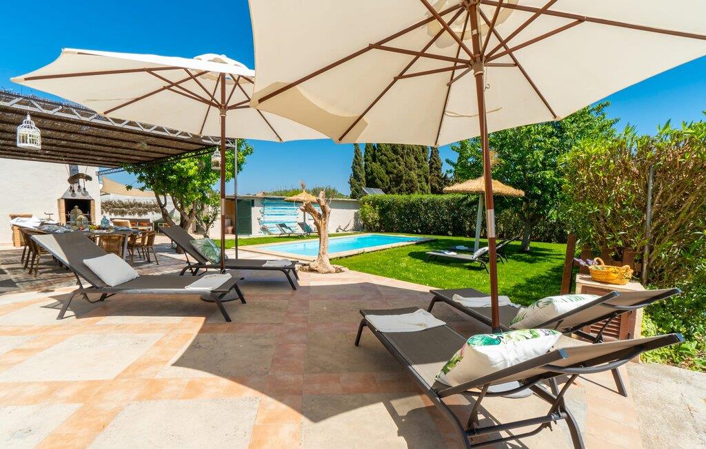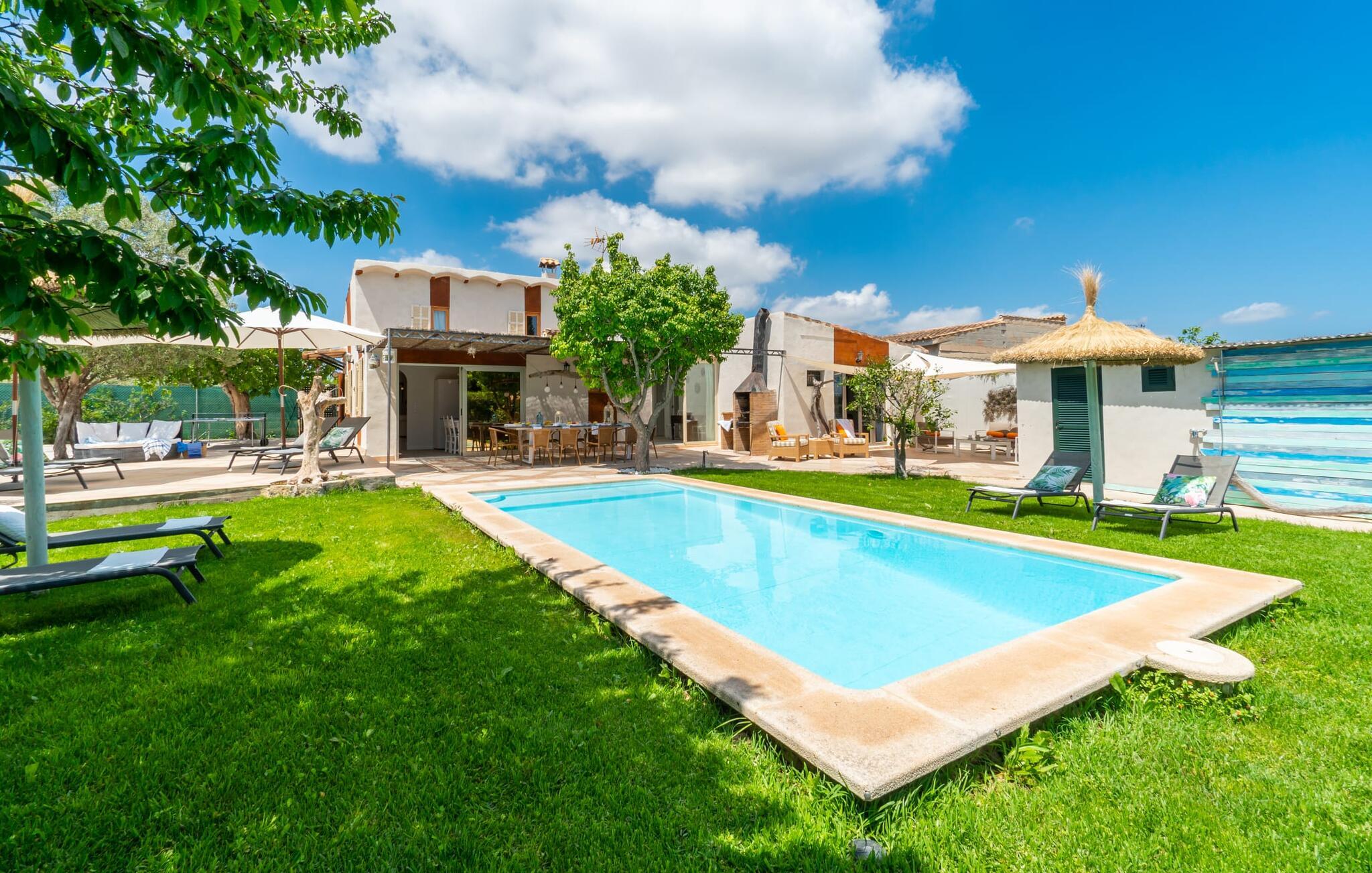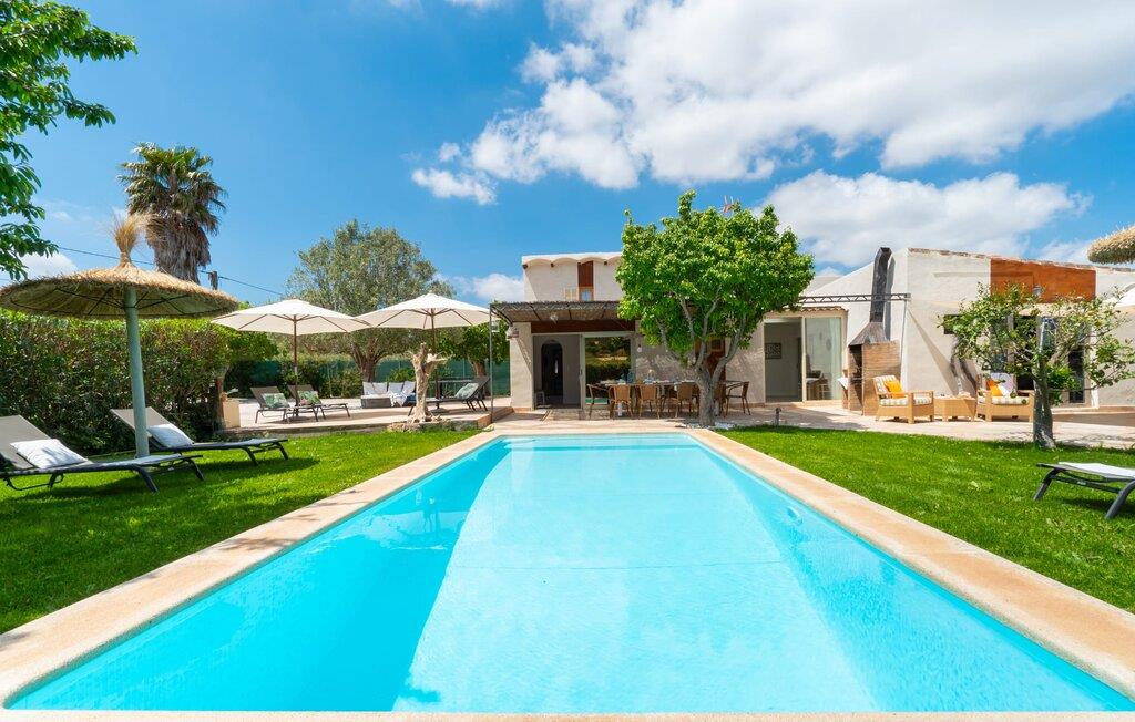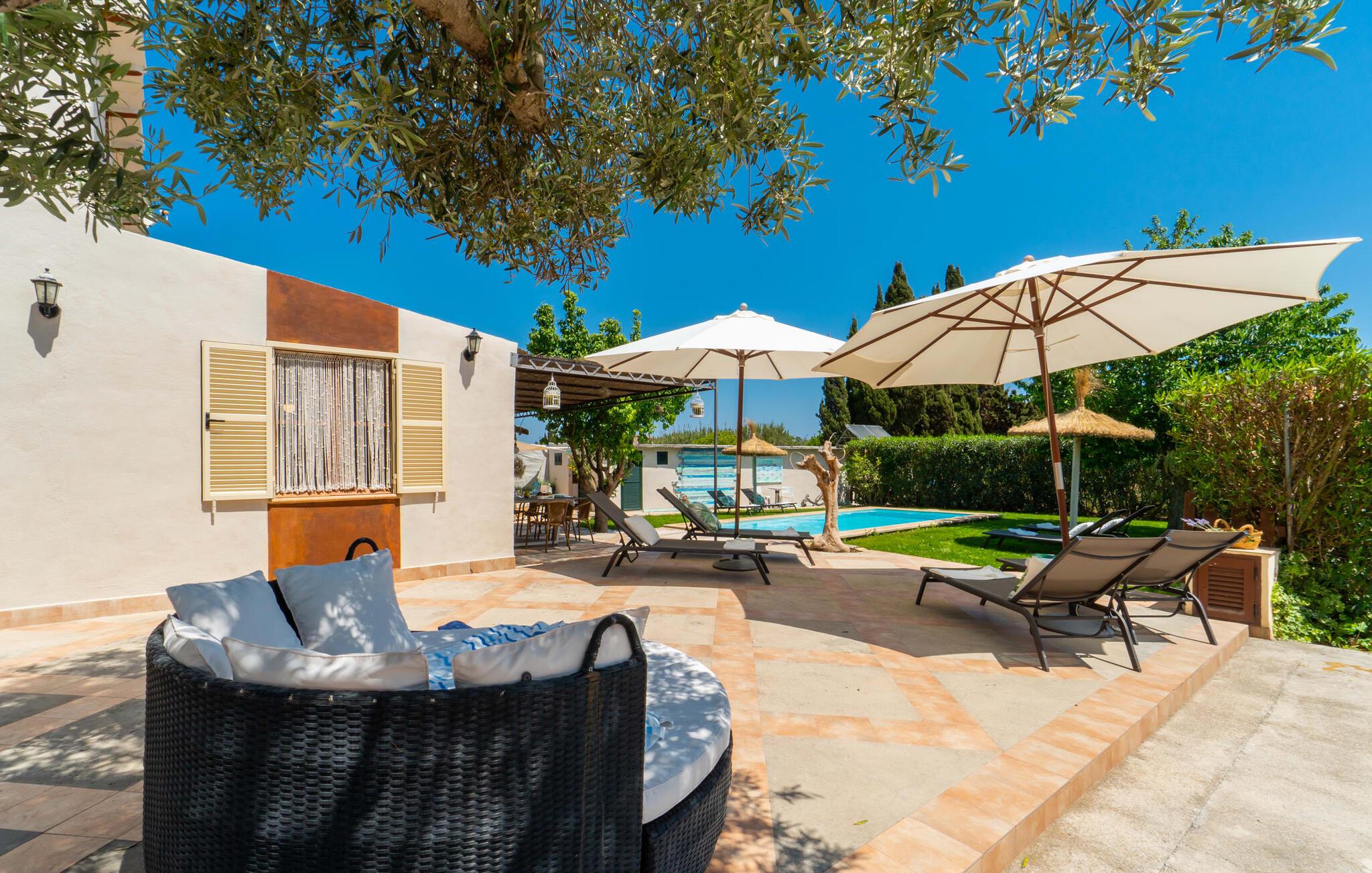 Denne bondegård på Mallorca udstråler en frisk, let sommerstemning og er ideel til en eller to familier. Det varierede, helt private haveområde byder på mange muligheder for at vælge jeres foretrukne daglige udendørssted på plænerne og terrasserne. Måske er det lige ved siden af huset, under oliventræet, hvor I kan finde jer så godt tilpas på soløen i polyrattan? Eller måske er det den smukke træbænk, hvor to eller tre personer kan sidde sammen? Eller er det spisebordet, der indbyder til at spise sammen eller grille? Overdækket med en markise smager eftermiddagskaffe eller en kølig drink særligt lækkert i den lille lounge eller fra lænestolene, som I kan placere et solrigt eller skyggefuldt sted alt efter tidspunktet på dagen. Sidst men ikke mindst vil et yndet sted være poolen, som lover en kærkommen måde at køle af på, især på varme dage. En praktisk udendørs bruser er tilgængelig samt et udendørs badeværelse - det vil I helt sikkert sætte pris på på jeres ferie. I kan solbade, slappe af og slappe af på de komfortable liggestole. Det indre af stuehuset har en vidunderlig maritim flair. Farver og dekoration signalerer umiskendeligt: Her er I tæt på havet. Så selvom I ikke har en dag på stranden, har I altid havbrisen med jer. I stueplan er der en rummelig stue/spisestue og det fuldt udstyrede køkken, hvor der er plads til endnu et spisebord foran det enorme gulv-til-loft vindue. Tre af de fire soveværelser og tre badeværelser er også placeret på denne stueplan, hvoraf to er en suite. Soveværelser og badeværelser imponerer med en moderne, men tidløs stil, der er præget af klare former, farveharmoni og lethed. Den fjerde soveplads på 1. sal er særdeles original med to enkeltsenge, som er placeret på et slags åbent galleri - bestemt særligt populært blandt yngre feriegæster. Vi giver dette feriehus på Mallorca vores uforbeholdne anbefaling! Omgivet af grønne områder og samtidig mindre end 2 km fra det nærmeste supermarked og bymiljøet i Manacor, ligger dette smukke bondehus på en vidunderlig afvekslende grund på 4.000 m². Smukke naturlige strande som Platja de Sa Rapita, Ses Covetes og Es Trenc ligger 19 til 21 km væk. Den nærliggende vej, som kan høres akustisk afhængig af vinden, bringer en bred vifte af udflugtsmål tæt på jer, og Ma-15 tager jer for eksempel hurtigt fra Manacor til Artà eller Cala Ratjada.