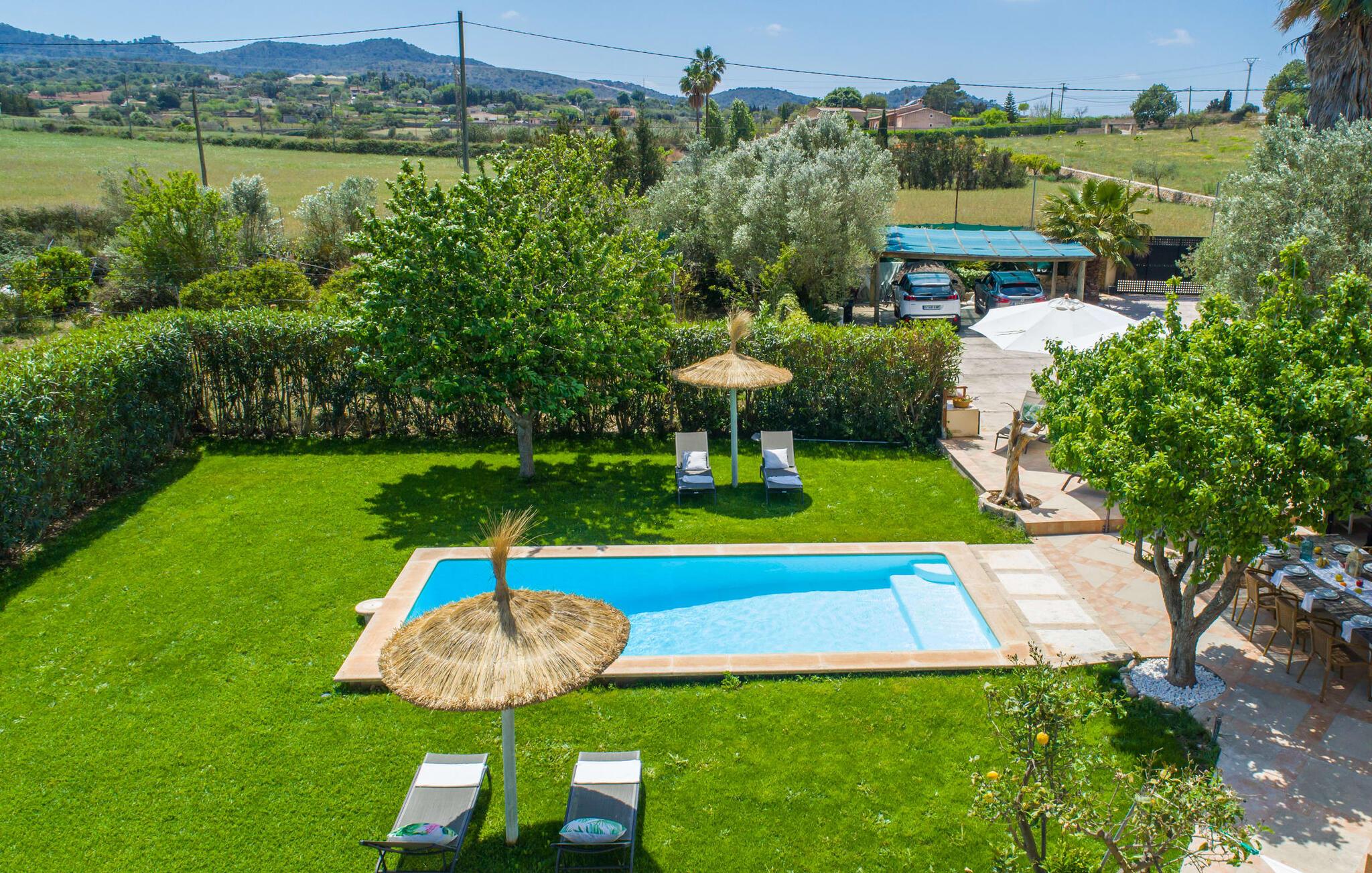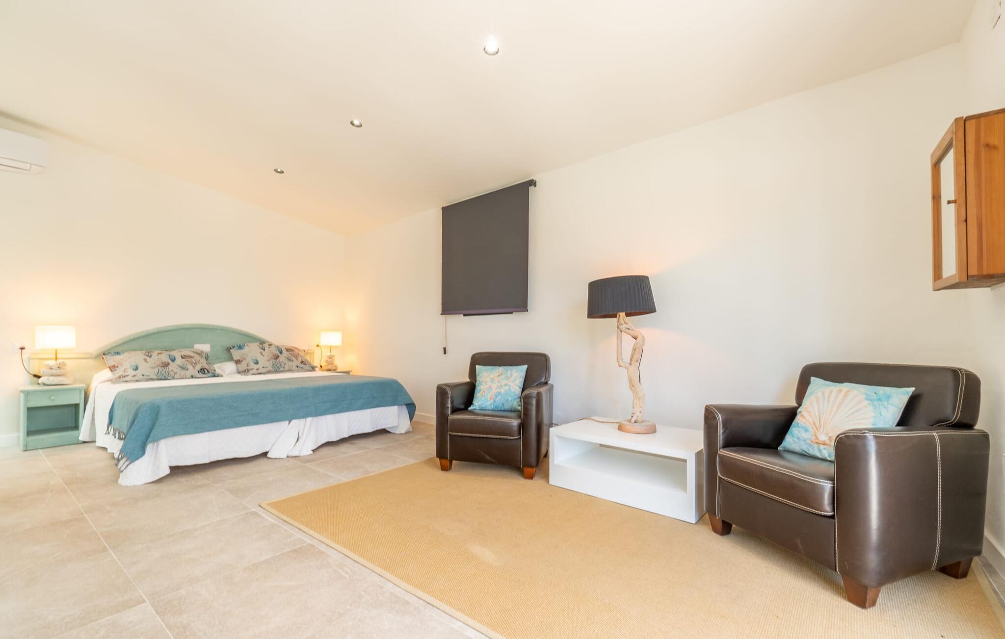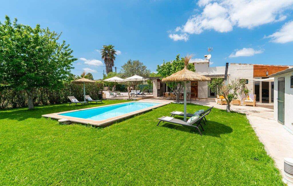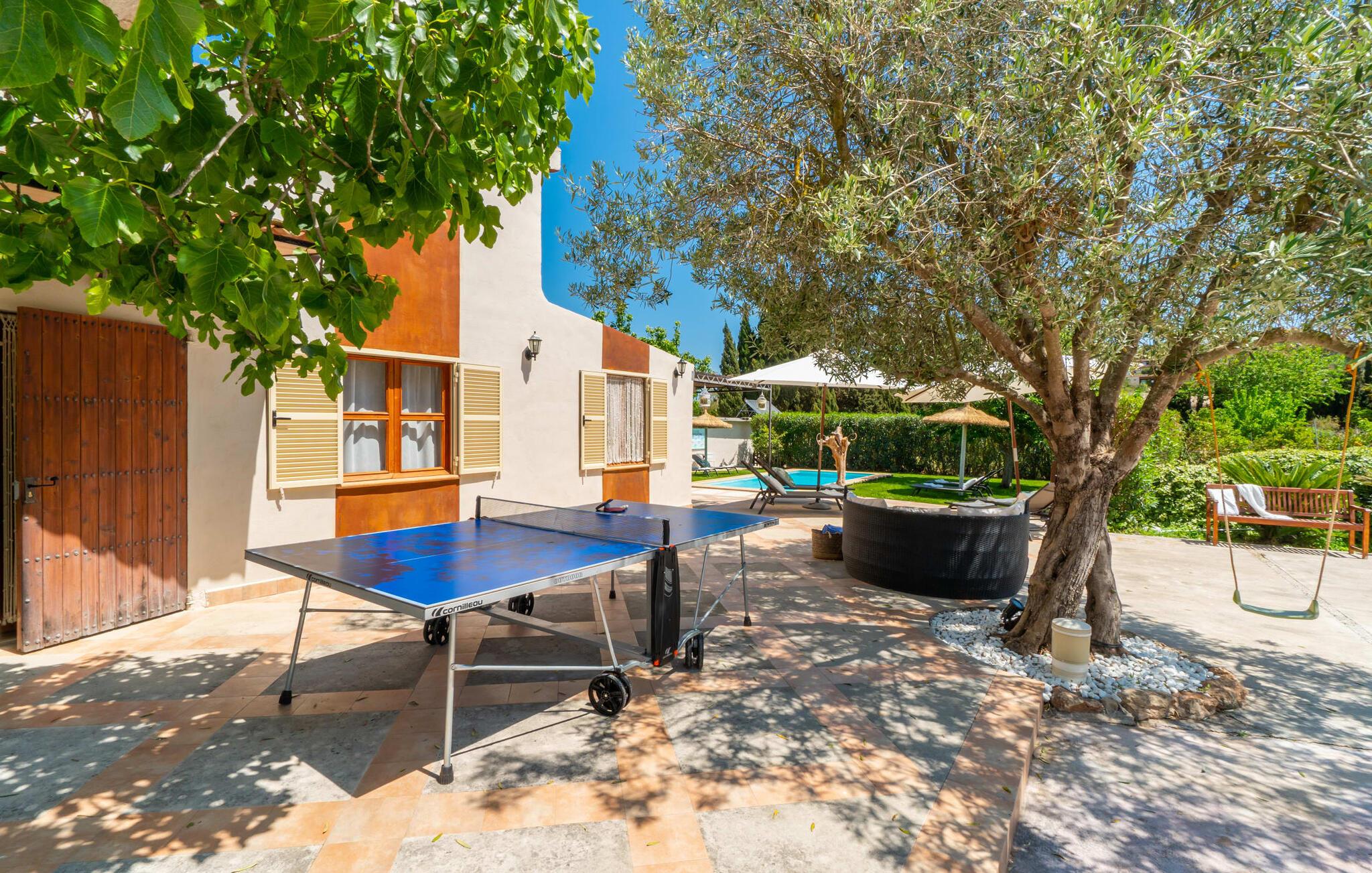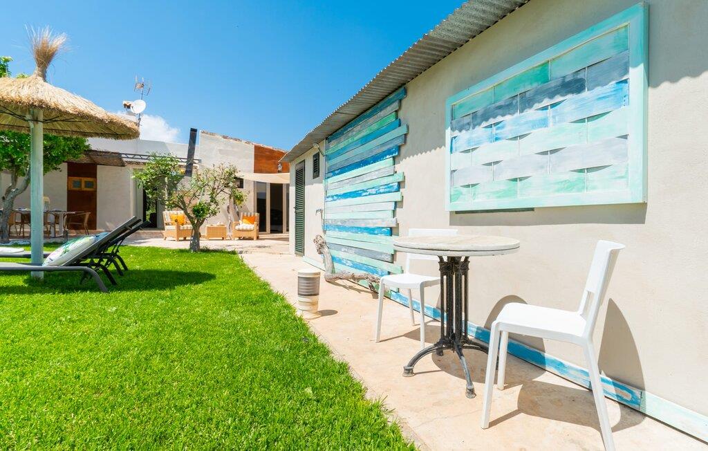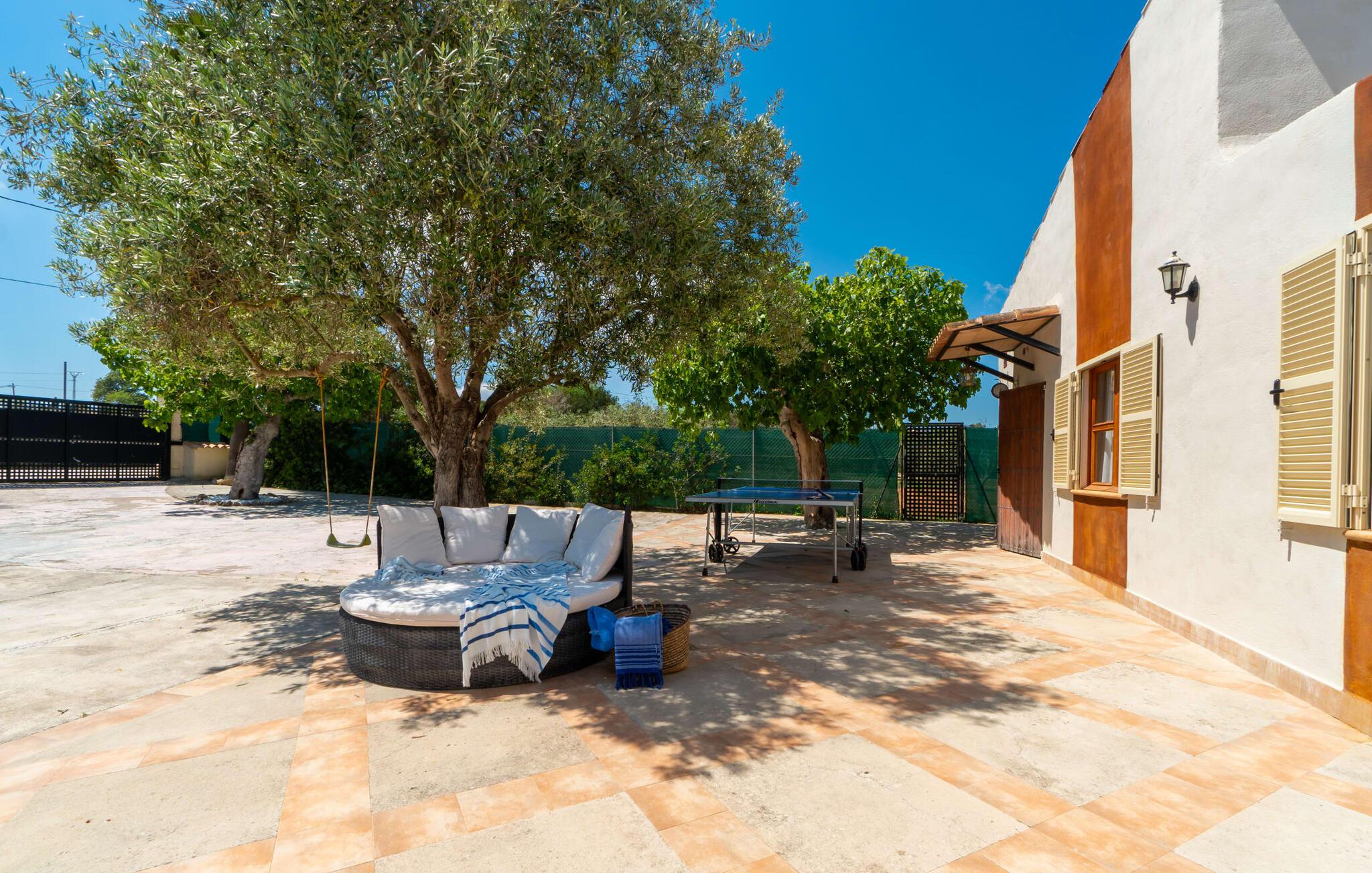 Denne bondegård på Mallorca udstråler en frisk, let sommerstemning og er ideel til en eller to familier. Det varierede, helt private haveområde byder på mange muligheder for at vælge jeres foretrukne daglige udendørssted på plænerne og terrasserne. Måske er det lige ved siden af huset, under oliventræet, hvor I kan finde jer så godt tilpas på soløen i polyrattan? Eller måske er det den smukke træbænk, hvor to eller tre personer kan sidde sammen? Eller er det spisebordet, der indbyder til at spise sammen eller grille? Overdækket med en markise smager eftermiddagskaffe eller en kølig drink særligt lækkert i den lille lounge eller fra lænestolene, som I kan placere et solrigt eller skyggefuldt sted alt efter tidspunktet på dagen. Sidst men ikke mindst vil et yndet sted være poolen, som lover en kærkommen måde at køle af på, især på varme dage. En praktisk udendørs bruser er tilgængelig samt et udendørs badeværelse - det vil I helt sikkert sætte pris på på jeres ferie. I kan solbade, slappe af og slappe af på de komfortable liggestole. Det indre af stuehuset har en vidunderlig maritim flair. Farver og dekoration signalerer umiskendeligt: Her er I tæt på havet. Så selvom I ikke har en dag på stranden, har I altid havbrisen med jer. I stueplan er der en rummelig stue/spisestue og det fuldt udstyrede køkken, hvor der er plads til endnu et spisebord foran det enorme gulv-til-loft vindue. Tre af de fire soveværelser og tre badeværelser er også placeret på denne stueplan, hvoraf to er en suite. Soveværelser og badeværelser imponerer med en moderne, men tidløs stil, der er præget af klare former, farveharmoni og lethed. Den fjerde soveplads på 1. sal er særdeles original med to enkeltsenge, som er placeret på et slags åbent galleri - bestemt særligt populært blandt yngre feriegæster. Vi giver dette feriehus på Mallorca vores uforbeholdne anbefaling! Omgivet af grønne områder og samtidig mindre end 2 km fra det nærmeste supermarked og bymiljøet i Manacor, ligger dette smukke bondehus på en vidunderlig afvekslende grund på 4.000 m². Smukke naturlige strande som Platja de Sa Rapita, Ses Covetes og Es Trenc ligger 19 til 21 km væk. Den nærliggende vej, som kan høres akustisk afhængig af vinden, bringer en bred vifte af udflugtsmål tæt på jer, og Ma-15 tager jer for eksempel hurtigt fra Manacor til Artà eller Cala Ratjada.