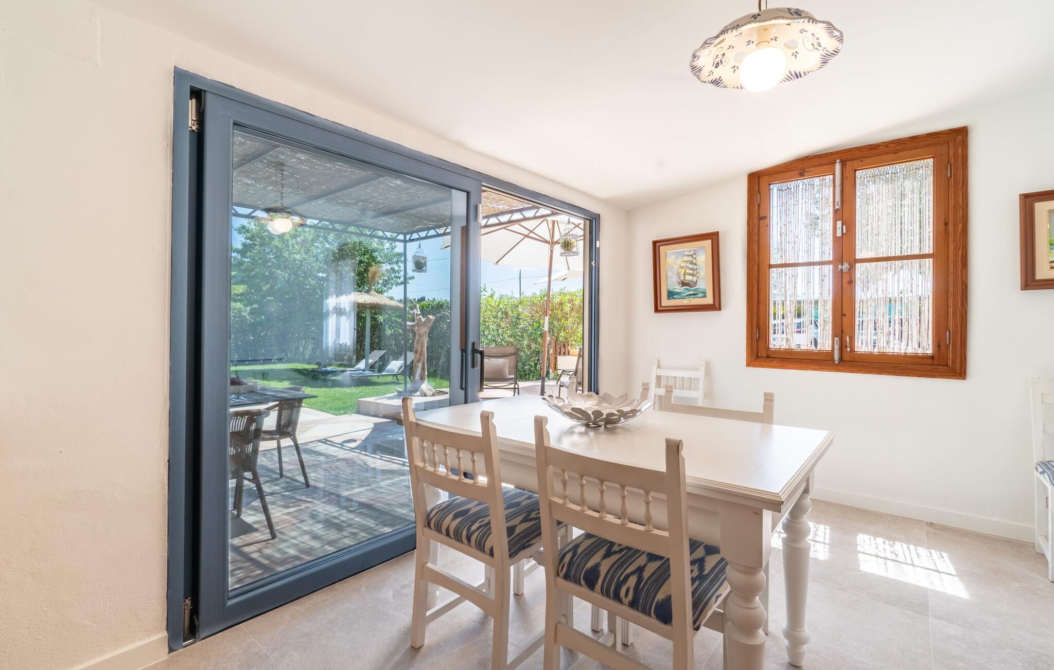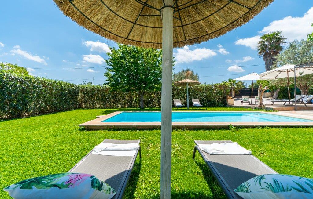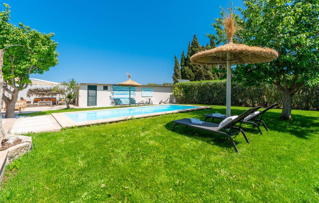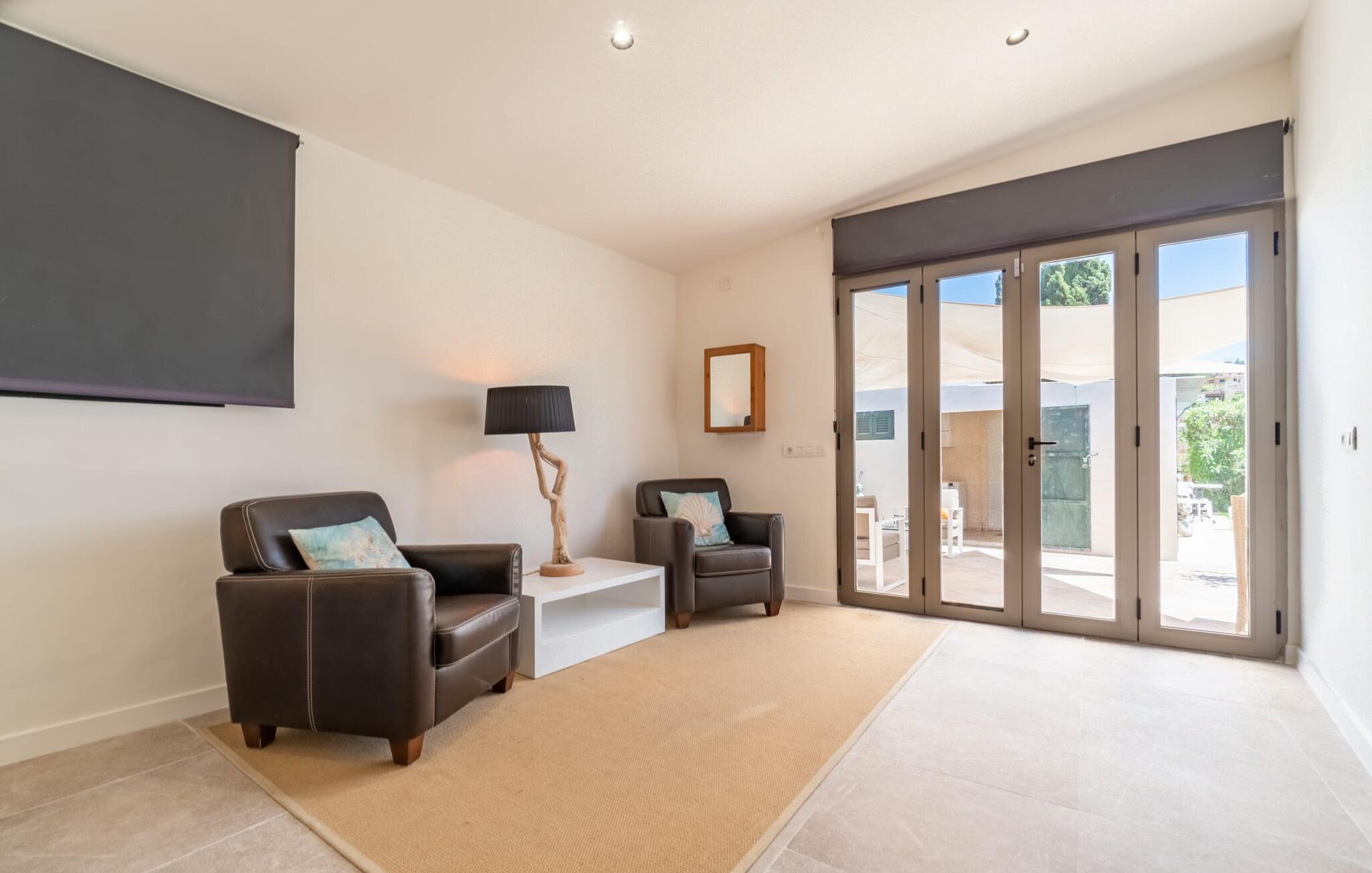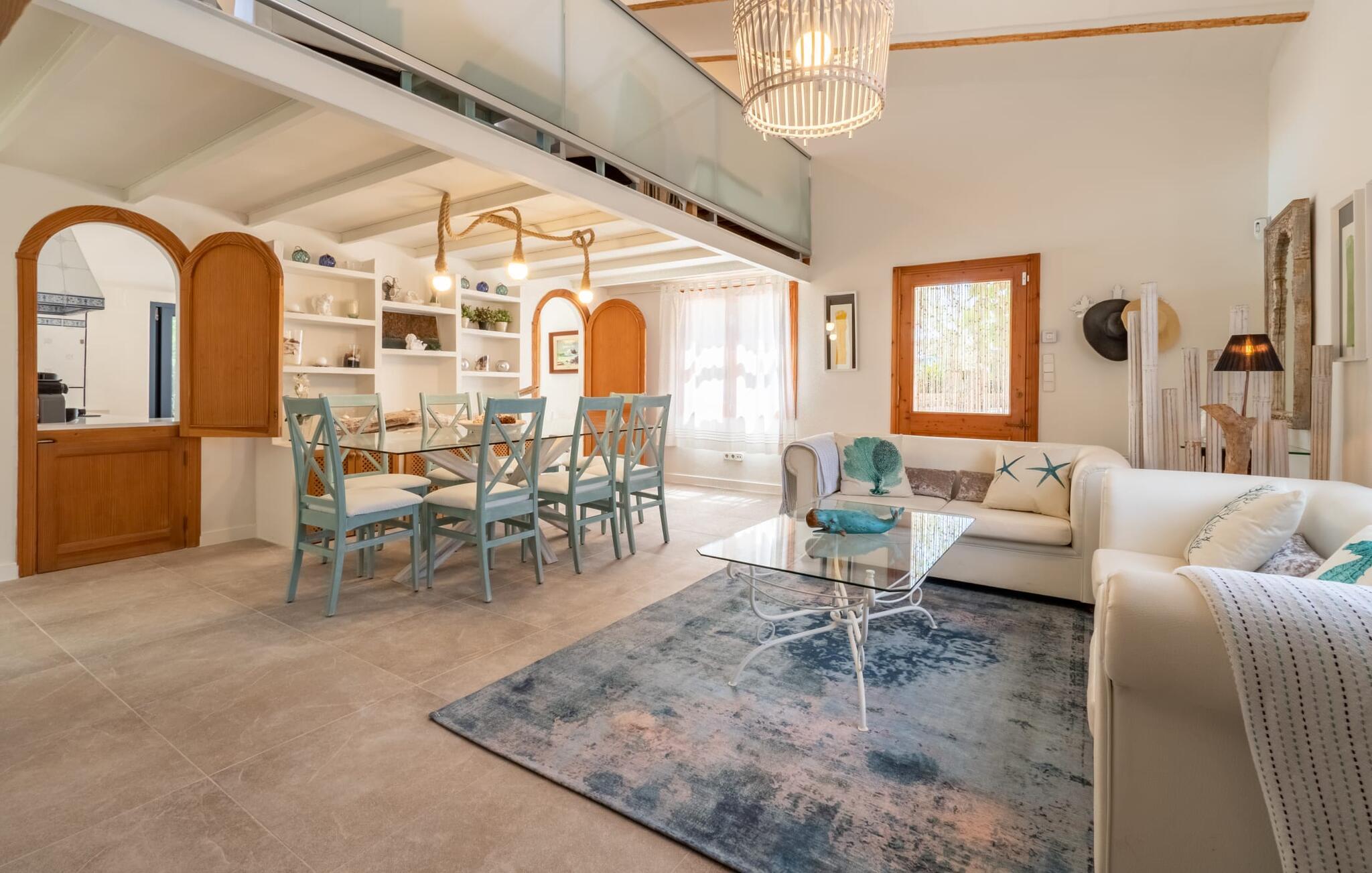 Denne bondegård på Mallorca udstråler en frisk, let sommerstemning og er ideel til en eller to familier. Det varierede, helt private haveområde byder på mange muligheder for at vælge jeres foretrukne daglige udendørssted på plænerne og terrasserne. Måske er det lige ved siden af huset, under oliventræet, hvor I kan finde jer så godt tilpas på soløen i polyrattan? Eller måske er det den smukke træbænk, hvor to eller tre personer kan sidde sammen? Eller er det spisebordet, der indbyder til at spise sammen eller grille? Overdækket med en markise smager eftermiddagskaffe eller en kølig drink særligt lækkert i den lille lounge eller fra lænestolene, som I kan placere et solrigt eller skyggefuldt sted alt efter tidspunktet på dagen. Sidst men ikke mindst vil et yndet sted være poolen, som lover en kærkommen måde at køle af på, især på varme dage. En praktisk udendørs bruser er tilgængelig samt et udendørs badeværelse - det vil I helt sikkert sætte pris på på jeres ferie. I kan solbade, slappe af og slappe af på de komfortable liggestole. Det indre af stuehuset har en vidunderlig maritim flair. Farver og dekoration signalerer umiskendeligt: Her er I tæt på havet. Så selvom I ikke har en dag på stranden, har I altid havbrisen med jer. I stueplan er der en rummelig stue/spisestue og det fuldt udstyrede køkken, hvor der er plads til endnu et spisebord foran det enorme gulv-til-loft vindue. Tre af de fire soveværelser og tre badeværelser er også placeret på denne stueplan, hvoraf to er en suite. Soveværelser og badeværelser imponerer med en moderne, men tidløs stil, der er præget af klare former, farveharmoni og lethed. Den fjerde soveplads på 1. sal er særdeles original med to enkeltsenge, som er placeret på et slags åbent galleri - bestemt særligt populært blandt yngre feriegæster. Vi giver dette feriehus på Mallorca vores uforbeholdne anbefaling! Omgivet af grønne områder og samtidig mindre end 2 km fra det nærmeste supermarked og bymiljøet i Manacor, ligger dette smukke bondehus på en vidunderlig afvekslende grund på 4.000 m². Smukke naturlige strande som Platja de Sa Rapita, Ses Covetes og Es Trenc ligger 19 til 21 km væk. Den nærliggende vej, som kan høres akustisk afhængig af vinden, bringer en bred vifte af udflugtsmål tæt på jer, og Ma-15 tager jer for eksempel hurtigt fra Manacor til Artà eller Cala Ratjada.