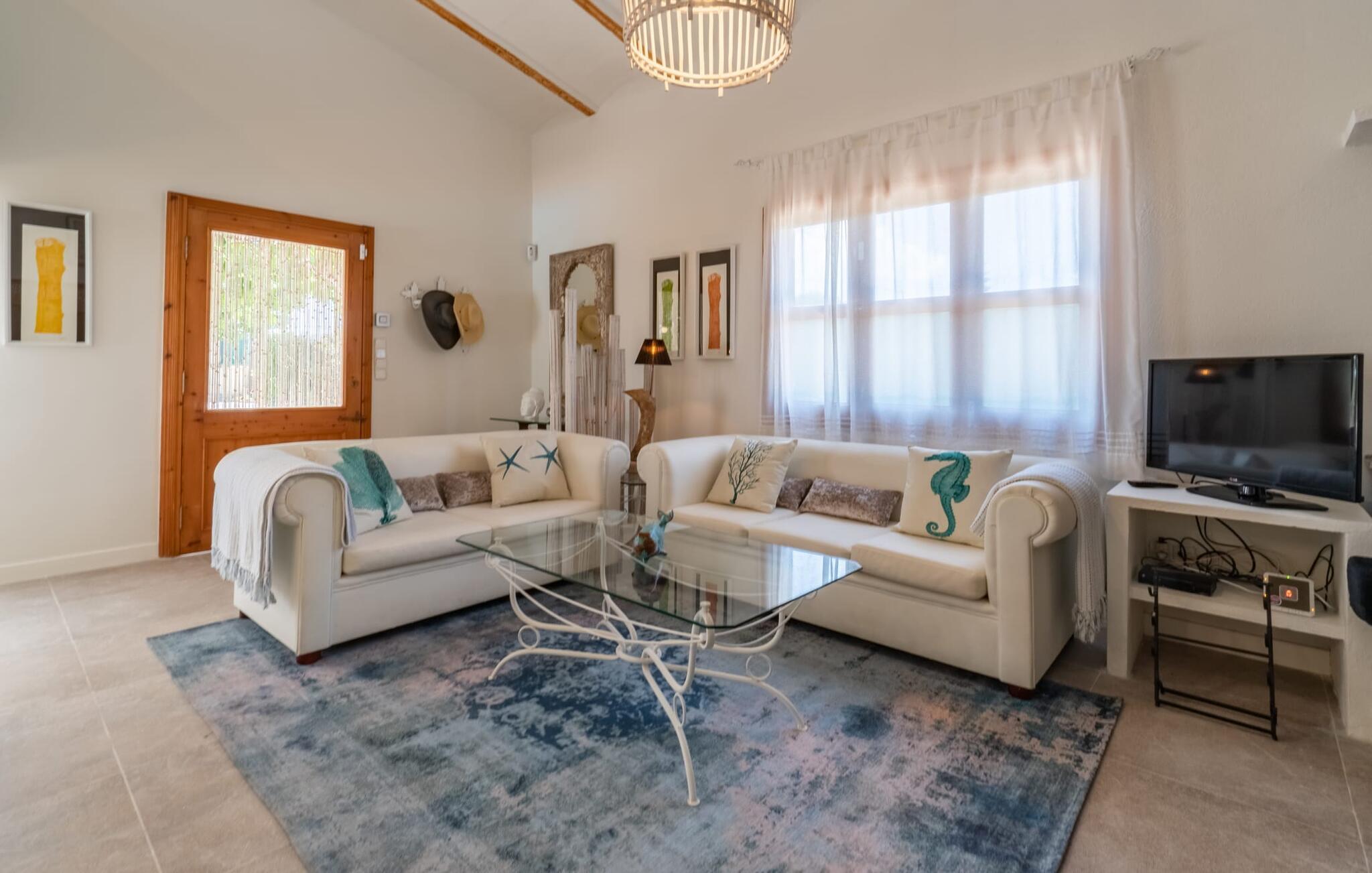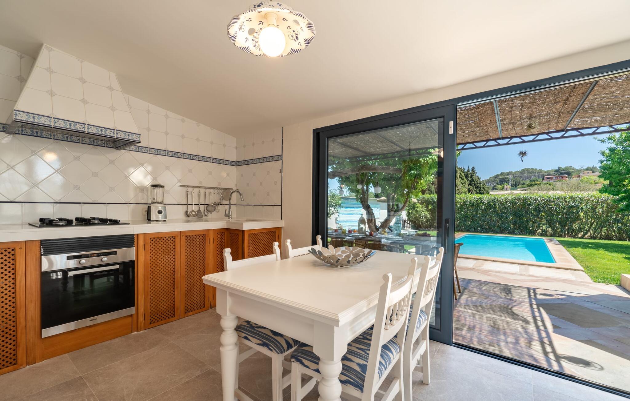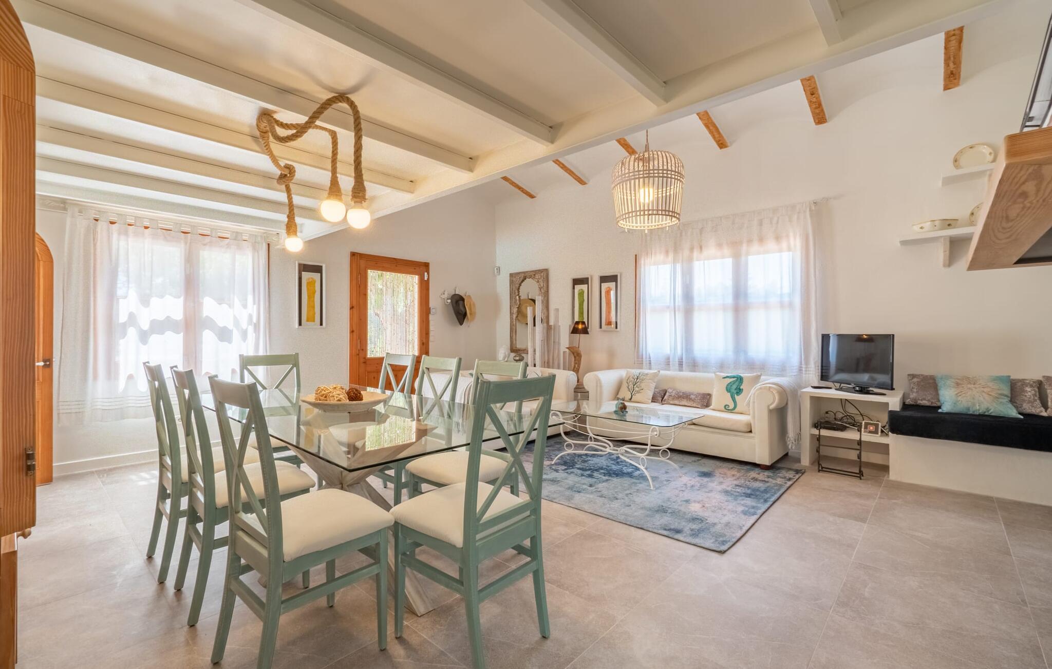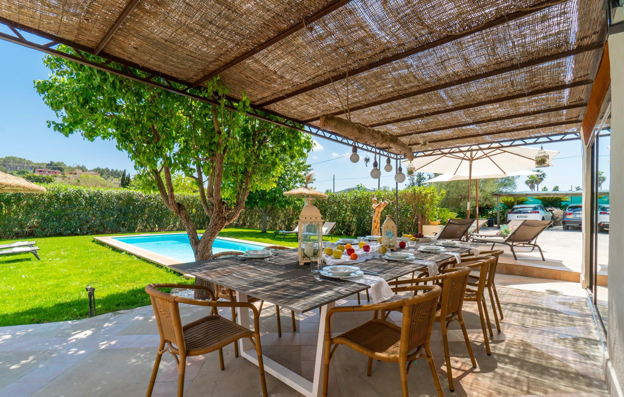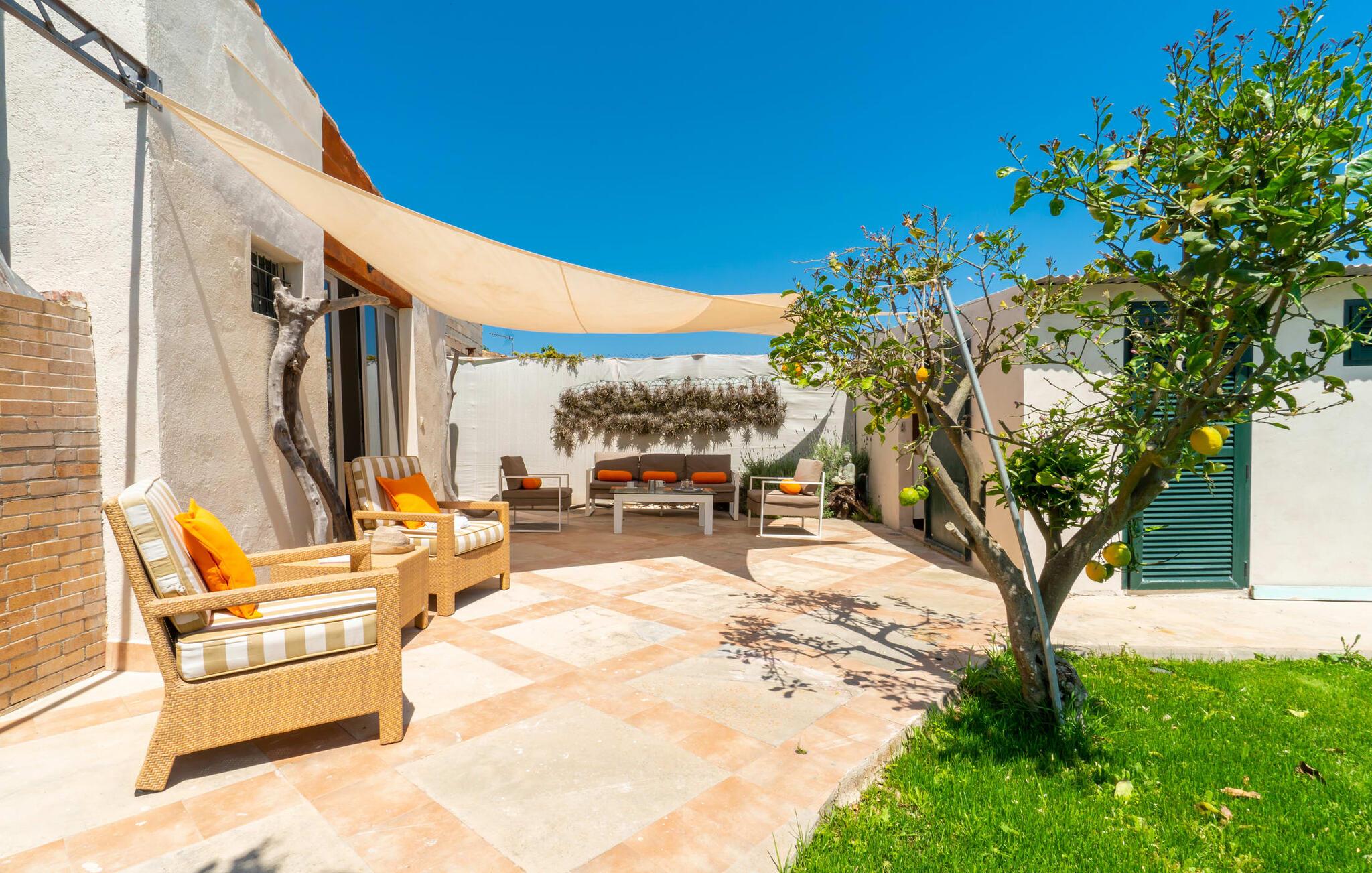Denne bondegård på Mallorca udstråler en frisk, let sommerstemning og er ideel til en eller to familier. Det varierede, helt private haveområde byder på mange muligheder for at vælge jeres foretrukne daglige udendørssted på plænerne og terrasserne. Måske er det lige ved siden af huset, under oliventræet, hvor I kan finde jer så godt tilpas på soløen i polyrattan? Eller måske er det den smukke træbænk, hvor to eller tre personer kan sidde sammen? Eller er det spisebordet, der indbyder til at spise sammen eller grille? Overdækket med en markise smager eftermiddagskaffe eller en kølig drink særligt lækkert i den lille lounge eller fra lænestolene, som I kan placere et solrigt eller skyggefuldt sted alt efter tidspunktet på dagen. Sidst men ikke mindst vil et yndet sted være poolen, som lover en kærkommen måde at køle af på, især på varme dage. En praktisk udendørs bruser er tilgængelig samt et udendørs badeværelse - det vil I helt sikkert sætte pris på på jeres ferie. I kan solbade, slappe af og slappe af på de komfortable liggestole. Det indre af stuehuset har en vidunderlig maritim flair. Farver og dekoration signalerer umiskendeligt: Her er I tæt på havet. Så selvom I ikke har en dag på stranden, har I altid havbrisen med jer. I stueplan er der en rummelig stue/spisestue og det fuldt udstyrede køkken, hvor der er plads til endnu et spisebord foran det enorme gulv-til-loft vindue. Tre af de fire soveværelser og tre badeværelser er også placeret på denne stueplan, hvoraf to er en suite. Soveværelser og badeværelser imponerer med en moderne, men tidløs stil, der er præget af klare former, farveharmoni og lethed. Den fjerde soveplads på 1. sal er særdeles original med to enkeltsenge, som er placeret på et slags åbent galleri - bestemt særligt populært blandt yngre feriegæster. Vi giver dette feriehus på Mallorca vores uforbeholdne anbefaling! Omgivet af grønne områder og samtidig mindre end 2 km fra det nærmeste supermarked og bymiljøet i Manacor, ligger dette smukke bondehus på en vidunderlig afvekslende grund på 4.000 m². Smukke naturlige strande som Platja de Sa Rapita, Ses Covetes og Es Trenc ligger 19 til 21 km væk. Den nærliggende vej, som kan høres akustisk afhængig af vinden, bringer en bred vifte af udflugtsmål tæt på jer, og Ma-15 tager jer for eksempel hurtigt fra Manacor til Artà eller Cala Ratjada.