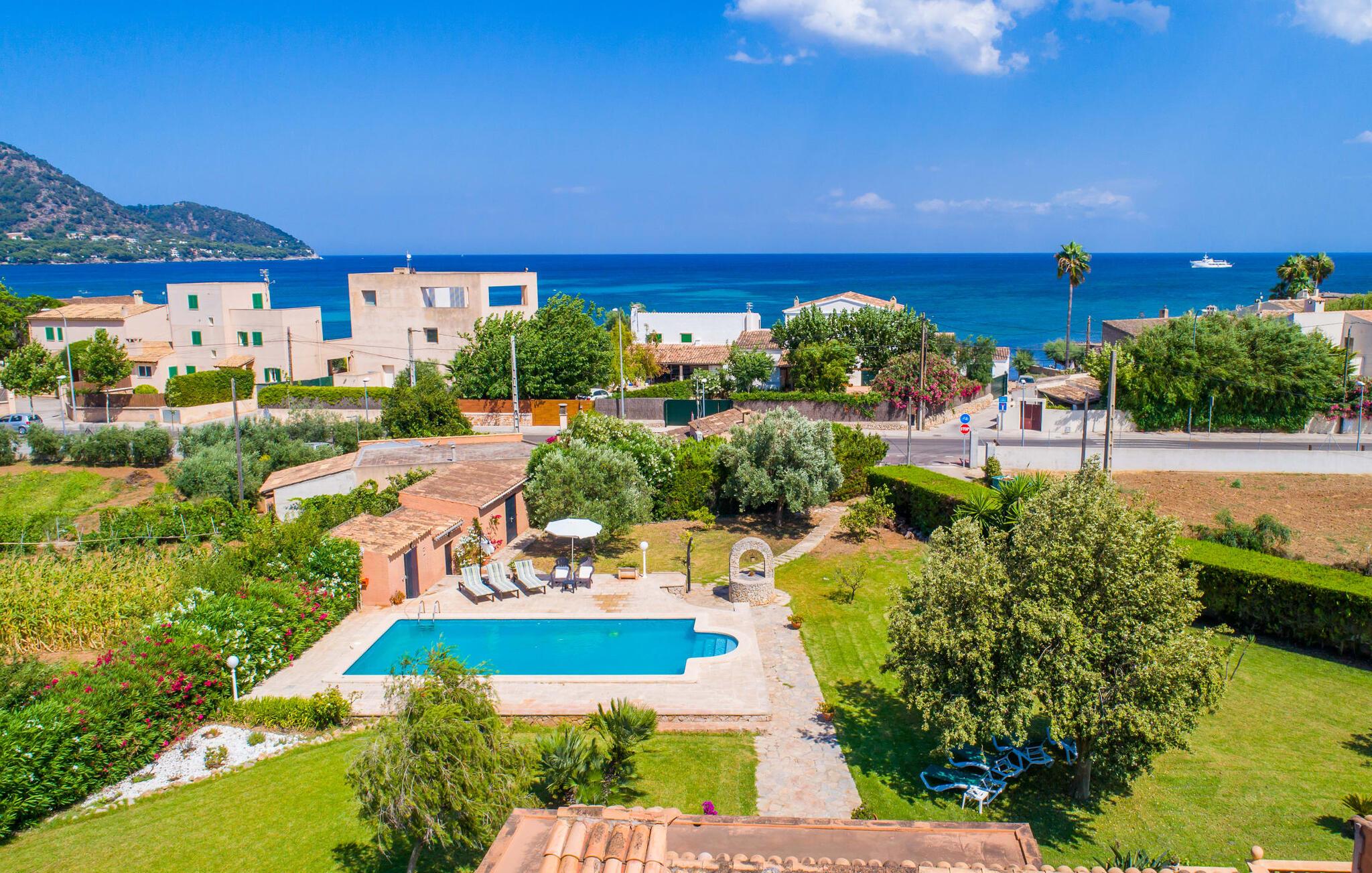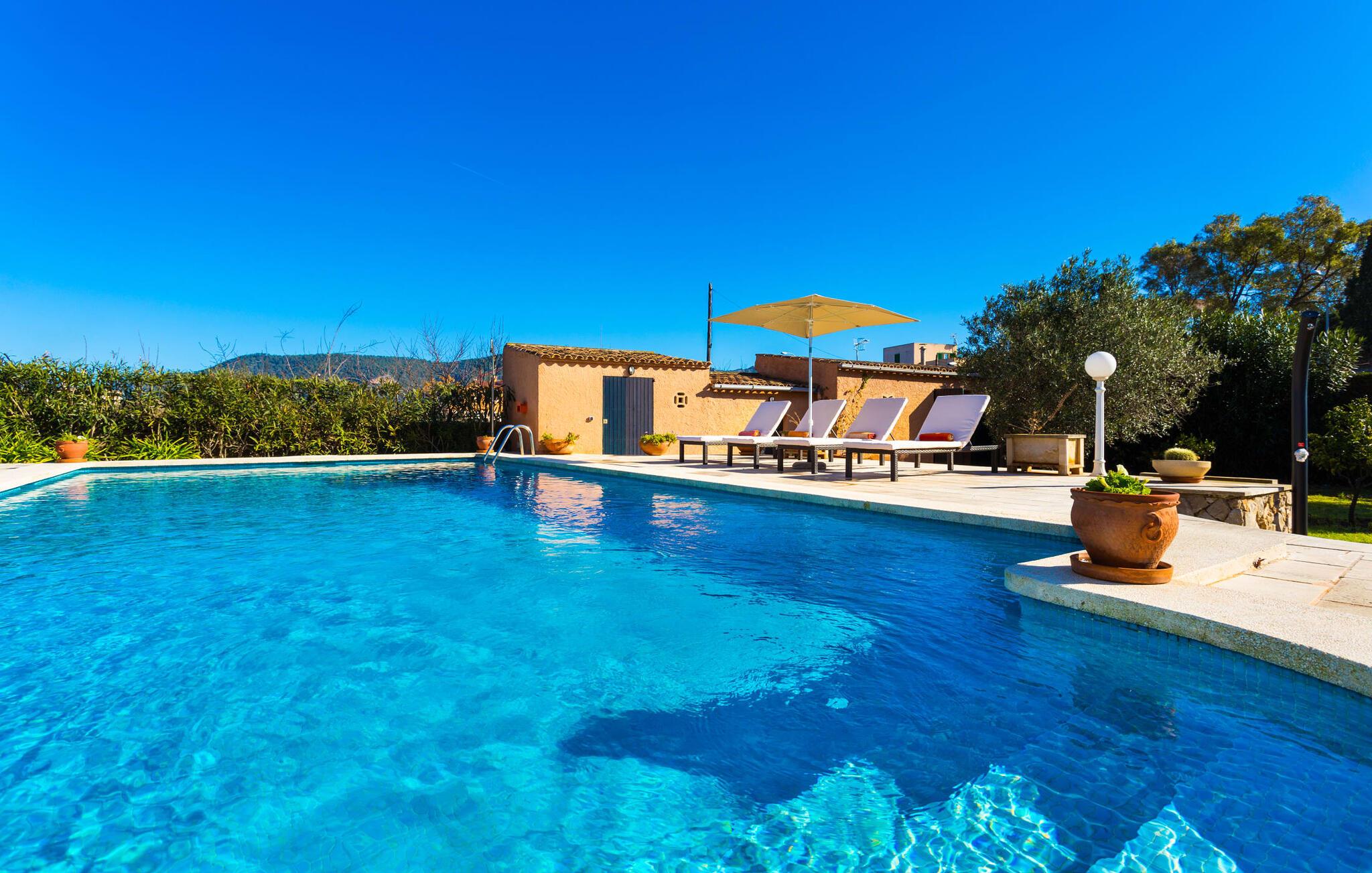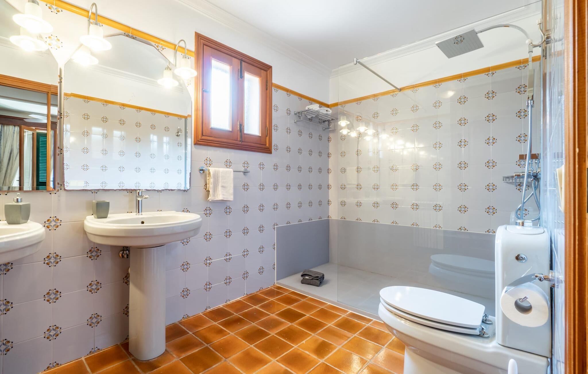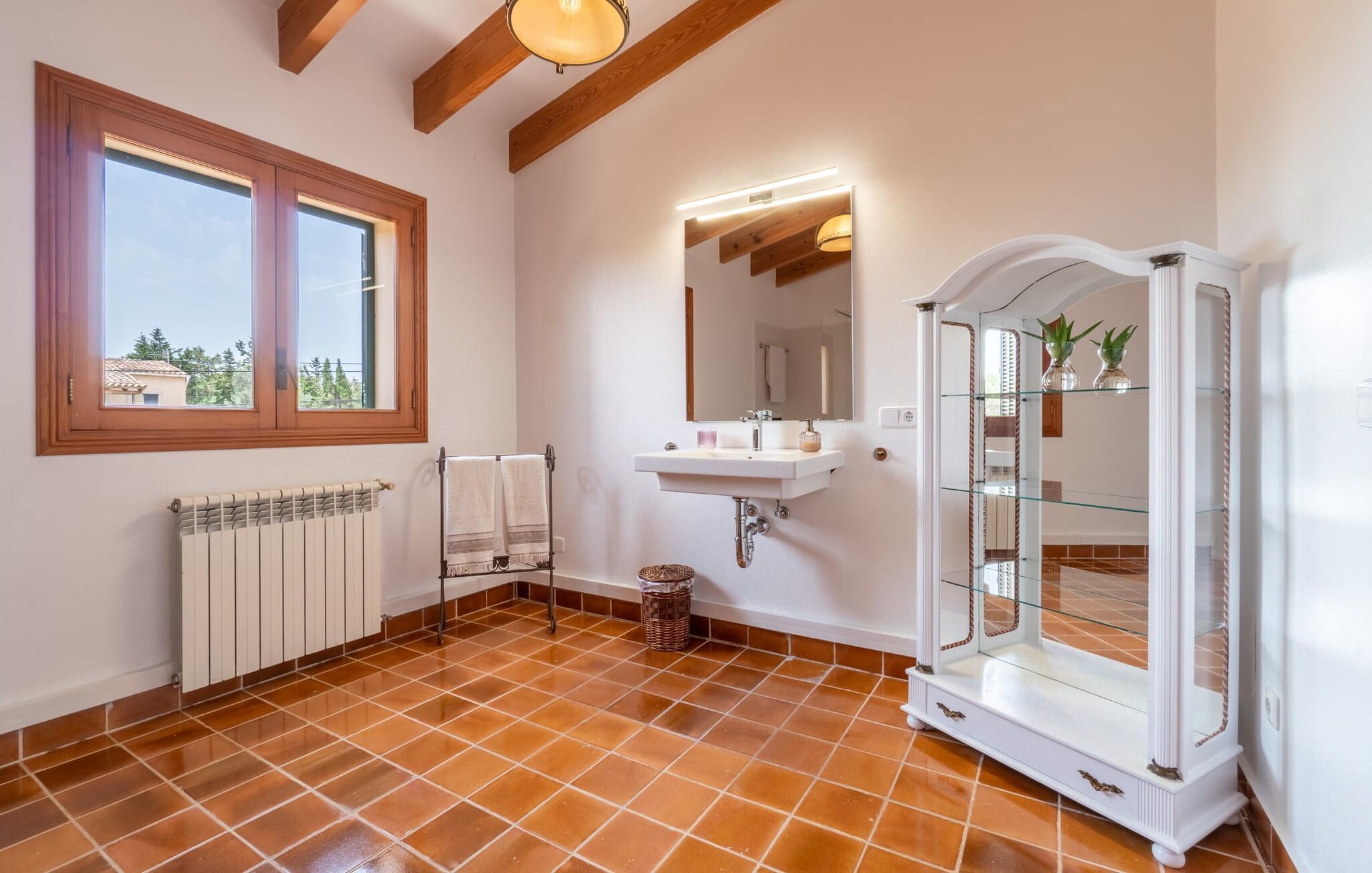 Fincaen "Es Fasser" ligger nær Costa de los Pinos i et roligt boligområde og tilbyder en privat ejendom med en rummelig have og et rummeligt hus. Det er omgivet af en hæk og tilbyder børn et trygt miljø. Udendørsområdet byder på velplejede græsplæner, middelhavsplanter og charmerende stier, der skaber en malerisk kulisse. En stor overdækket terrasse har udsigt til en rektangulær pool af varierende dybder, der er adgang til via en halvcirkelformet trappe. Slap af på komfortable liggestole og udendørsmøbler og nyd udendørs spisepladser med en muret grill og et ekstra køleskab til drinks. Indvendigt er villaen smagfuldt indrettet og har kombineret stue/spisestue med stort bord, hyggeligt sofahjørne med TV og pejs samt gulv til loft vinduer for naturligt lysindfald. Det veludstyrede køkken omfatter brødrister, blender og kaffemaskine. I stueetagen er der indbydende soveværelser og moderne badeværelser, mens den øverste etage byder på en ekstra stue og et lille bibliotek. Faciliteter som et strygejern og en hårtørrer giver ekstra bekvemmelighed. Den venlige finca "Es Fasser" ligger nær havet mellem Cala Bona og Costa de los Pinos. Cala Millor ligger kun 8 minutter væk i bil. Lokale markeder i Son Servera og Artà samt forskellige restauranter og barer i Port Verd, Costa de los Pinos og Cala Bona ligger inden for gåafstand. Port Vell-stranden er bekvemt placeret på den anden side af vejen, med lignende naturskønne muligheder ved Sa Marjal og Cala Bona. Valgfri brug af opvarmning er inkluderet, men brugen er begrænset til 7.00 til 10.00 og 19.00 til 23.