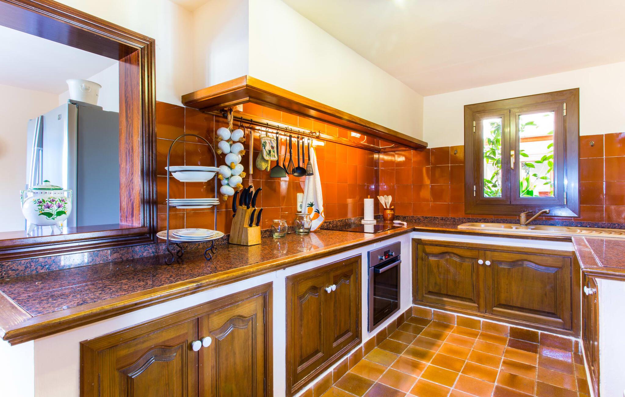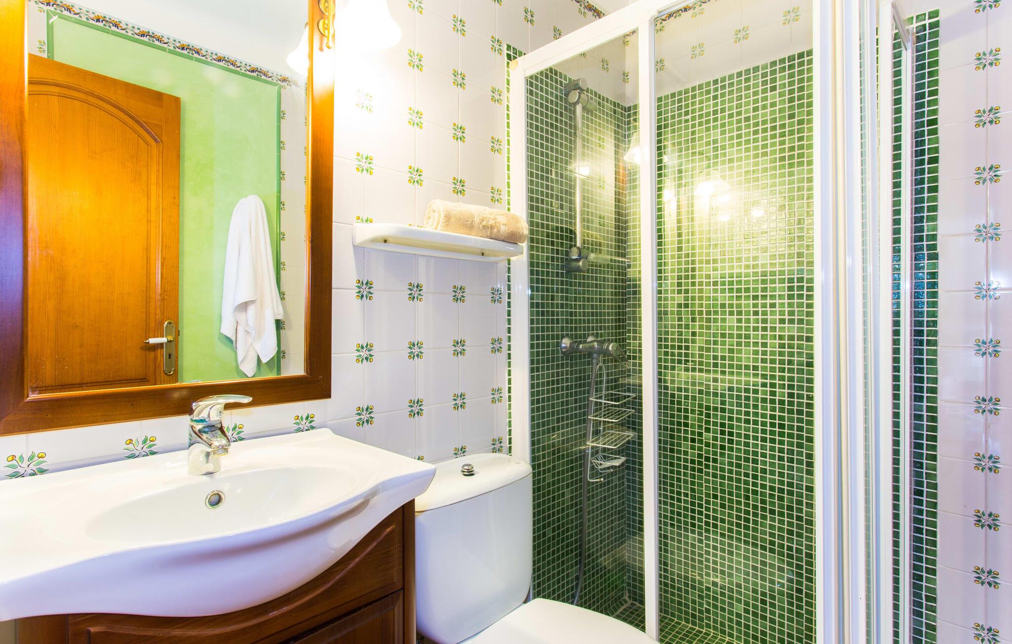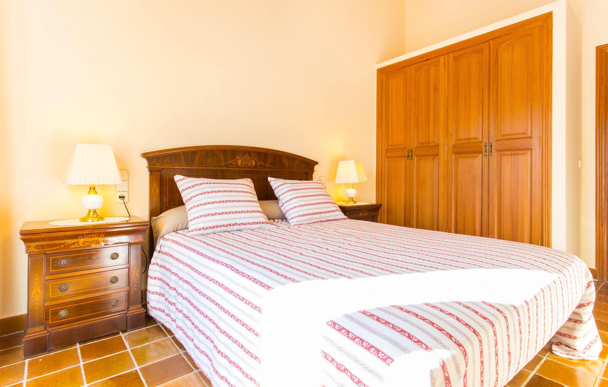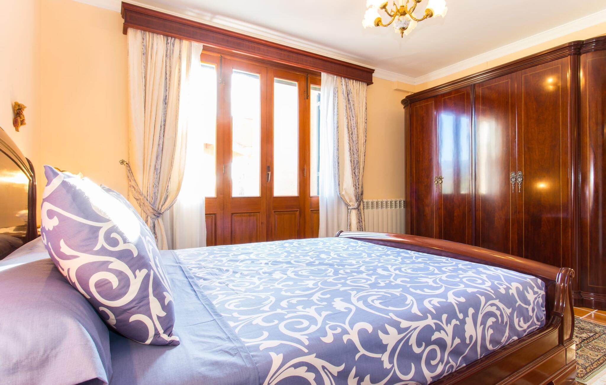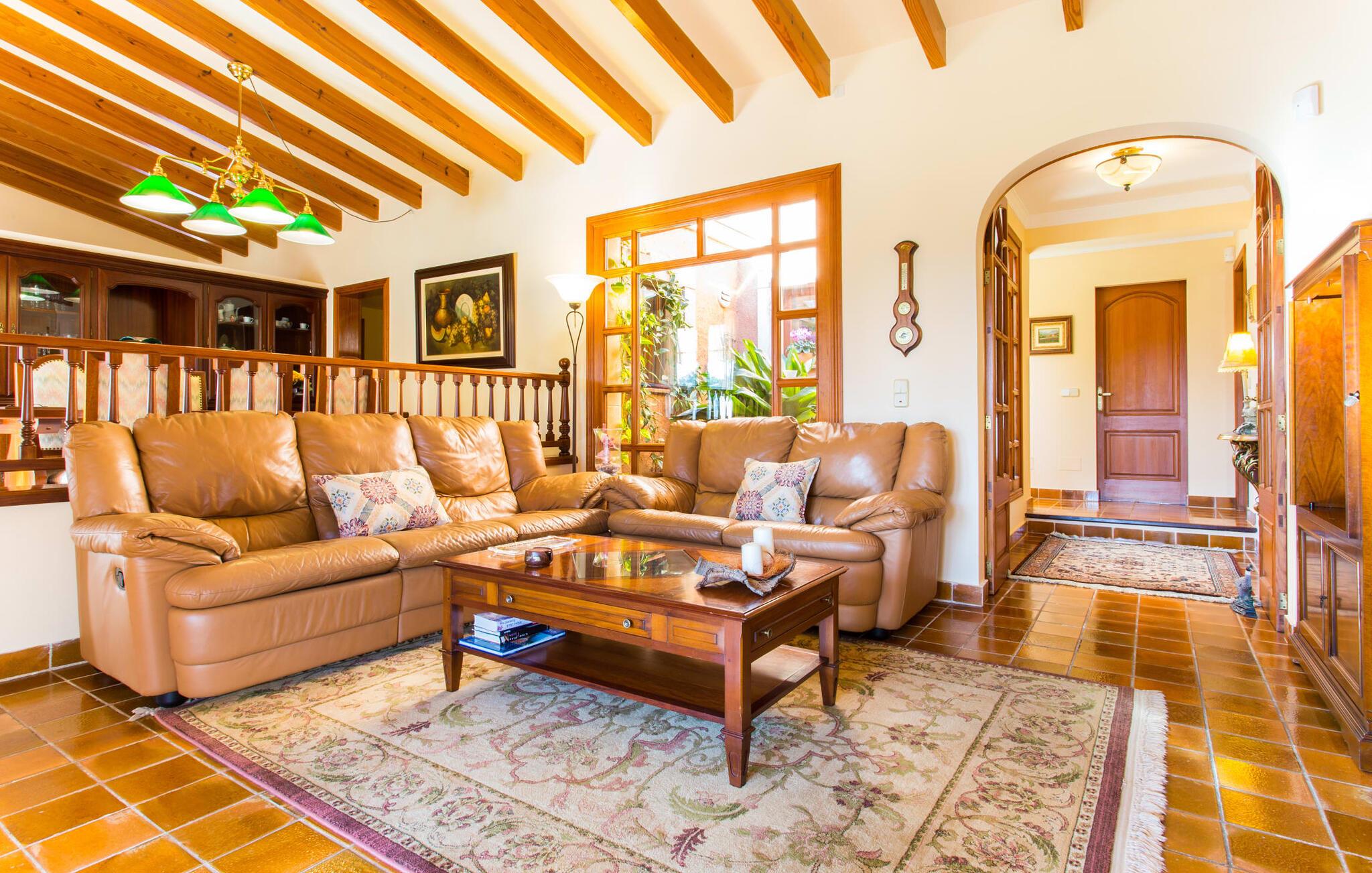Fincaen "Es Fasser" ligger nær Costa de los Pinos i et roligt boligområde og tilbyder en privat ejendom med en rummelig have og et rummeligt hus. Det er omgivet af en hæk og tilbyder børn et trygt miljø. Udendørsområdet byder på velplejede græsplæner, middelhavsplanter og charmerende stier, der skaber en malerisk kulisse. En stor overdækket terrasse har udsigt til en rektangulær pool af varierende dybder, der er adgang til via en halvcirkelformet trappe. Slap af på komfortable liggestole og udendørsmøbler og nyd udendørs spisepladser med en muret grill og et ekstra køleskab til drinks. Indvendigt er villaen smagfuldt indrettet og har kombineret stue/spisestue med stort bord, hyggeligt sofahjørne med TV og pejs samt gulv til loft vinduer for naturligt lysindfald. Det veludstyrede køkken omfatter brødrister, blender og kaffemaskine. I stueetagen er der indbydende soveværelser og moderne badeværelser, mens den øverste etage byder på en ekstra stue og et lille bibliotek. Faciliteter som et strygejern og en hårtørrer giver ekstra bekvemmelighed. Den venlige finca "Es Fasser" ligger nær havet mellem Cala Bona og Costa de los Pinos. Cala Millor ligger kun 8 minutter væk i bil. Lokale markeder i Son Servera og Artà samt forskellige restauranter og barer i Port Verd, Costa de los Pinos og Cala Bona ligger inden for gåafstand. Port Vell-stranden er bekvemt placeret på den anden side af vejen, med lignende naturskønne muligheder ved Sa Marjal og Cala Bona. Valgfri brug af opvarmning er inkluderet, men brugen er begrænset til 7.00 til 10.00 og 19.00 til 23.