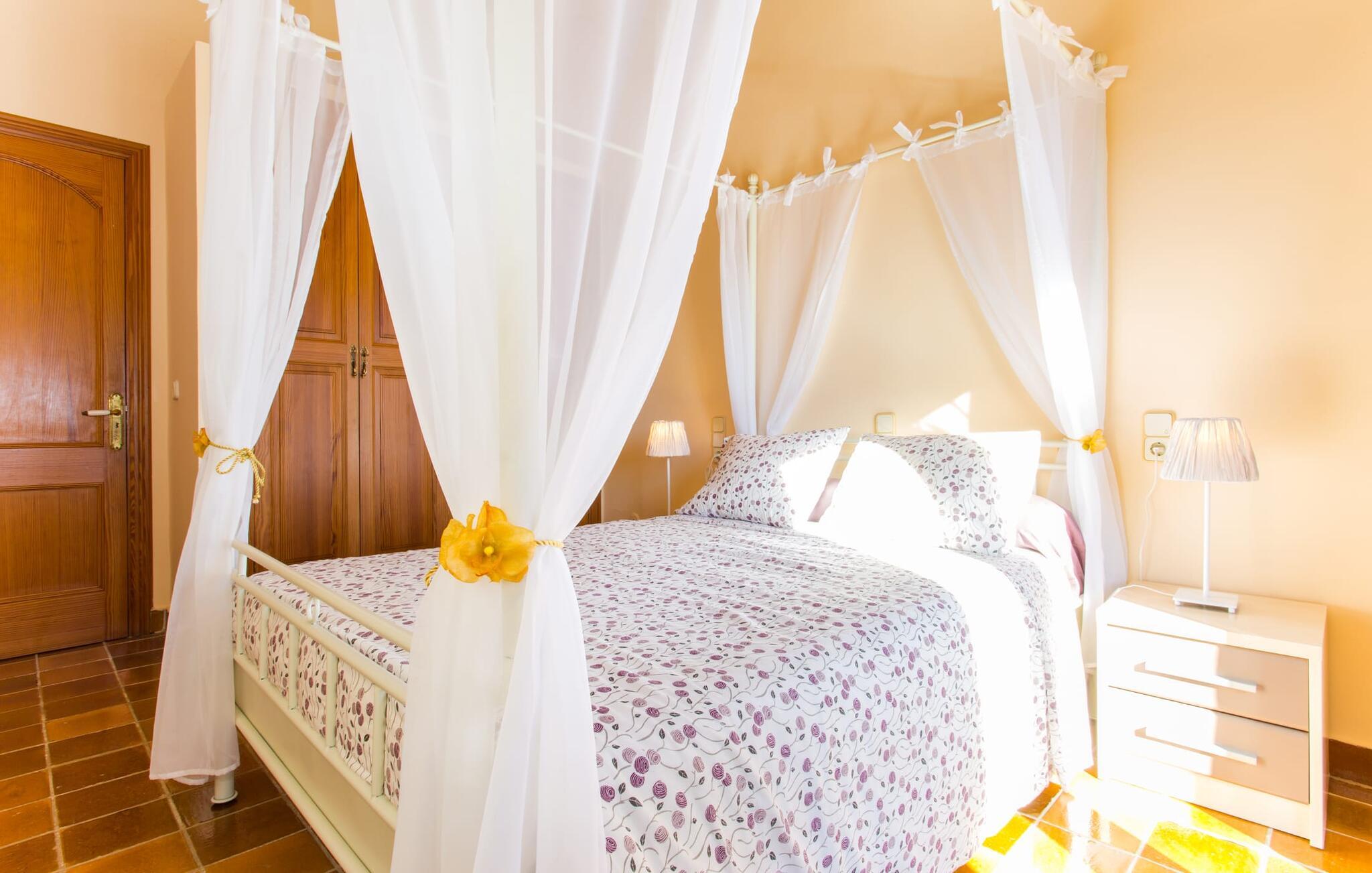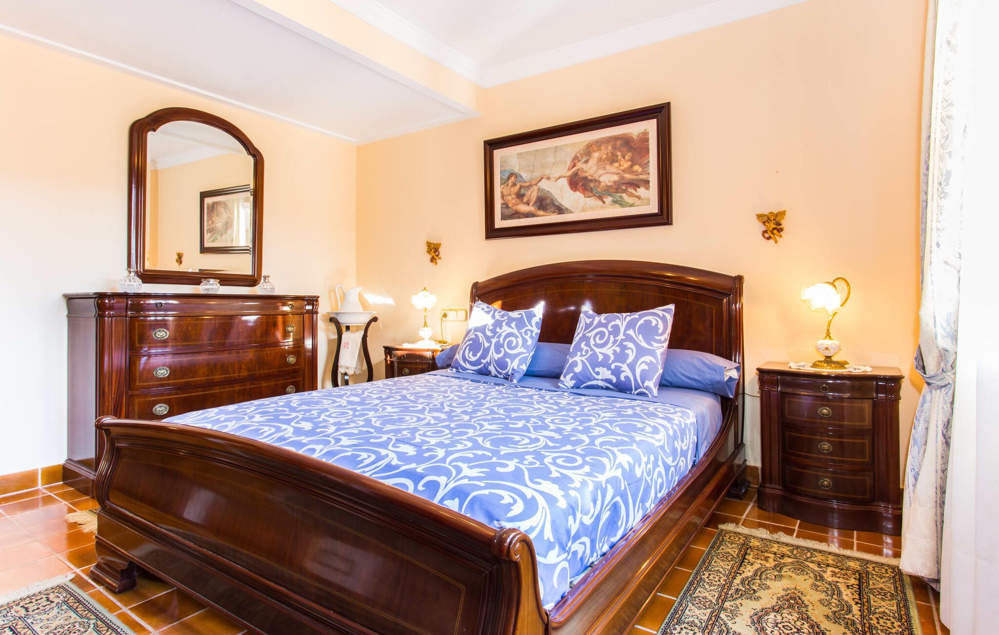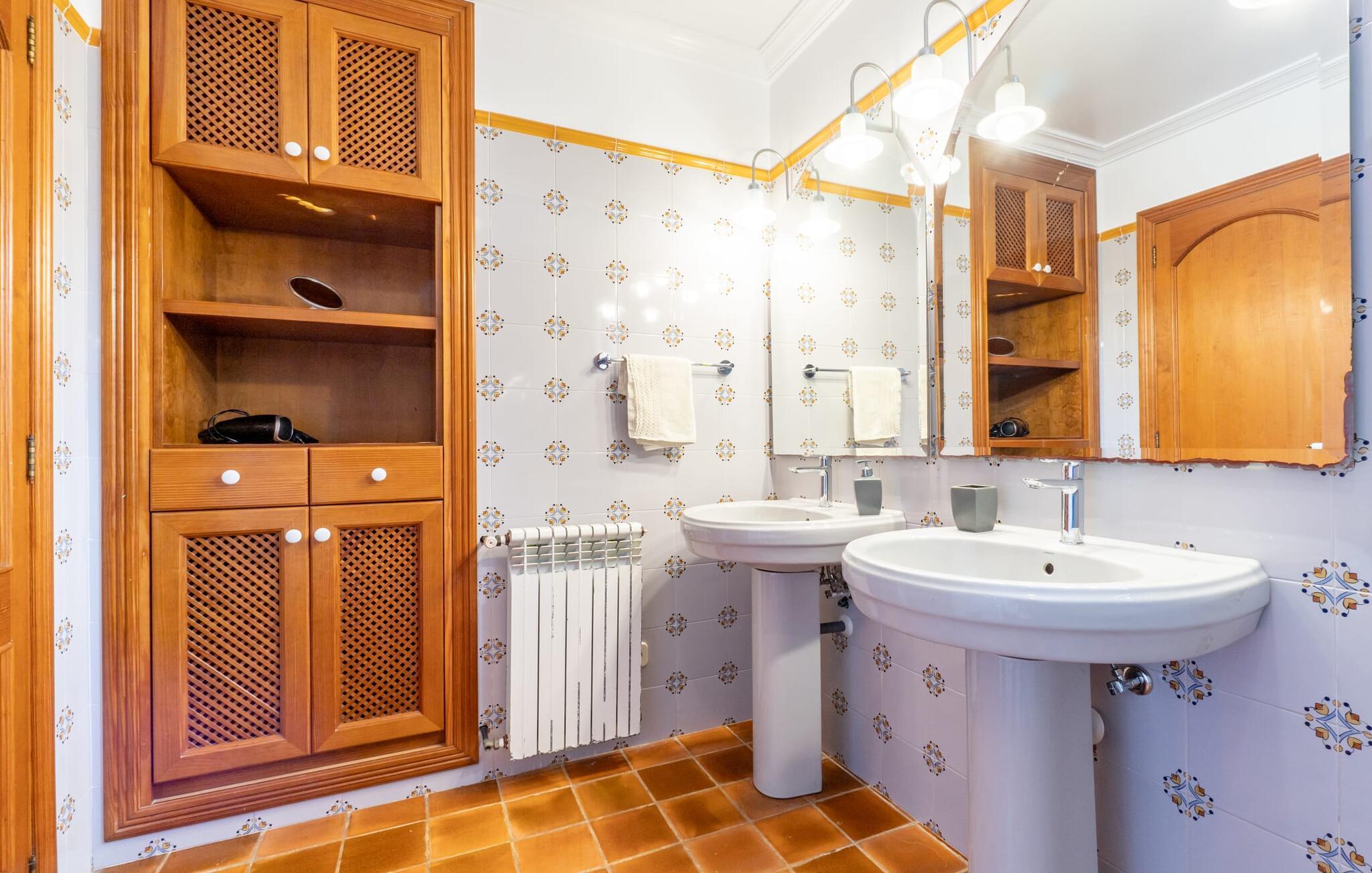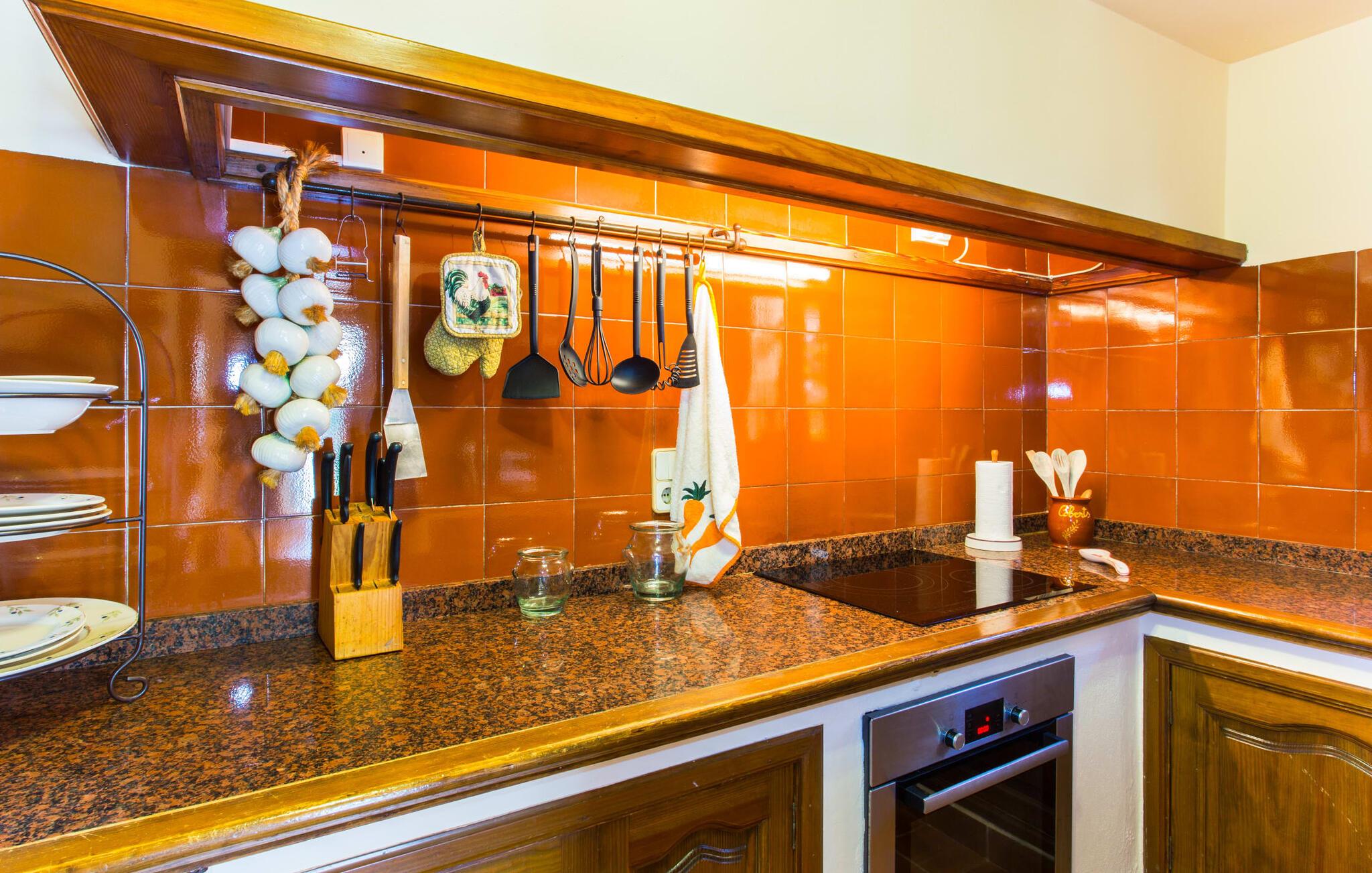 Fincaen "Es Fasser" ligger nær Costa de los Pinos i et roligt boligområde og tilbyder en privat ejendom med en rummelig have og et rummeligt hus. Det er omgivet af en hæk og tilbyder børn et trygt miljø. Udendørsområdet byder på velplejede græsplæner, middelhavsplanter og charmerende stier, der skaber en malerisk kulisse. En stor overdækket terrasse har udsigt til en rektangulær pool af varierende dybder, der er adgang til via en halvcirkelformet trappe. Slap af på komfortable liggestole og udendørsmøbler og nyd udendørs spisepladser med en muret grill og et ekstra køleskab til drinks. Indvendigt er villaen smagfuldt indrettet og har kombineret stue/spisestue med stort bord, hyggeligt sofahjørne med TV og pejs samt gulv til loft vinduer for naturligt lysindfald. Det veludstyrede køkken omfatter brødrister, blender og kaffemaskine. I stueetagen er der indbydende soveværelser og moderne badeværelser, mens den øverste etage byder på en ekstra stue og et lille bibliotek. Faciliteter som et strygejern og en hårtørrer giver ekstra bekvemmelighed. Den venlige finca "Es Fasser" ligger nær havet mellem Cala Bona og Costa de los Pinos. Cala Millor ligger kun 8 minutter væk i bil. Lokale markeder i Son Servera og Artà samt forskellige restauranter og barer i Port Verd, Costa de los Pinos og Cala Bona ligger inden for gåafstand. Port Vell-stranden er bekvemt placeret på den anden side af vejen, med lignende naturskønne muligheder ved Sa Marjal og Cala Bona. Valgfri brug af opvarmning er inkluderet, men brugen er begrænset til 7.00 til 10.00 og 19.00 til 23.