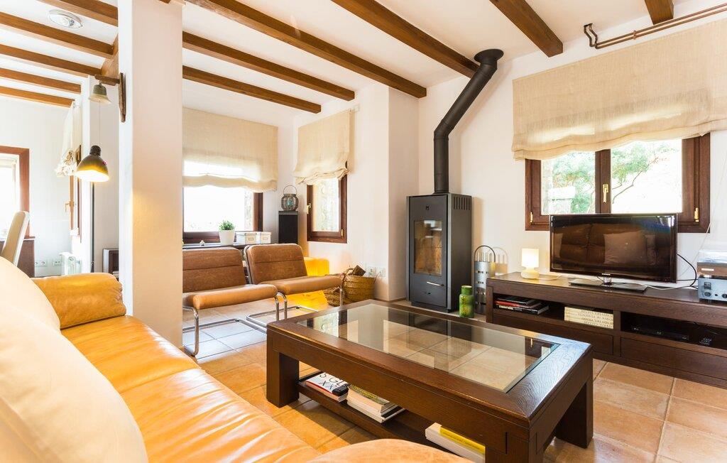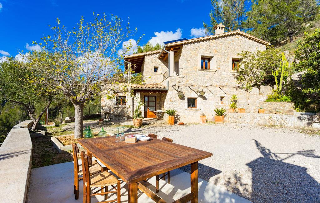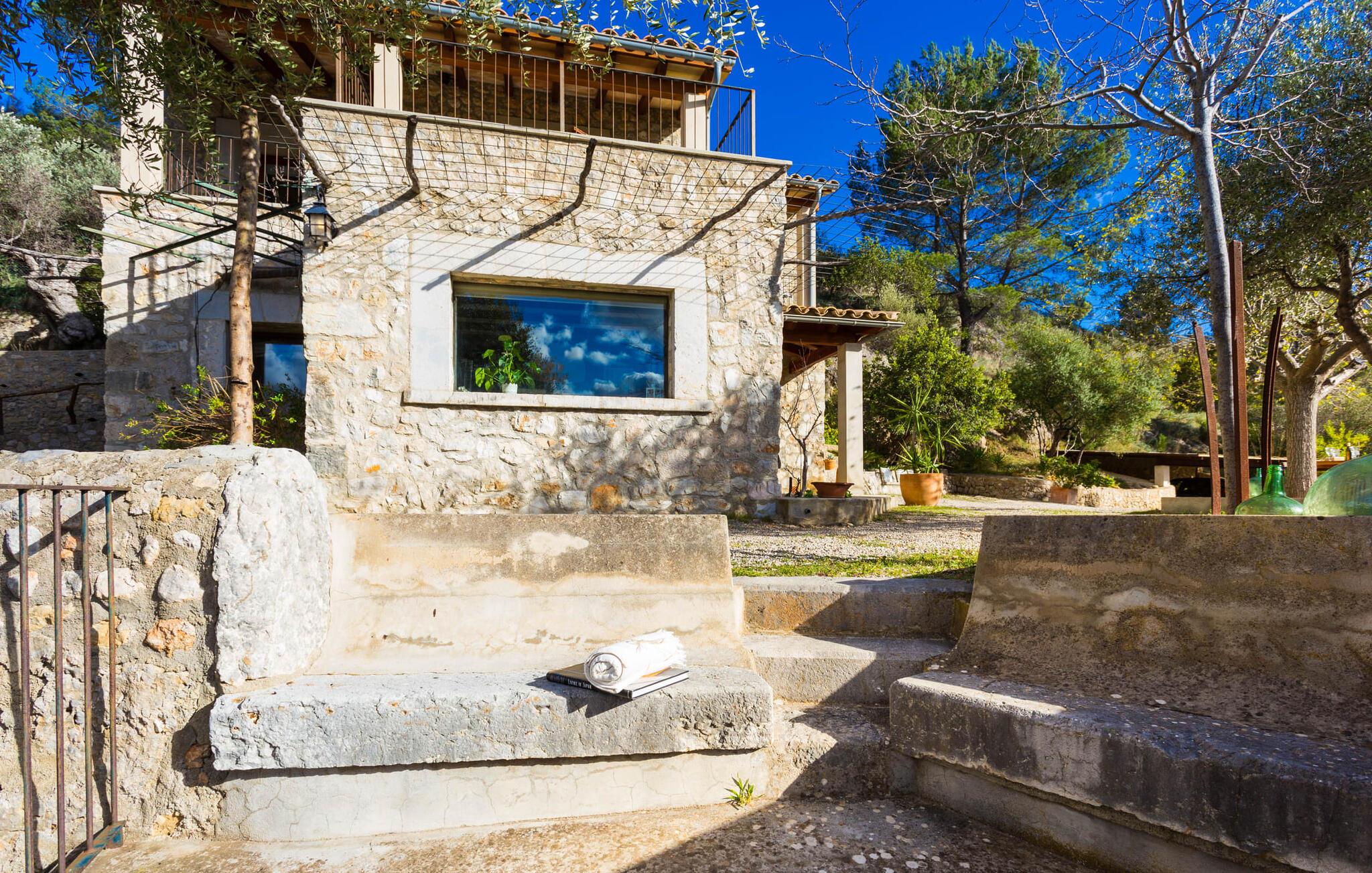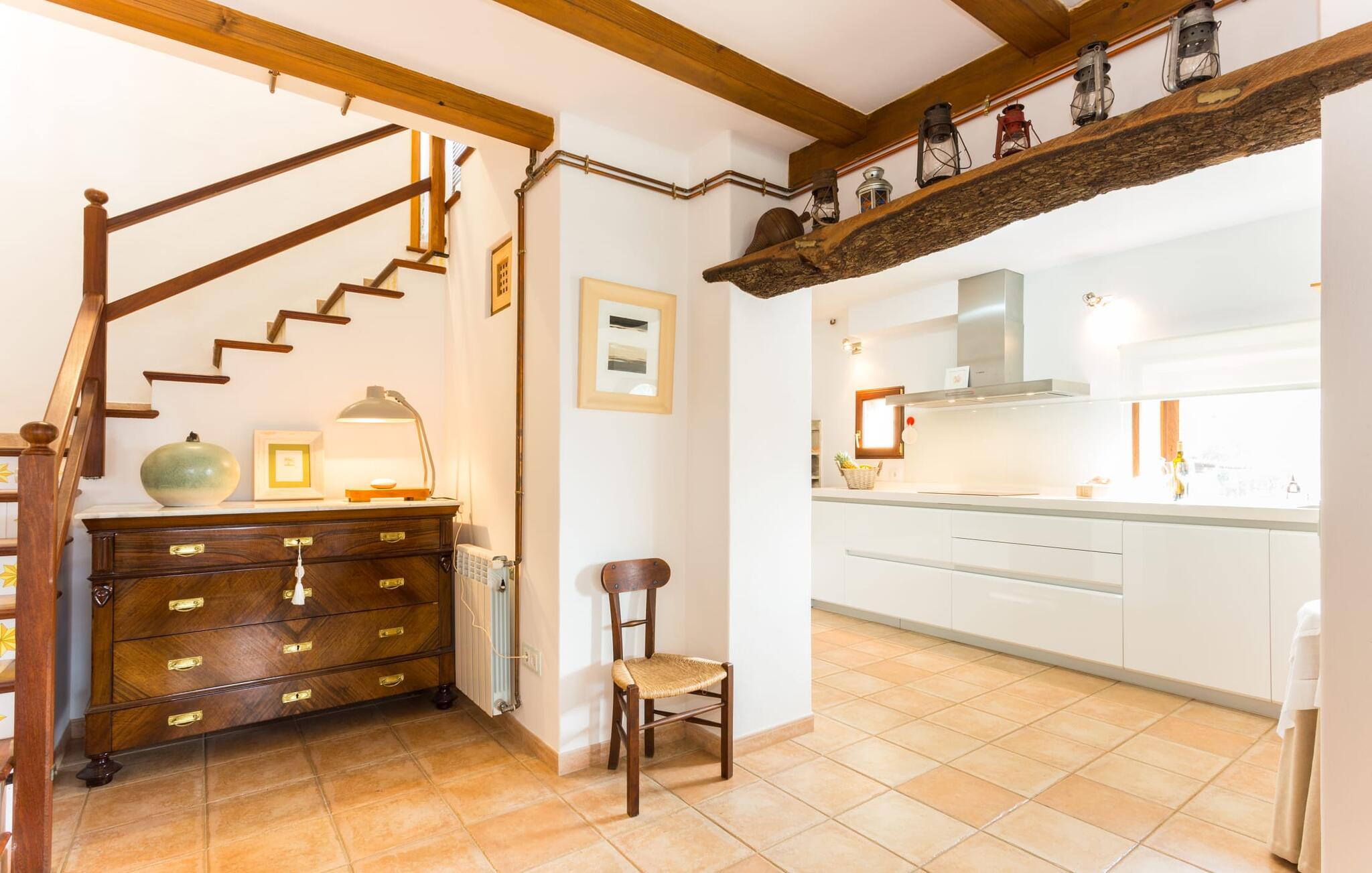 Den landlige villa "Es Guerol" med et lille stop for forfriskning er en speciel ejendom for familier, naturelskere og vandrere, der søger fred og ro. I kan næsten ikke bo et mere originalt sted end dette naturreservat på Mallorca. Den gamle villa blev nænsomt restaureret af sine ejere, som boede der i lang tid, uden at fjerne dens stemning, men med nye egenskaber som en lille pool midt på en træterrasse. Huset ligger på et bjerg, så I må forvente en stejl stigning og er bygget ind i bjerget, så I har en fantastisk panoramaudsigt over Tramuntana-bjergene fra terrassen og altanen. Hvis I ikke kan lade batterierne op her... Læn jer komfortabelt tilbage mod en varm murstensvæg, lad jeres øjne og tanker vandre i det fjerne fra jeres liggestole ved poolen, varm den rummelige grillplads op og sæt bordet ved siden af det gamle vindmølle – ren nydelse af naturen. Original på ydersiden, behagelig på indersiden! Dette er blevet renoveret og moderniseret med en masse kærlighed og god smag. Den dekorative natursten er altid en påmindelse om, at dette er en gammel villa med robuste vægge. Lige bag stuen, der er indrettet helt i jordfarver, fører en gang ind i det åbne, skinnende hvide køkken, som er udstyret med de nyeste hårde hvidevarer og masser af arbejdsplads. I kan hele tiden kigge ud af vinduet, mens I forbereder og laver mad. Den nærende pejs eller den knitrende ild vil give en hyggelig stemning – der kan trods alt blæse en kølig vind på et bjerg, så I trænger til lidt varme i huset. De tre soveværelser på øverste etage, hvoraf to har altanudgang og dermed panoramaudsigt, minder om en eremitage med hyggefaktor. Der er også to badeværelser, hvoraf det ene er i stueetagen. Betagende panorama, absolut fred, afsondret beliggenhed og sund bjergluft i et naturreservat: I kan nå den originale gourmetvilla "Es Guerol" fra læder- og vinbyen Inca via Ma-13 mod Selva og Mancor de la Vall (begge er ca. 10 minutter i bil fra villaen). Det sidste stykke kan være lidt stejlt til shopping på det ugentlige marked eller supermarked. I er dog helt afsondret i paradis. Havet er omkring 30 km væk i bil, så en dag på stranden kan helt sikkert indgå i jeres planlægning.