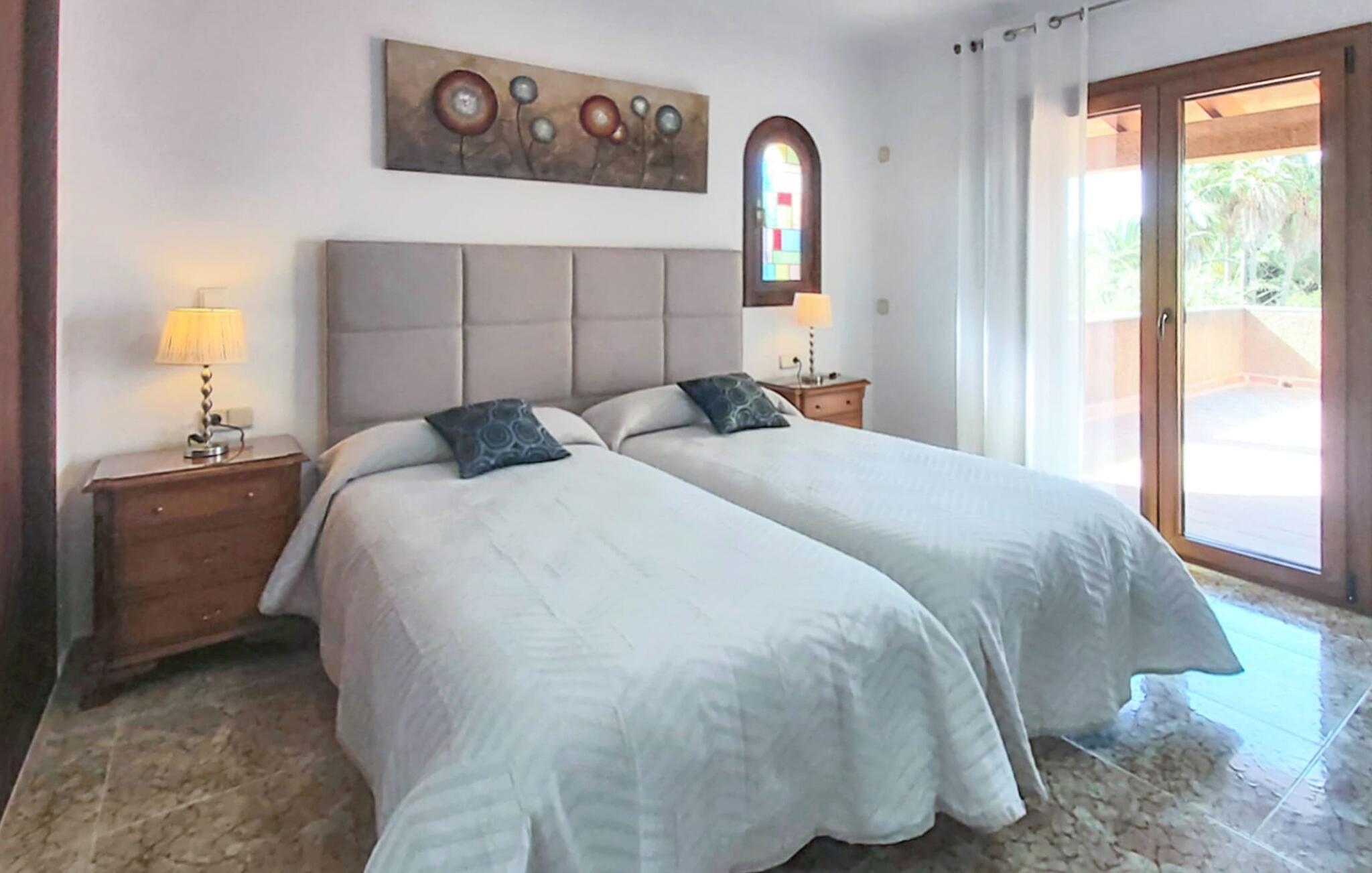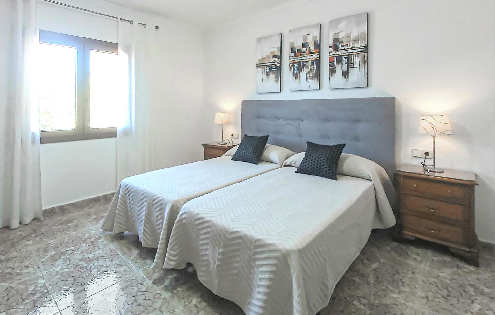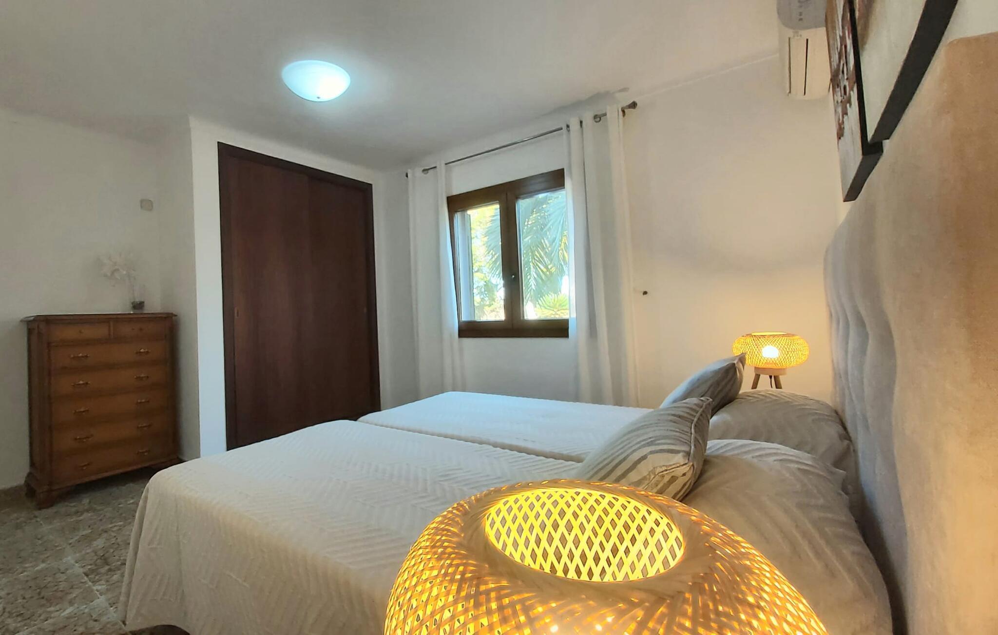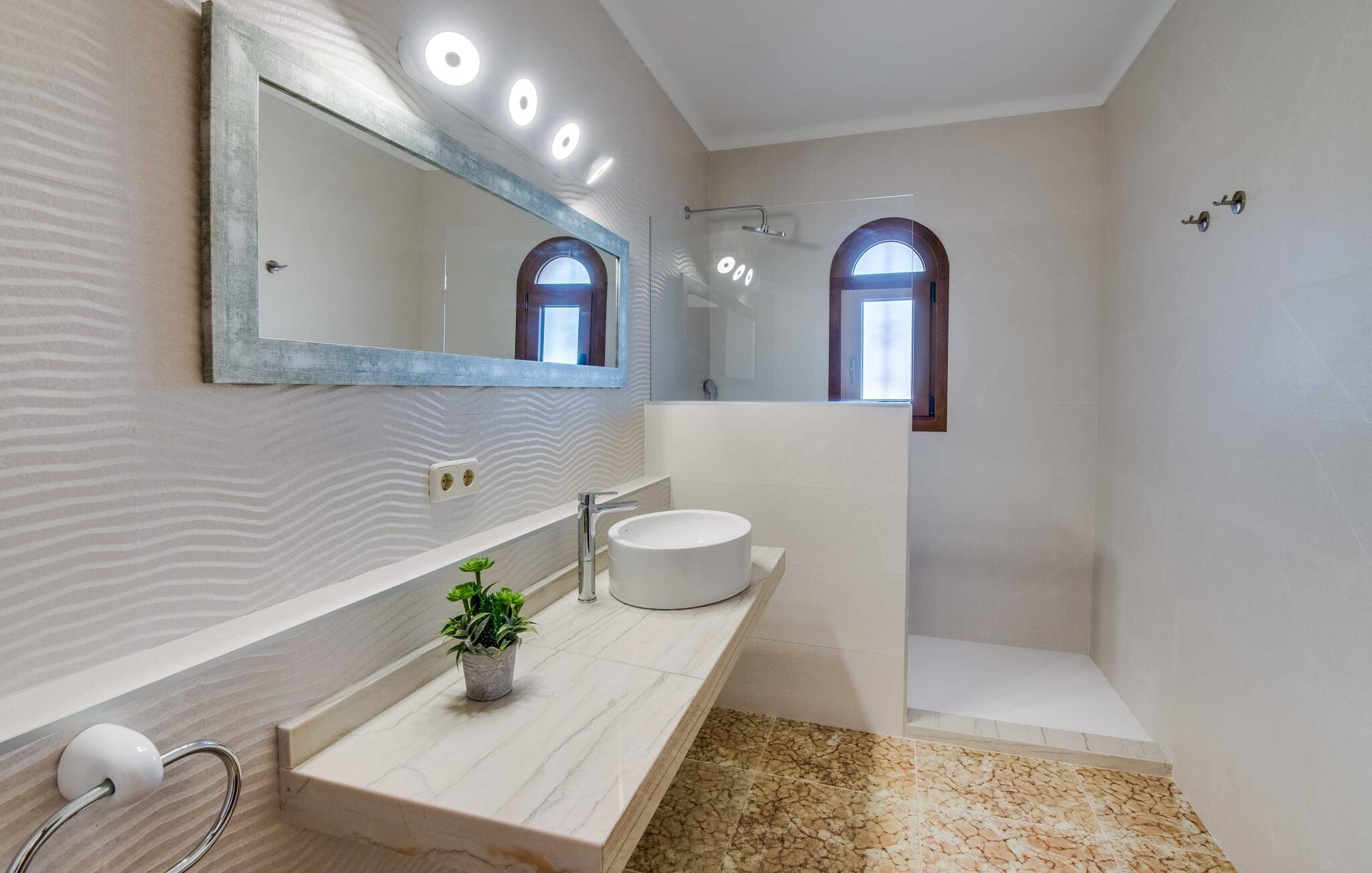 "Es Jardi" er catalansk og betyder "haven". Området dækker et areal på 15.000 m² og byder på masser af plads til at udvikle sig individuelt og nyde tiden under middelhavshimlen. Udendørsarealet er udover frodigt grønt med flere palmer særligt præget af et kæmpestort terrasseareal, der strækker sig rundt om den buede pool og bygningen, og hvis græsplæner harmonisk komplementerer billedet. Find det perfekte sted at slappe af, enten med direkte sollys eller dejligt blæsende i et af de skyggefulde områder. Den dekorative pool har en lavvandet trinindgang og er dekoreret med smukke mosaiksten. Komfortable liggestole inviterer jer til at slappe af, sætte jeres kølige drink på kanten af poolen og måske bare lave ingenting eller se børnene plaske rundt. Et rigtigt højdepunkt er det lidt adskilte udekøkken med rustikke siddepladser - et rigtig hyggeligt sted for en kulinarisk afslutning på dagen sammen. En række andre siddemuligheder giver masser af muligheder for at sidde komfortabelt udenfor. Solide møbler, rundbuer, lette vægge og lofter samt dekorative gulvfliser præger indretningen af dette klassiske bondehus, som holdes på den perfekte temperatur året rundt med varme og aircondition. Stuen kan trædes direkte ind fra terrassen og byder derfor på udsigt udenfor; den er også dejlig rummelig. En stilfuld spiseplads ligger lige ved siden af, ligesom det fuldt udstyrede køkken, hvorfra I også har direkte udgang til terrassen. Meget forskellige stilarter kan findes i soveværelserne, som er spredt ud over stueetagen og øverste etage - der er bestemt noget for enhver smag og en behagelig nattesøvn er garanteret. Fire badeværelser garanterer maksimalt privatliv, så I vil ikke føle jer trang i denne bondegård på Mallorca, selv når den er fuldt optaget. Et gæstetoilet er også placeret i stueetagen. Dette feriehus på Mallorca scorer med en rummelig have og poolområde, gode faciliteter og fremragende adgang til flere strande, for eksempel Cala Ferrera, Cala Gran, Cala d'Or. Takket være dens beliggenhed tæt på vejen, er I meget godt forbundet her. I den meget venlige, livlige landsby kan I shoppe eller slentre langs promenaden. Udvalget af andre badebugter er mangfoldigt og nemt at nå med lejebil. Brug af ejendommens aircondition er inkluderet i prisen, men brugen er begrænset til kl. 18.30 og kl. 22.00. Gebyret afregnes herefter kontant på stedet. Varmeudgifter er også inkluderet i prisen fra 07.00 til 09.00 og fra 18.00 til midnat, hvorefter de afregnes kontant på stedet.