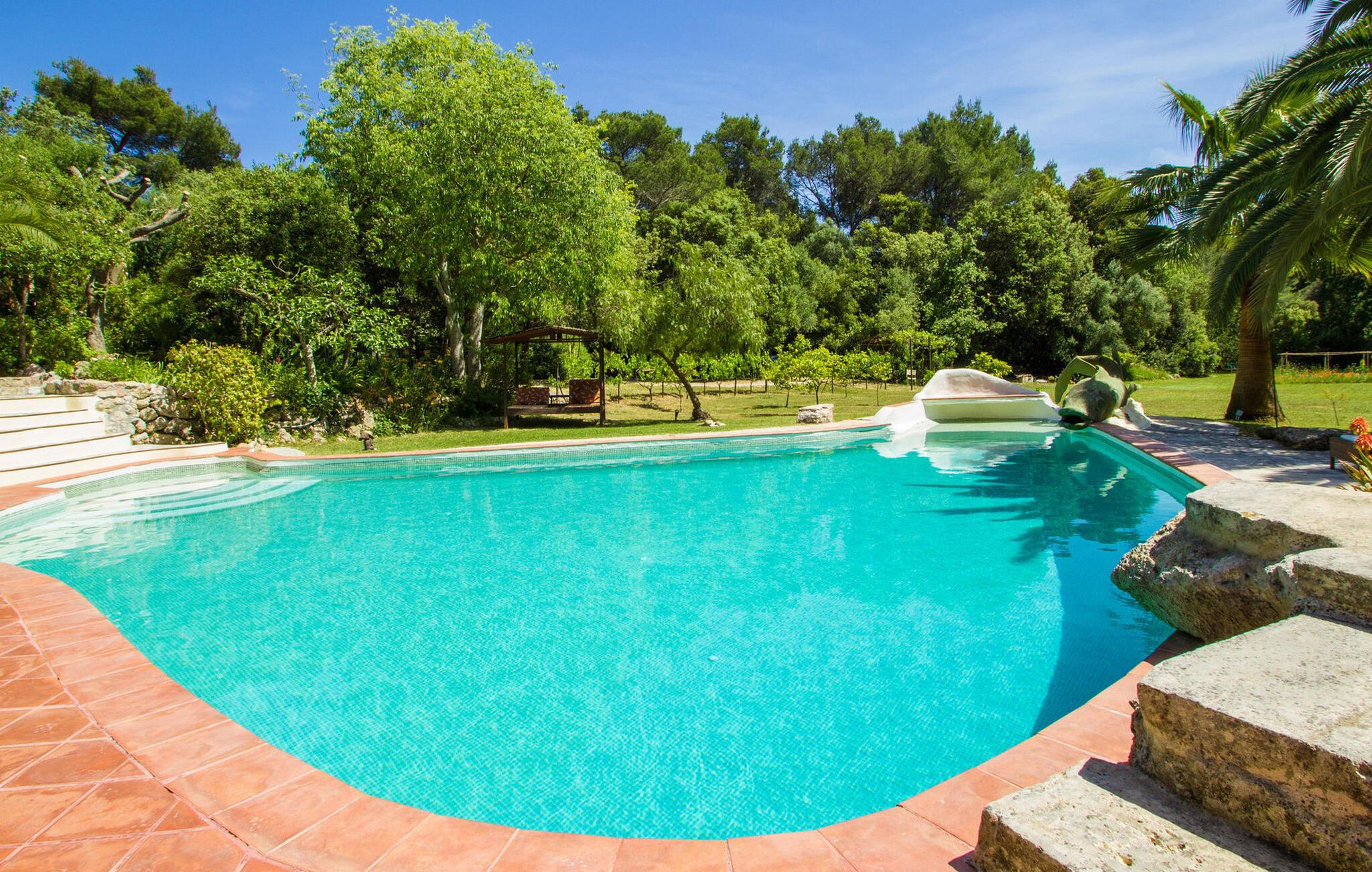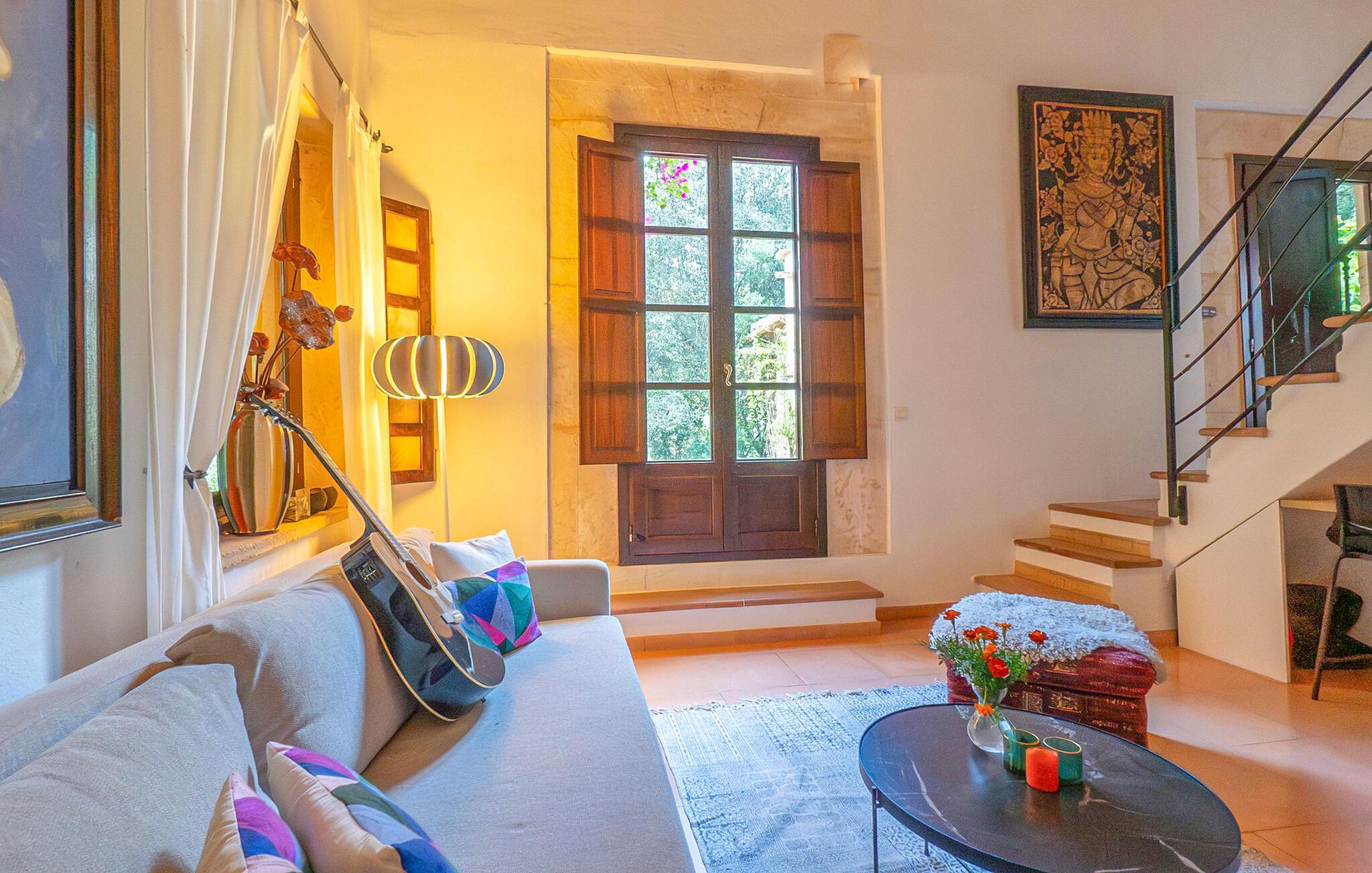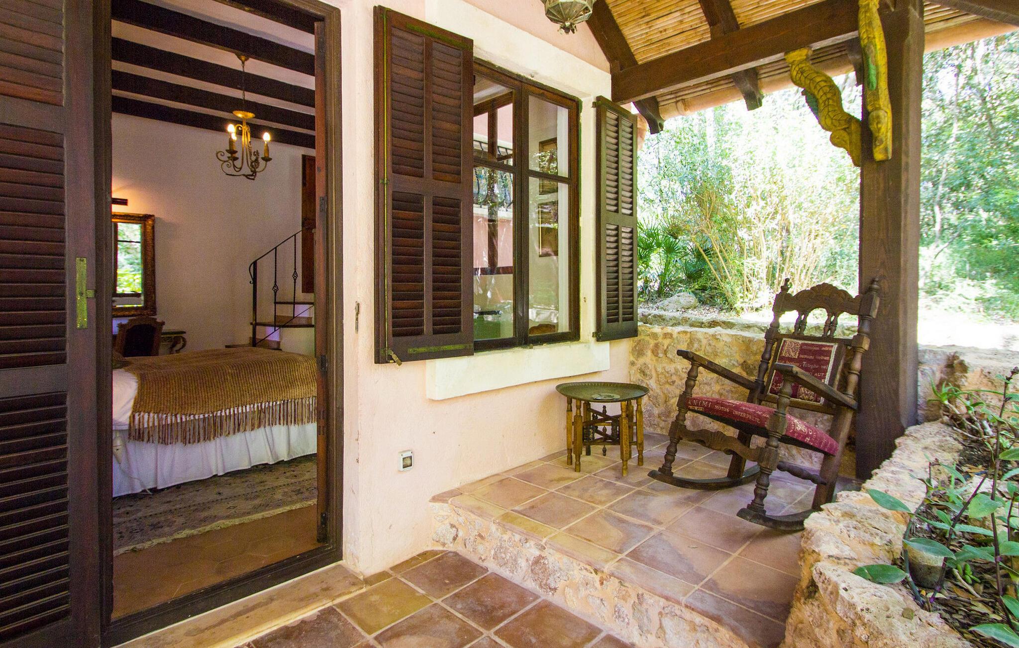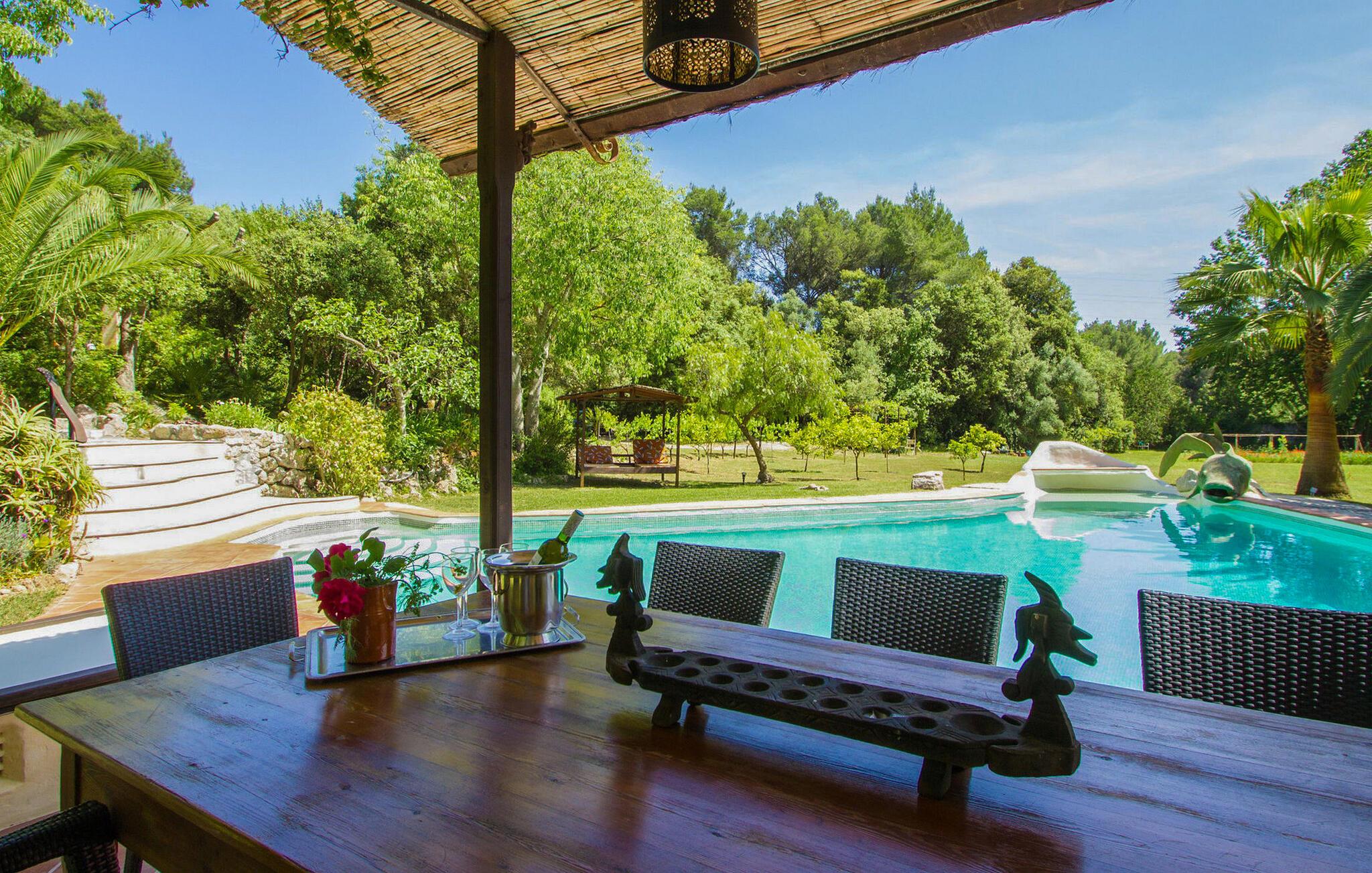 Finca Es Lloquet ligger i et afsides skovområde, omgivet af en frodig have fuld af palmer og en økologisk køkkenhave. Ekspansive græsplæner giver plads til børn at lege eller til yoga og meditation. XXL-poolen har trin, liggestole, en balinesisk liggestol og en udendørs bar giver et skyggefuldt spiseområde, mens familier kan nyde lejlighedsvise besøg af Victorias venlige hund. Husholdersken, der bor på den anden side af ejendommen, passer køkkenhaven og hjælper gæster, når det er nødvendigt.