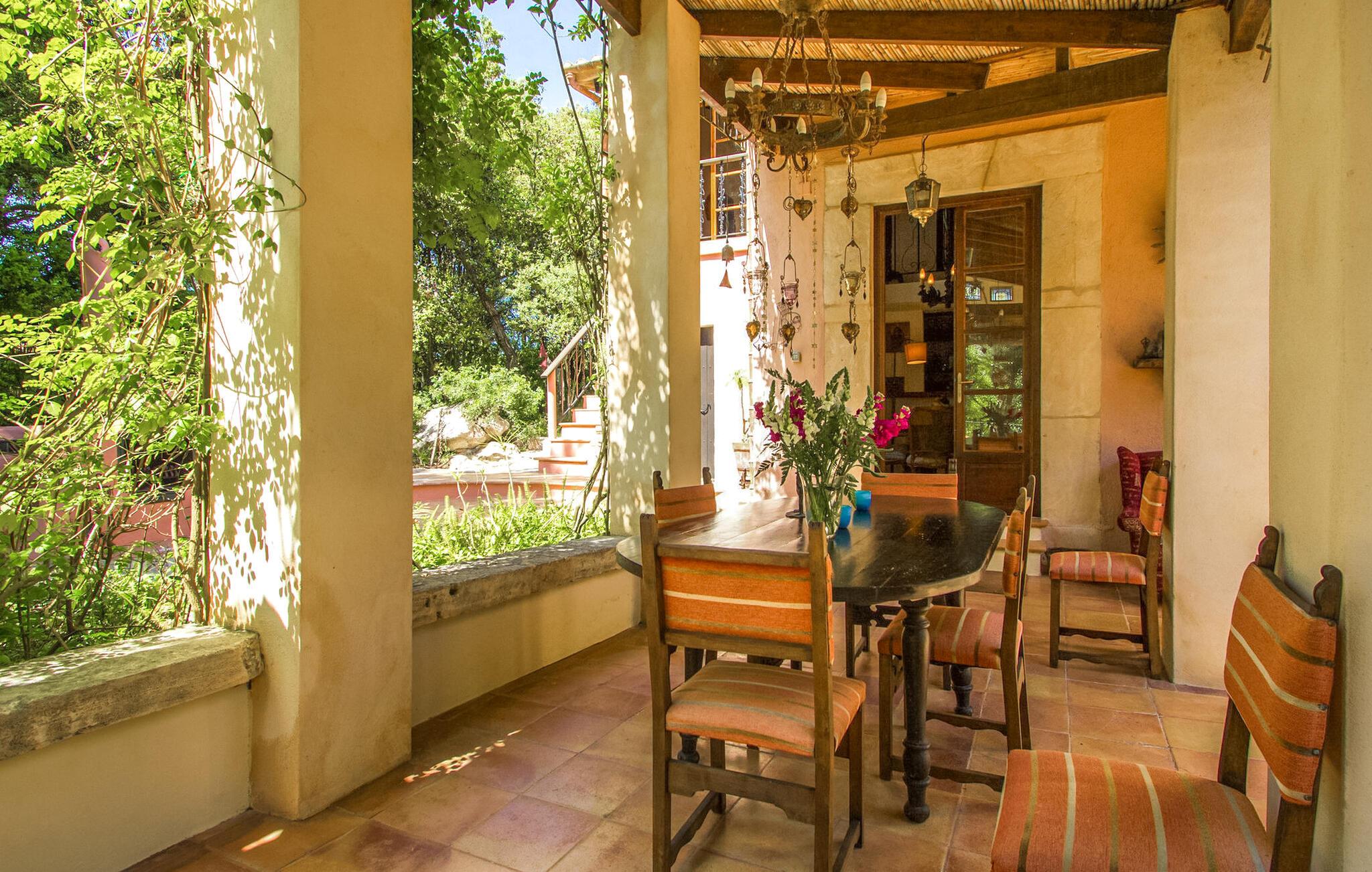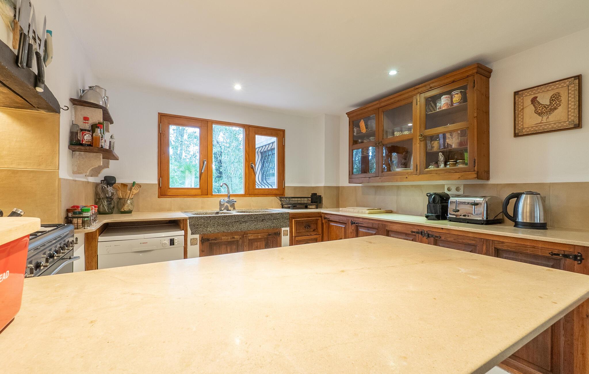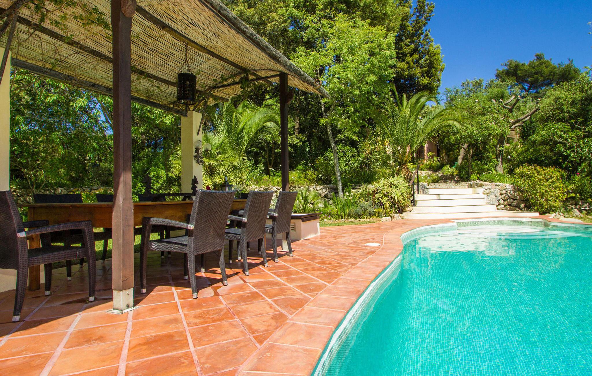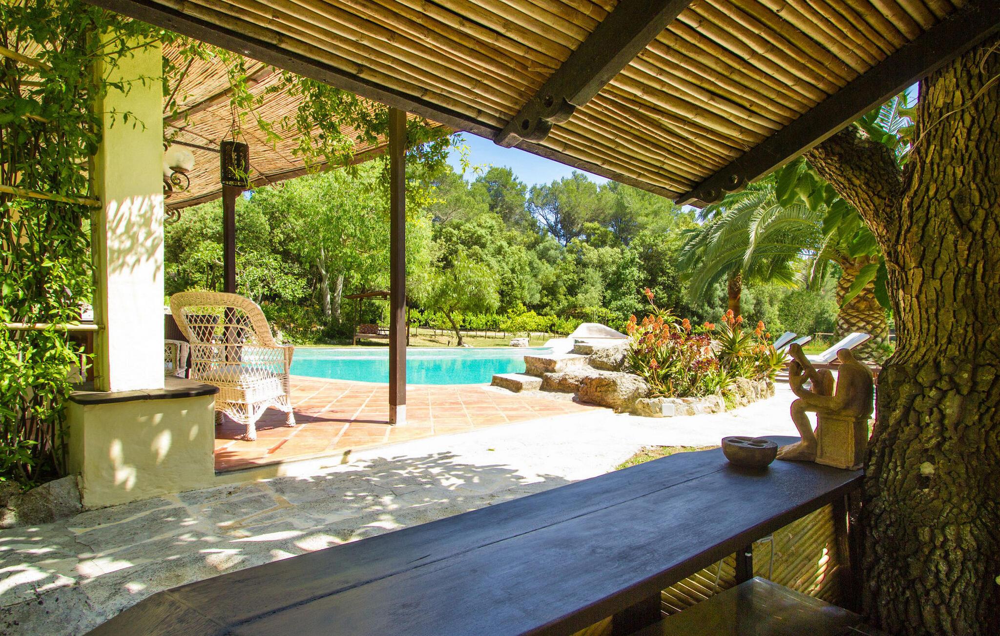 Finca Es Lloquet ligger i et afsides skovområde, omgivet af en frodig have fuld af palmer og en økologisk køkkenhave. Ekspansive græsplæner giver plads til børn at lege eller til yoga og meditation. XXL-poolen har trin, liggestole, en balinesisk liggestol og en udendørs bar giver et skyggefuldt spiseområde, mens familier kan nyde lejlighedsvise besøg af Victorias venlige hund. Husholdersken, der bor på den anden side af ejendommen, passer køkkenhaven og hjælper gæster, når det er nødvendigt.
