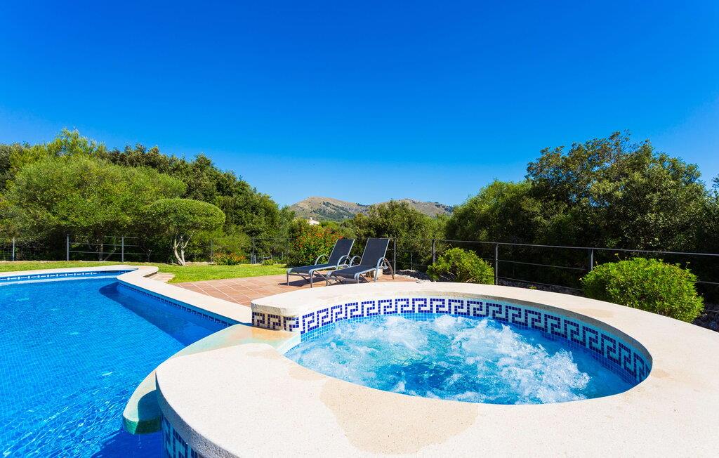 "Es Puchet" er en charmerende mallorcansk villa, der kan rumme op til fire gæster, men er også ideel for par, der leder efter et roligt tilflugtssted. Denne ejendom er beliggende for enden af en stille gade på en lille bakke og tilbyder en betagende udsigt over den frodige omkringliggende bakker og fuldstændig afsondrethed Udendørsområdet inviterer jer til at slappe af, læse eller grille på varme sommeraftener byder på en smukt designet pool med bugtet mønster, der tilbyder en forfriskende flugt på varme dage, samt et integreret spabad til ultimativ afslapning. Villaens interiør er moderne og praktisk med lyse vægge, synlige bjælkelofter og trævinduer, der forbedrer. dens hjemlige stemning. Det åbne opholdsområde omfatter et fuldt udstyret køkken med moderne apparater, et spisebord og en hyggelig stue med satellit-tv og pejs. De to venlige soveværelser, hver med to enkeltsenge, sikrer en afslappende søvn. Badeværelset præsenterer et typisk spansk design med moderne møbler. Med centralvarme er "Es Puchet" perfekt til helårsophold Den lille hyggelige stenvilla "Es Puchet" ligger yderst stille og alene på en lille bakke omkring tre kilometer vest for Artà, midt i vild, romantisk natur. . Cypresser, mandel-, baobab- og oliventræer præger det blide bakkelandskab. Den smukke, naturlige sandstrand i Cala Torta kan nås i bil på cirka 20 minutter. Samtidig kommer I også til den betagende havnelandsby Cala Ratjada.