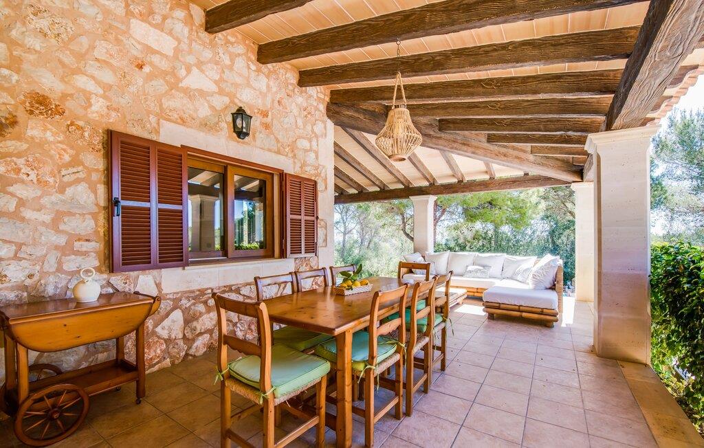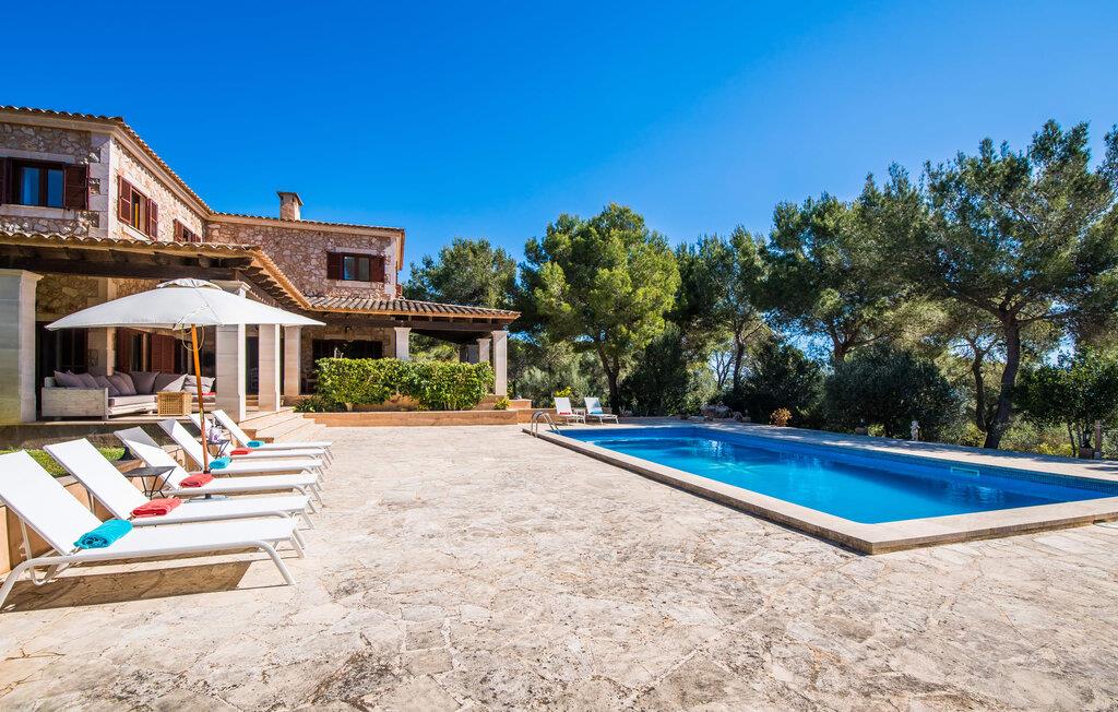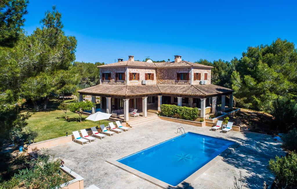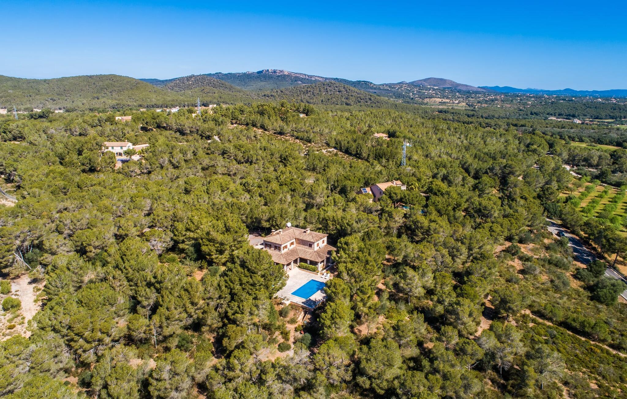 Den stilfulde "Es Puig de Portocolom" lover et roligt tilflugtssted omgivet af natur, der tilbyder fuldstændig privatliv og mulighed for større forsamlinger. Denne vidtstrakte ejendom, beliggende i en frodig fyrreskov, består af flere rummelige villaer, hver med sin egen indgang og parkeringsplads, der tilbyder masser af plads til gæster og udlejningsbiler. Den to-etagers villa har en omsluttende terrasse med komfortable loungeområder, herunder plyspuder, kurvestole og bambus-accenter. Poolområdet, omgivet af rattan-solsenge, tilbyder det perfekte sted at slappe af omgivet af natur. For mere privatliv kan I trække jer tilbage til et roligt hjørne af haven, hvor et gammelt oliventræ giver skygge og fred. Indvendigt har villaen et lyst, skandinavisk-inspireret design med opholdsarealer i åbent plan. I stueetagen er der en rummelig opholdsstue med pejs, fladskærms-tv og spiseplads. Det separate køkken er veludstyret til store grupper, med lange bordplader og nem adgang til terrassen. Et gæstesoveværelse i stueetagen giver ekstra komfort. Ovenpå byder to soveværelser på masser af plads og deler badeværelse, mens det tredje soveværelse har en stor 1,80 cm bred seng og eget badeværelse. Mellem Portocolom på kysten og Felanitx i hjertet af øen tilbyder "Es Puig de Portocolom" afslapning i naturen og det højeste niveau af privatliv. Det er kun 6 km til calas på den sydøstlige kyst, et par minutter i bil til Vall d'Or golfbanen og kun en halv time til Toscana Mallorcas omkring Santanyí. Butikker, caféer og restauranter findes overalt i området. For større indkøbsture kan I tage til Manacor.