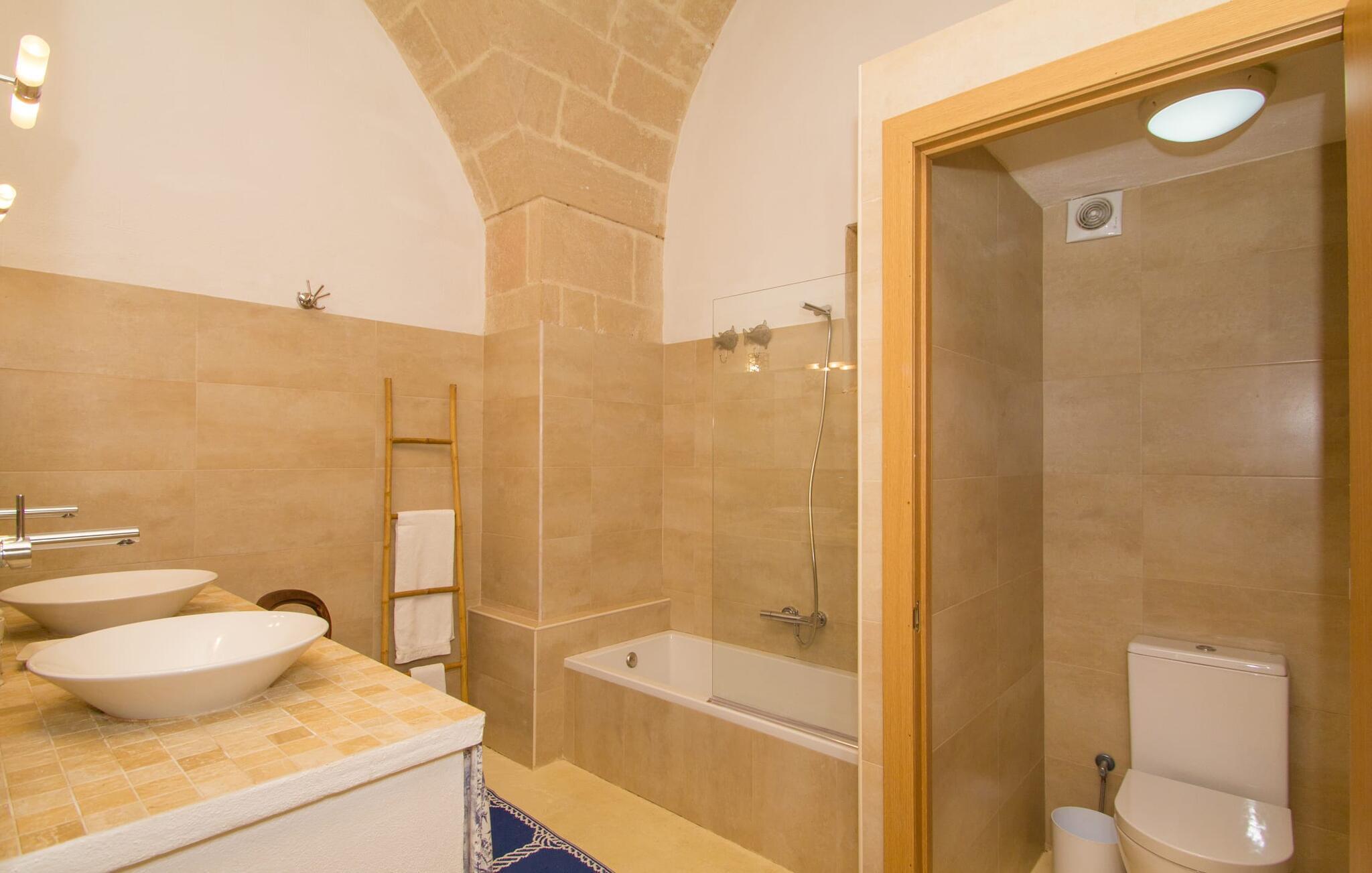 "Es Pujol Ametlera" tilbyder en unik oplevelse med sin blanding af komfort og originalitet. Beliggende i det betagende landskab på det sydlige Mallorca, tæt på kysten, ligger dette elegant designede tilflugtssted. Dette er et feriehus i Fincallorca. Det er omgivet af en smukt anlagt have og kombinerer charmen fra en traditionel mallorcansk agroturismo med et hotels bekvemmeligheder, hvilket gør det til et ideelt valg for dem, der leder efter fred og ro uden at ofre komfort. Udeområdet har forskellige siddepladser til afslapning samt legeplads og aktiviteter for børn. Den fælles pool, der er åben fra maj til oktober, er perfekt til svømning, mens panoramaterrassen med liggestole tilbyder et fredeligt sted at slappe af. En møbleret udendørs spiseplads er ideel til spisning under åben himmel. Indvendigt kombinerer hytten rustik charme med moderne stil med buer, lyse vægge og antikke accenter. Det store, åbne, airconditionerede opholds-, spise- og soveområde har et moderne badeværelse, der er ideelt for par. Dette er en af otte ejendomme på ejendommen, herunder "Es Pujol Alejandra", "Es Pujol Pedrito", "Es Pujol Paissa", "Es Pujol Carlota", "Es Pujol Botiga", "Es Pujol Cas Amitger" og "Es Pujol Peladora", som kan bookes via vores hjemmeside. Denne ejendom har en rolig beliggenhed tæt på stranden i Cala d'Or, som ligger 15 minutters kørsel derfra. Nyd havnepromenaden, butikker, barer og restauranter eller tilbring en sjov dag på stranden i byens bugt. Calonge (3,5 km) og S'Alqueria Blanca (2,6 km) er ideelle til daglige indkøb, mens Santanyi, kun 8 km væk, byder på adskillige shoppingmuligheder, nattelivsmuligheder og restauranter.