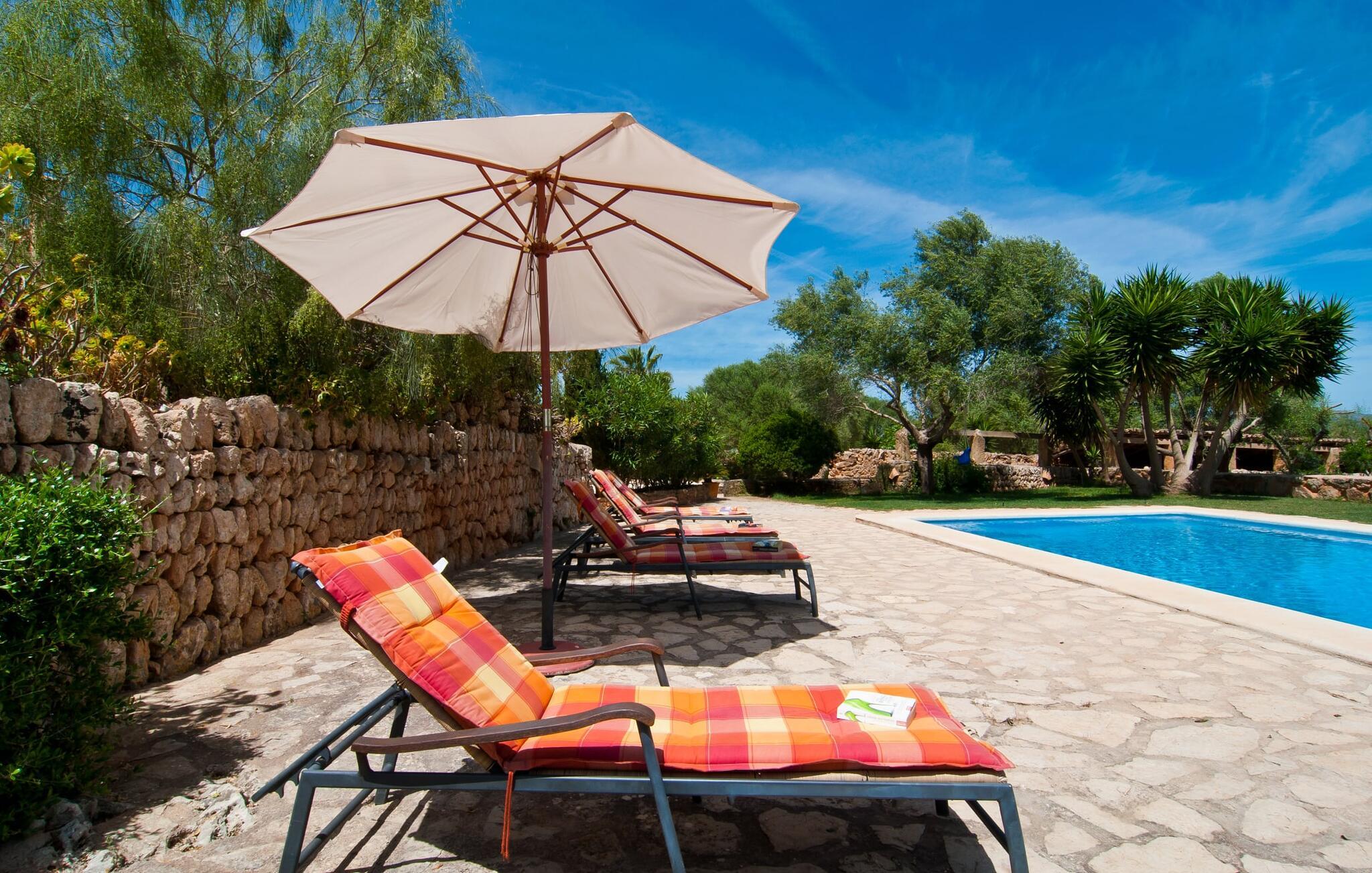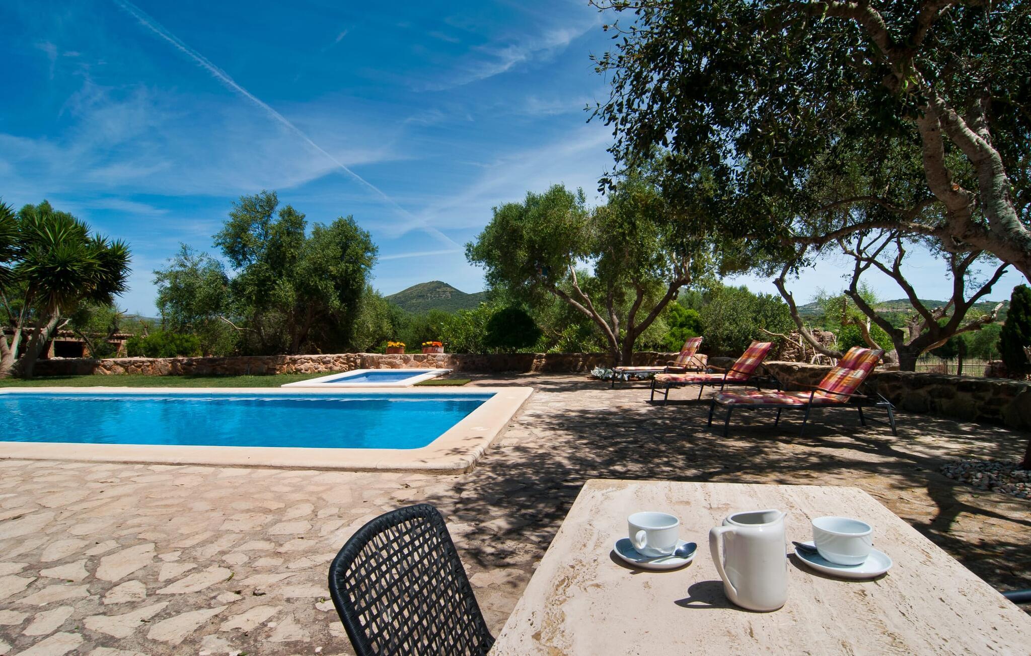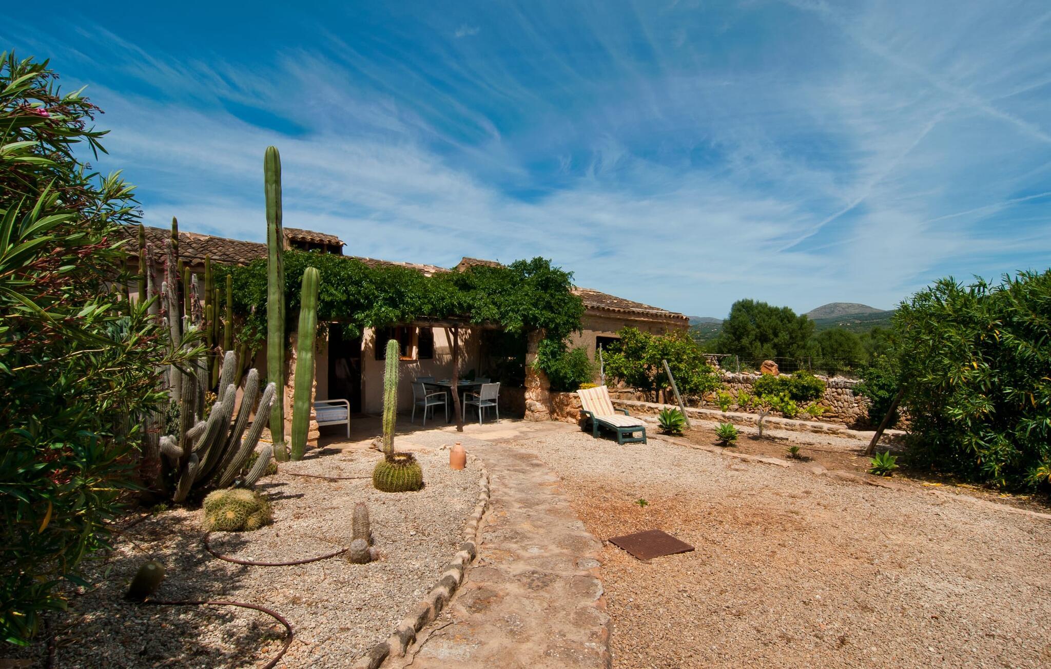 Historisk ejendom på rød jord, dyreelskende gård, idyllisk mandelvilla, komfortabel og hyggelig agriturisme indkvartering; Det er tydeligt, at disse beskrivelser gælder for den røde gård "Es Rafal Roig" med hovedhuset i natursten og tre små udhuse. Der er hele 350.000 m² af blomster og grønt at udforske, med masser af detaljer, der vil glæde både unge og gamle. Der er hyggekroge omgivet af kaktusser, palmer, duftende oleander og utallige plantede terracotta-krukker, vand fra sin egen dybe brønd og solenergi, samt marsvin, æsler, høns, gæs og skildpadder, der lever på deres eget territorium. Mens de voksne slapper af ved det 10m lange, centralt beliggende bassin, kan de små plaske rundt i deres eget bassin bag stenmuren, som er perfekt synlig fra liggestolene. Legepladser med store og små rutsjebaner, sandkasser og udstyr til alle former for boldspil sørger for, at I ikke keder jer, og I kan også se arbejdet på gården. Og stole og borde er spredt rundt på solrige og skyggefulde steder, hvor gæsterne kan tage en picnic eller chatte. Det lille grillhus, det originale fra gammel tid, kan bruges hver dag og deler plads med udetoilet og bad. Hvert sommerhus har sin egen charme. Den 45 m² store "Es Arc" skylder sit navn til den karakteristiske bue, der dekorativt afgrænser boligarealet. Interiøret er dejligt hyggeligt mellem stue/spisestue og soveværelse, mens der er to terrasser udenfor: I kan vælge mellem sydøst og nordvest! Efter intensive vandreture og tid i den friske luft kan I slappe af indendørs, enten på sofaen eller i sengen på 1,5 x 2 m, der strækker sig til den anden side. I kan nemt tilberede et lille måltid på det dobbelte gaskomfur i tekøkkenet ved siden af entréen. Badeværelset, der også er designet i mallorcansk stil, byder på naturligt lys og en brusebakke. Og hvis boligarealet i jeres private hjem ikke er nok for jer, så overvej at forvandle hele ejendommen til jeres blomstrende udendørs ophold, spisestue og legerum. Hvad ville Mallorca være uden mandelblomsterne om foråret og uden den berømte mandelkage! Es Rafal Roig er det perfekte sted at opleve begge dele, måske vil ejerne bage en familieopskrift til jer på et tidspunkt. Men også uden for Almendrasæsonen er der talrige muligheder for at opleve og smage på øens specialiteter og delikatesser. Manacors historiske bymidte er ikke langt i bil (med Ma-3322 nær villaen) for at tage en tur gennem gågaden eller det farverige marked. Herfra kan I også nemt rejse til Palma med bus eller tog. På den anden side, godt 15 km væk, venter strandene. Lokalbefolkningen kan lide Son Serra de Marina, den roligste del af Alcúdia-bugten. Det næsten to kilometer lange sandområde mod Colònia de Sant Pere byder på nok solrige steder til alle, og gunstige vinde gør det muligt for surfere at ride blidt på bølgerne. Vandrere kan på den anden side klatre omkring 5 km fra Betlem til Ermita og nyde udsigten over havet. Dette lokale feriehus er en af ni lejeboliger på ejendommen. De hedder “Es Blau”, “Es Verd”, “Es Graner”, “Es Galiner”, “Es Cestador”, “Es Nord”, “Es Nou” og “Es Saboal” – alle kan bookes hos Fincallorca. En bondegårdsferie med komfort. Denne historiske, ejerledede agriturismeejendom med sine syv lejligheder med egen forplejning og to gæstehuse er særdeles familievenlig. Det har generøse fællesfaciliteter og en børnezoo. "Es Rafal Roig" er en ægte mallorcansk skønhed fra det 12. århundrede, med udsigt over bakkerne i Serra de Llevant. Manacor med sit daglige frugt- og grøntsagsmarked ligger kun 9 km væk. Det er ideelt til store shoppingture, sightseeing og spisning. Fantastiske strande og badeområder, også for de mindste, kan findes på Badia d'Alcúdia i retning mod Son Serra de Marina og Colònia de Sant Pere.