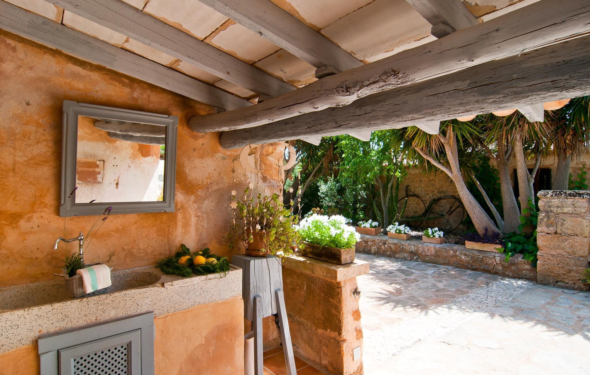 Historisk ejendom på rød jord, dyreelskende gård, idyllisk mandeltræsvilla, komfortabel og hyggelig agroturismo-indkvartering: det er tydeligt, at disse beskrivelser gælder for den røde gård "Es Rafal Roig" med hovedhuset lavet af natursten og tre små udhuse . Der er hele 350.000 m² frodige blomster- og grønne områder at opdage, med masser af detaljer, der vil glæde både unge og gamle. Der er hyggekroge omgivet af kaktusser, palmer, duftende oleander og utallige plantede terracottakrukker, vand fra gårdens egen dybe brønd, solenergi og marsvin, æsler, høns, gæs og skildpadder lever på deres eget territorium. Mens de voksne slapper af i den 10 m lange, centralt beliggende pool, kan de små plaske rundt i deres eget bassin bag stenmuren, som man kan holde øje med fra liggestolene. Legepladser med store og små rutsjebaner, sandkasser og udstyr til alle former for boldspil sikrer, at du ikke keder dig og du kan også se landbruget. Stole og borde er spredt rundt på solrige og skyggefulde steder, hvor gæsterne kan holde en picnic eller chatte. Det lille grillhus, et originalt fra oldtiden, kan bruges hver dag og deler pladsen med udetoilet og bruser. Dette er et Fincallorca feriehus. Hver enhed har sin egen charme. Den knap 40 m² store lejlighed “Es Graner”, hvor funktionalitet og farverig komfort kommer i højsædet, ligger på øverste etage og har en rummelig tagterrasse med en sensationelt smuk udsigt, som du har helt for dig selv. Der blev engang opbevaret korn heroppe, hvorfra navnet "Graner" kommer. Stuen med det typiske mallorcanske træbjælkeloft og naturstenselementer er det perfekte sted at slappe af efter intensive timer udendørs i solen. Og du kan nemt tilberede en velsmagende snack på det dobbelte gaskomfur i det integrerede tekøkken. I soveværelset inviterer to enkeltsenge, der ligger ved siden af hinanden, til at blive hængende, og der er også plads til en babyseng, hvis det ønskes. Badeværelset, der også er designet i mallorcansk stil, byder på naturligt lys og en brusebakke. Og hvis boligarealet i dit private hjem ikke er nok for dig, så overvej at forvandle hele ejendommen til dit blomstrende udendørs ophold, spisestue og legerum. Hvad ville Mallorca være uden mandelblomsterne om foråret og uden den berømte mandelkage? "Es Rafal Roig" er det perfekte sted at opleve begge dele, måske vil ejerne bage noget til dig efter deres familieopskrift. Men også uden for Almendrasæsonen er der talrige muligheder for at opleve og smage på øens specialiteter og delikatesser. I bil (med Ma-3322 i nærheden af villaen) er det ikke langt at nå Manacors historiske centrum, gå en tur gennem gågaden eller det farverige marked. Herfra kan du også tage en stressfri bus eller tog til Palma. På den anden side, godt 15 km væk, venter strandene. Lokalbefolkningen kan lide Son Serra de Marina, det roligste sted i hele Alcúdia-bugten. Det næsten to kilometer lange sandområde mod Colònia de Sant Pere byder på nok solrige steder til alle, og gunstige vinde gør det muligt for surfere at ride blidt på bølgerne. Vandrere kan på den anden side klatre omkring 5 km fra Betlem til Ermita og nyde udsigten over havet. "Es Graner" kan være hvor som helst ... Dette lokale feriehus er en af ni lejeboliger på ejendommen. De hedder “Es Blau”, “Es Verd”, “Es Galiner”, “Es Arc”, “Es Cestador”, “Es Nord”, “Es Nou” og “Es Saboal” og kan alle bookes hos Fincallorca. Bondegårdsferie med komfort. Denne historiske, ejerledede agroturismo-ejendom med sine syv lejligheder med egen forplejning og to gæstecasitas er særdeles familievenlig. Det har et rummeligt fællesområde og en børnezoo. "Es Rafal Roig" er en ægte mallorcaner fra det 12. århundrede, med udsigt over bakkerne i Serra de Llevant. Manacor med sit daglige frugt- og grøntsagsmarked ligger kun 9 km væk. Det er ideelt til større shoppingture, sightseeingture og spisning. På Badia d'Alcúdia mod Son Serra de Marina og Colònia de Sant Pere finder du smukke strande og badeområder, også nogle for de mindste.
