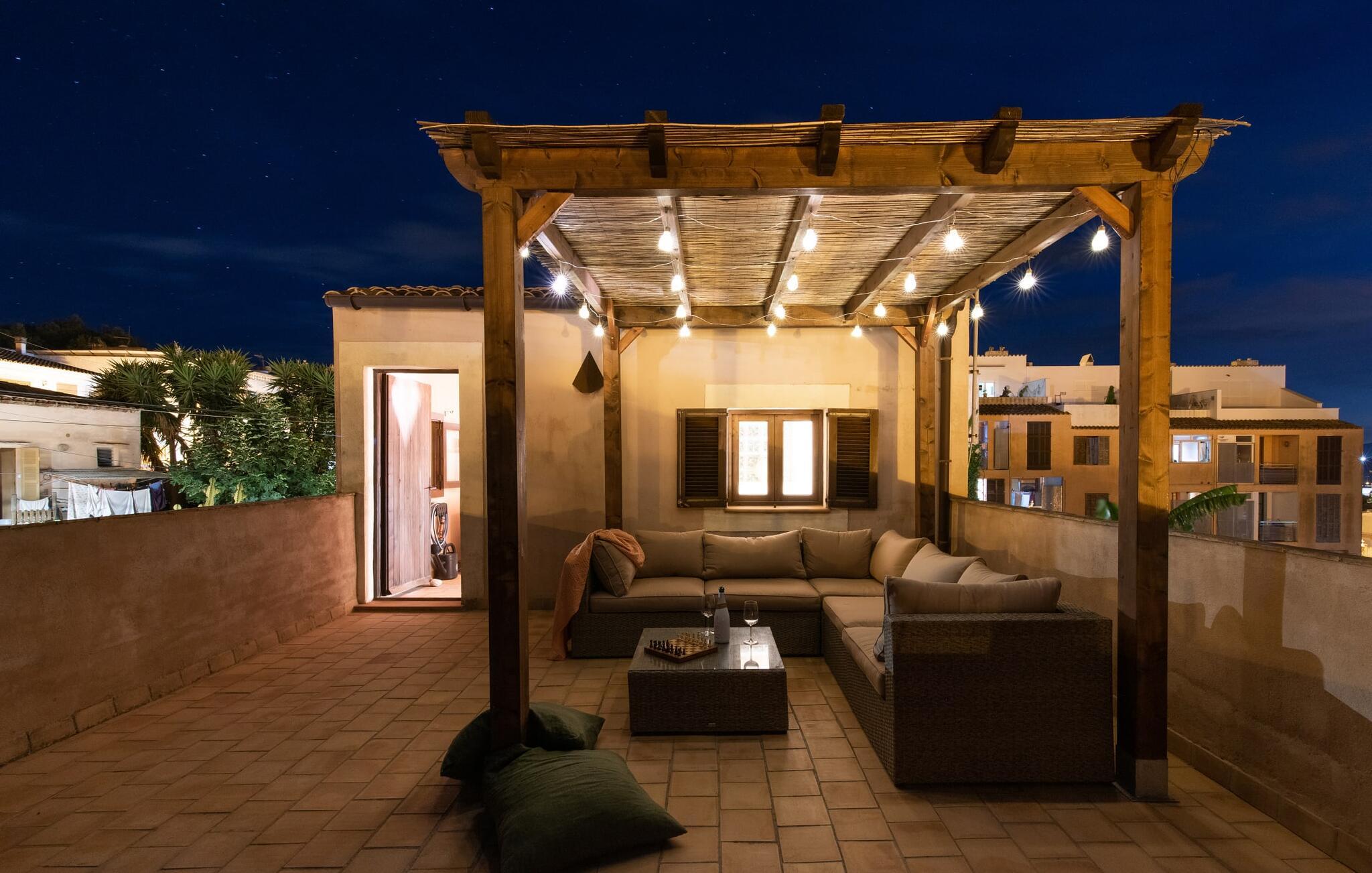 Tingene I kan finde gemt i gårdhaverne! Nabohusets væg er beklædt med klatreplanter, så jeres have føles som en juvel beskyttet fra alle sider, når I sidder på den rustikke gamle træbjælke, der knejser over den hyggelige pool. Hvis I vil perfektionere jeres kravlefærdigheder på ferien, er det bedre at tage til den nærmeste strand, men hvis I bare sætter pris på følelsen af afslapning, som en pool giver, vil I tilbringe mange salige timer i denne gårdhave brolagt med lokalt grus og fliser i den traditionelt smukke mallorcanske farve . Hvis I vil være aktiv, er bordtennisbordet med skygge af en pergola praktisk. I har valget mellem, hvor I vil nyde øens sol: enten direkte ved poolen eller ved siden af huset. Med BBQ'en skaber I et kulinarisk højdepunkt, så ikke kun jeres hud og sjæl, men også jeres gane bliver forkælet under jeres ferie. En overdækket terrasse inviterer jer til at blive hængende og slappe af i skyggen. Når mørket falder på, tænder den udvendige belysning som ved et trylleslag, og haven får straks en anden form. Benyt lejligheden til at opleve det, mens I har det sjovt med et spil skak eller et rimeligt udfordrende puslespil. Med stor sans for detaljer har ejeren også formået at skabe et unikt look i interiøret. Små, nænsomt arrangerede detaljer understreger det særlige ved spisestuen, der har spisebord og teknisk set er en del af udearealet, når terrassedøren er helt åben, så ø-luften kan strømme ind. De antikke møblers ædle mørke trætone i kombination med det beherskede udvalg af dekorative genstande skaber en behagelig atmosfære, som rundes af af pejsens blide knitren. En af stuevæggene har typisk mallorcansk arkitektur med natursten og træbjælker, som også kan findes i loftet. Stueetagen rummer også køkkenet, som er udstyret til max med farverige gule klinker. Der er et træbord i midten af køkkenet, som giver jer plads nok til at tilberede større måltider. Adgang til de to soveværelser og to badeværelser sker via den dekorative gang med stenmosaikgulve. Et af soveværelserne har en dobbeltseng, det andet har to enkeltsenge. Et af badeværelserne har også et badekar, der giver mulighed for et hyggeligt badekar med levende lys. En trappe fører fra stuen op til et vaskerum og en idyllisk tagterrasse, delvist overdækket af en pergola, der automatisk oplyses ved mørkets frembrud. En loungegruppe inviterer jer til at nyde, men denne gang med en bonusudsigt over havet af røde tage og slottet. På grund af sin placering i byen kan den gade, som rækkehuset ligger på, nogle gange høres under trafikken. På den anden side kan I direkte nyde infrastrukturen på et sted, der har bevaret sin autentiske karakter: der er mange steder at stoppe for en aftentur, og I er kun et stenkast fra den smarte badeby Cala Ratjada med dens strande, idyllisk havn og talrige barer og restauranter. Denne kyststrækning er særlig populær for sine uberørte strande og bugter, der veksler med kystklipper. Der er meget at opdage - uanset om I vil besøge den unikke natur i Parc Natural, 13 km nordøst for Artà, eller om I foretrækker at gå en tur i Artà med dens middelalderlige bymidte, der ligger 8 km væk. Villaen "Es Regaro" passer komfortabelt ind i det harmoniske ensemble i den traditionelle by Capdepera. Fra tagterrassen kan I se det karakteristiske slot og det varierede omkringliggende landskab. Efter cirka 3 km kan I fordybe jer i strandlivet i Cala Ratjada med dets utallige barer, restauranter og indkøbsmuligheder eller blot gå en tur langs strandpromenaden. Roligere strande på østkysten er også nemme at nå.