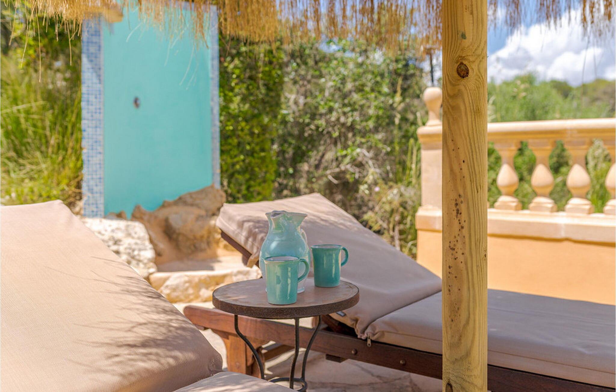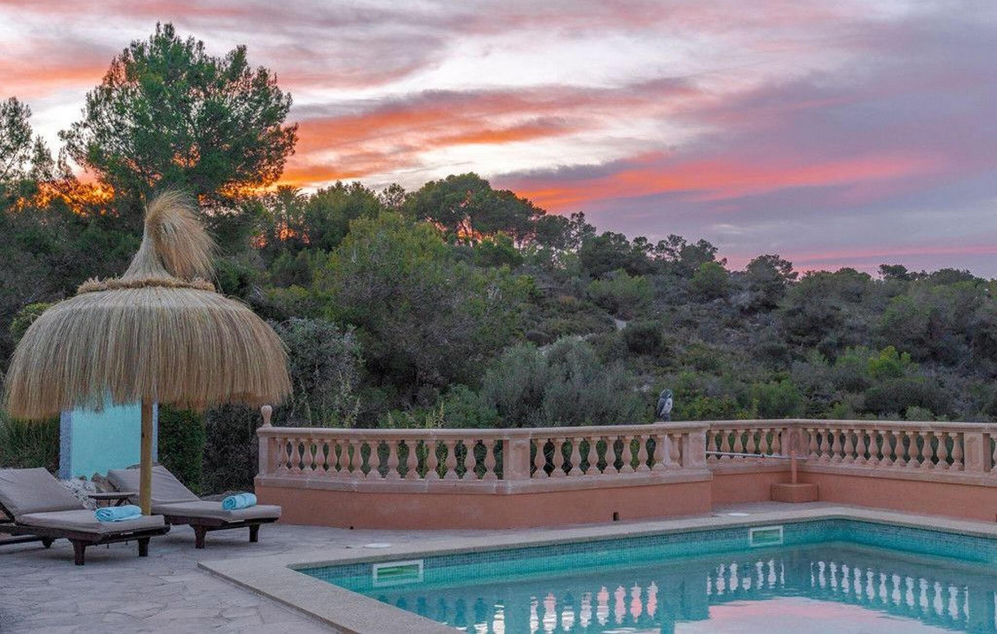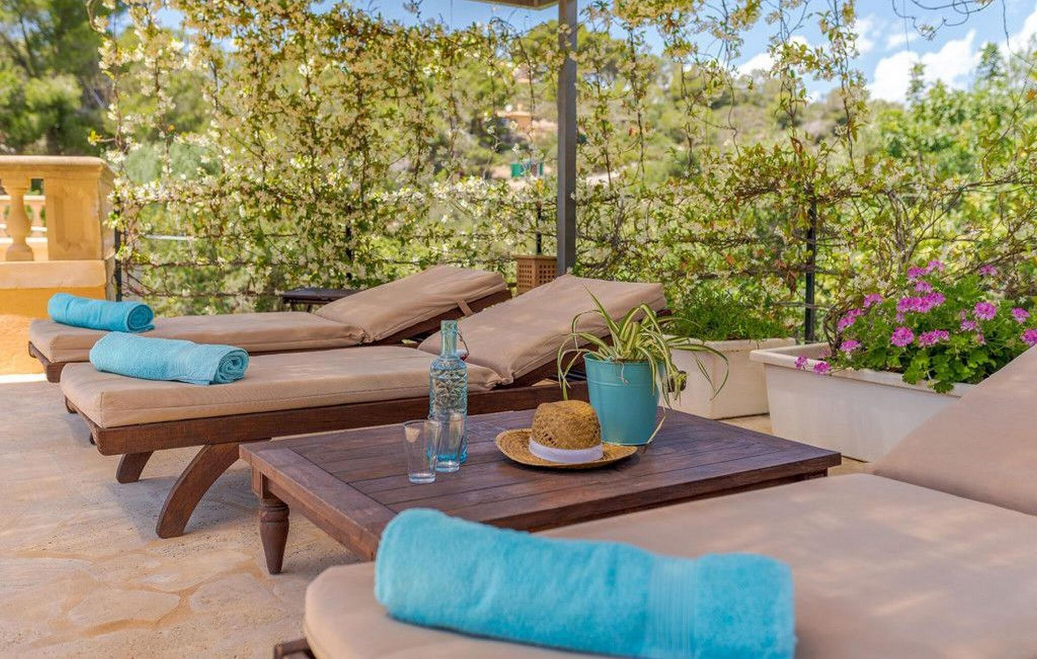Nyd en fortryllende panoramaudsigt fra den terrakottafarvede finca "Es Socorrat". En solrig og afslappende ferie venter jer i det smukke sydlige Mallorca.