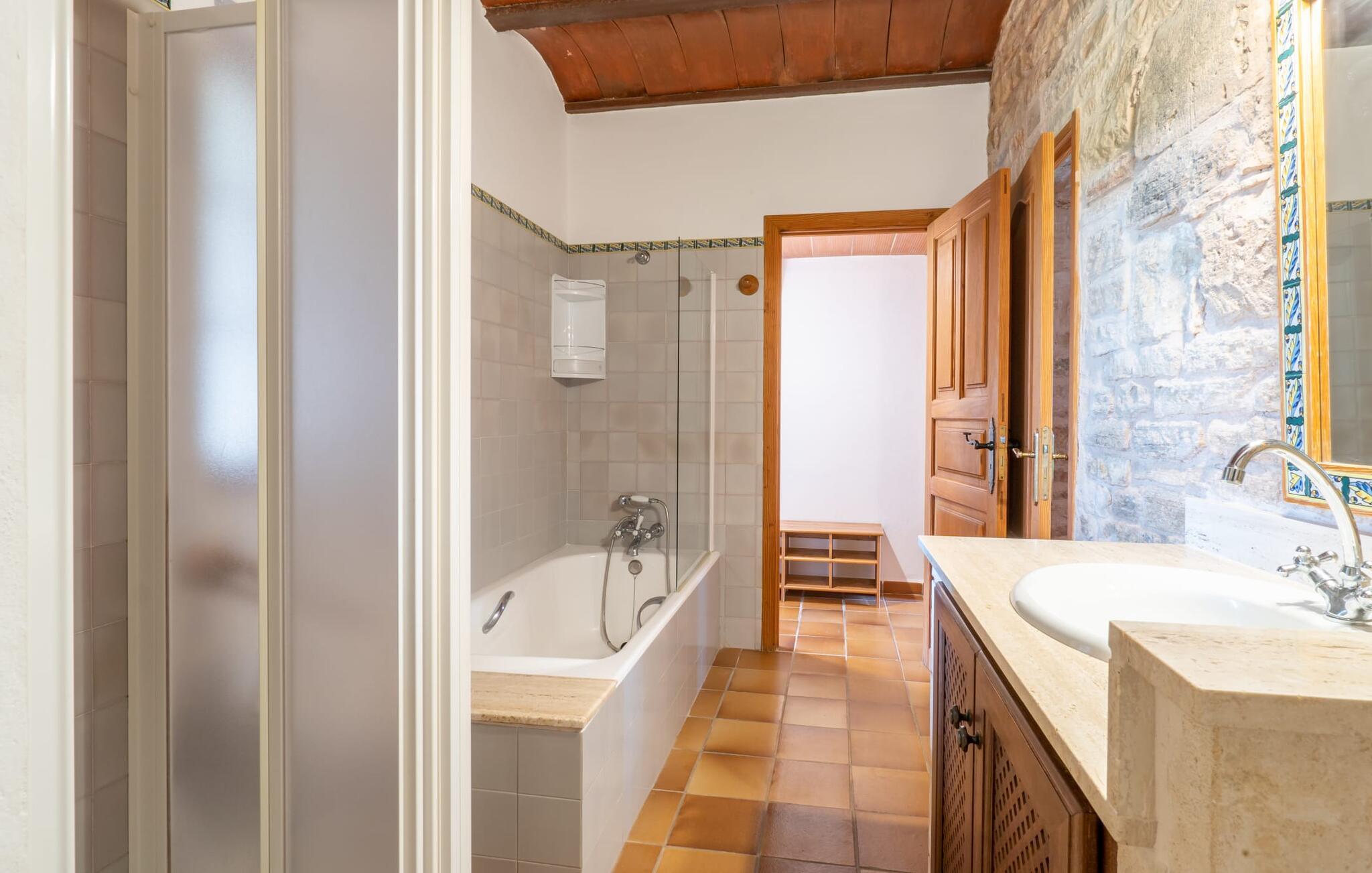 Sol, afslapning, privatliv og en betagende udsigt - alt dette er muligt i ferielejligheden "Es Turo Eivissa", som ligger på ejendommen "S'Hort des Turó de ses Illes". Beliggende i et stort parklignende område, kan I nyde rolige gåture og opdage forskellige steder at slappe af, herunder: B. Siddepladser ved poolen, på græsplænen eller i den naturlige skygge af et træ. Den private terrasse lige ved siden af lejligheden byder på et vidunderligt sted at slappe af udenfor. Selve lejligheden kombinerer rustik charme med komfort. Hvide vægge, natursten, terracotta fliser, synlige bjælker og træ skaber en autentisk ø-atmosfære. Den åbne stue-spisestue med integreret køkken byder på alt hvad I behøver til en ferie med selvforplejning. Soveværelset har en dobbeltseng (to enkeltmadrasser) og der er et rummeligt badeværelse. Et varmt-koldt klimaanlæg sikrer komfort året rundt. "Es Turo Eivissa" tilbyder den sande essens af Mallorca, med alle de bekvemmeligheder I har brug for til en afslappende ferie. Dette er en af fem enheder på ejendommen. De er "S'Hort des Turó Cabrera", "S'Hort des Turó Menorca", "S'Hort des Turó Mallorca" og "S'Hort des Turó Formentera" og kan alle bookes på vores hjemmeside. Ferielejligheden "Es Turo Eivissa" ligger kun 3 km sydvest for Ses Salines. Ejendommen på 28.520 m² byder på masser af plads. De umiddelbare omgivelser inviterer til lange gåture gennem naturen. Takket være den strategisk gode beliggenhed kan omkringliggende landsbyer og strande også nås hurtigt. Colonia de Sant Jordi (ca. 2,7 km) har to smukke sandstrande, den nordlige, Es Trenc, er den største naturlige strand på Mallorca.