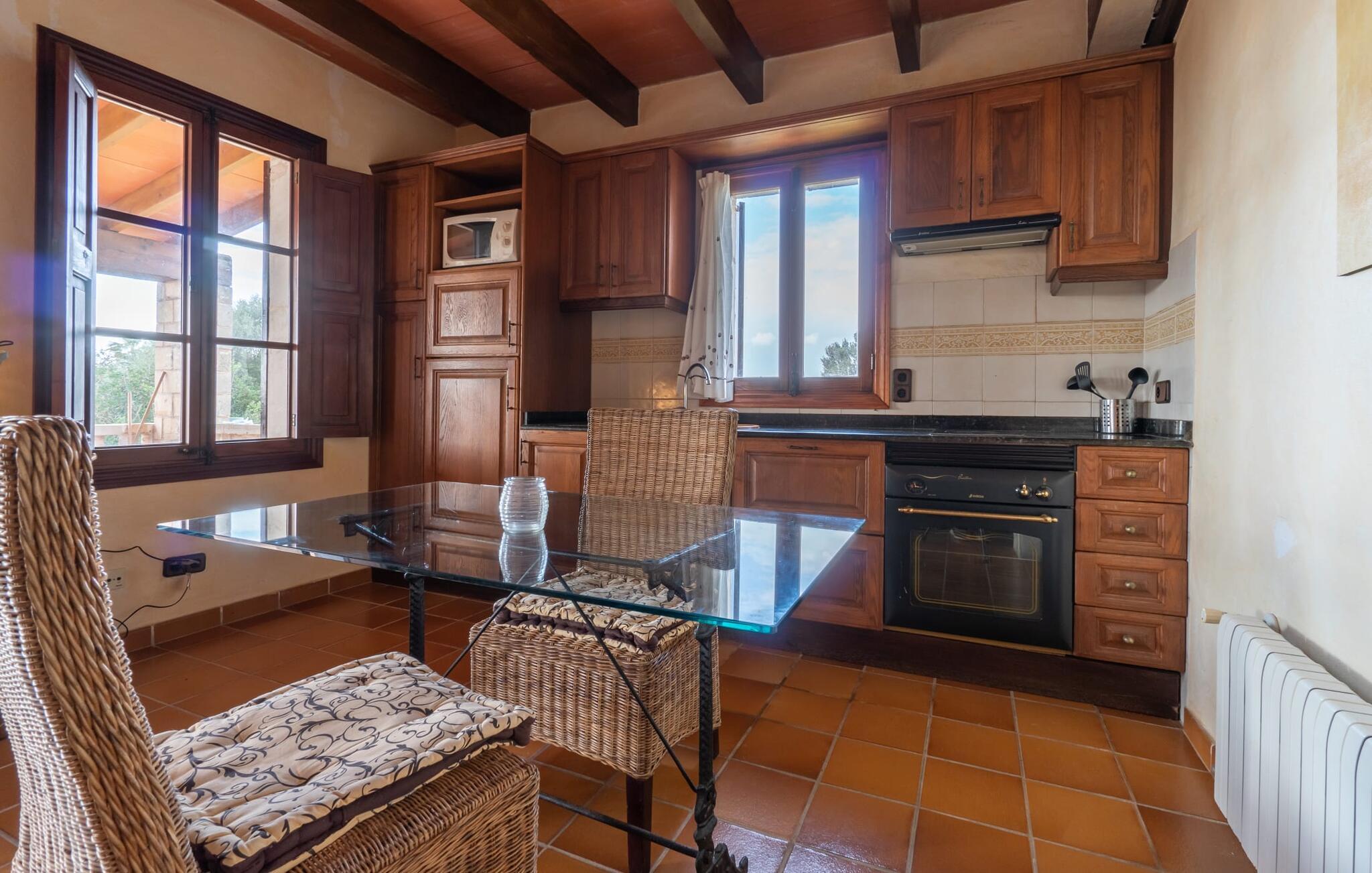 Sol, afslapning, masser af privatliv, en smuk udsigt, at bo tæt på Mallorcas smukkeste strande - alt dette er muligt i lejligheden "Es Turo Formentera", der præsenterer sig som et indbydende feriehus for to gæster. På det enorme, parkagtige og naturområde kan I nyde en lang række perspektiver på korte gåture og lade blikket vandre i fred og ro. Nogle steder kan vise sig at være yndlingssteder, herunder steder at sidde og ligge ved poolen, på græsplænen, direkte under åben himmel eller i den luftige naturlige skygge af et træ. Den indbydende terrasse lige ved siden af lejligheden giver en helt vidunderlig mulighed for at sidde udenfor og slappe af og nyde.