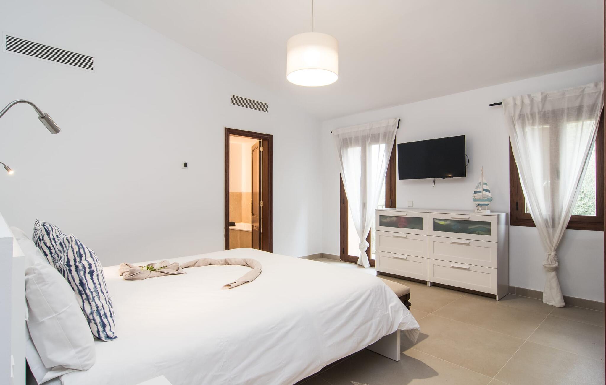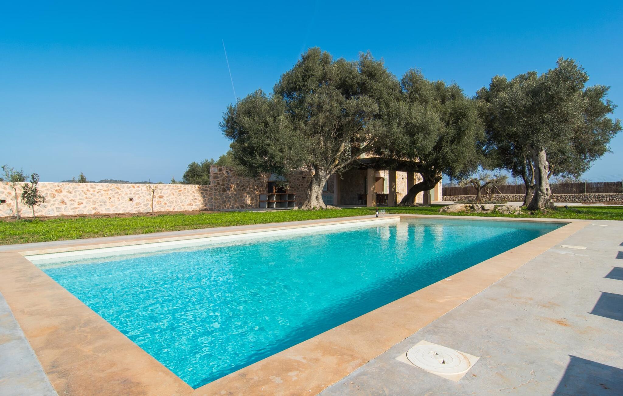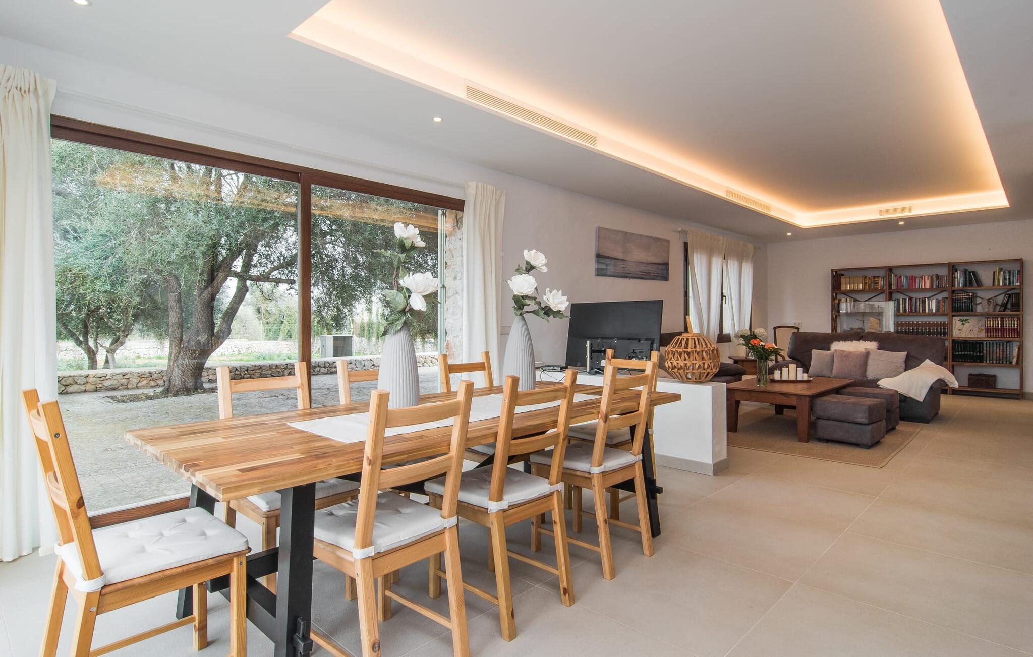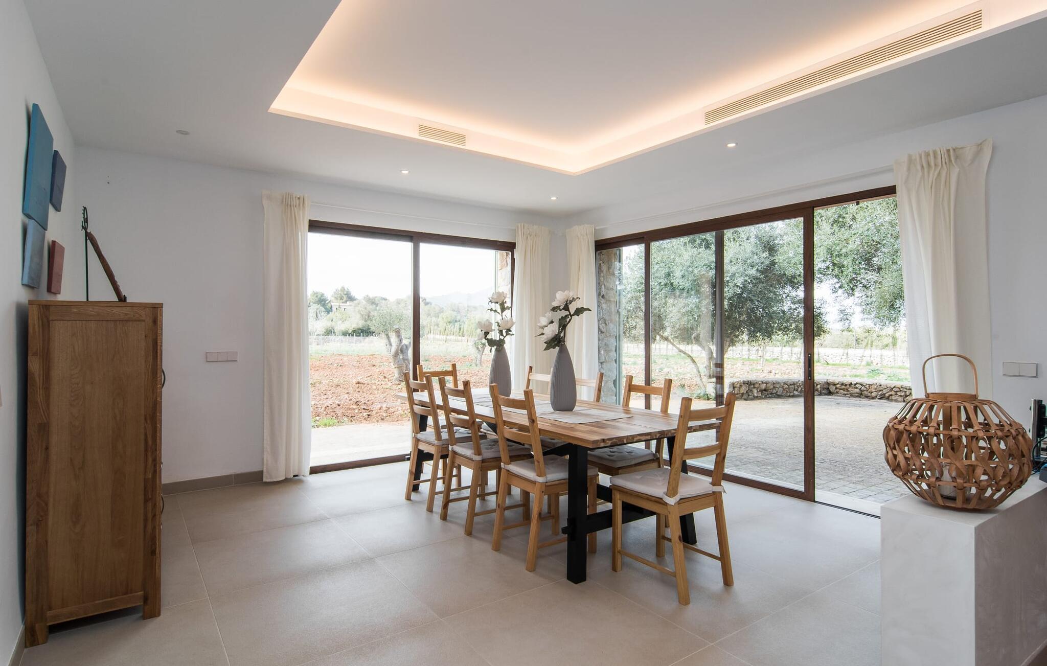 Hvis I især vil udforske den østlige del af Mallorca, så er I kommet til det rigtige sted i den moderne finca "Es Vidrie". Den ideelle beliggenhed mellem de smukkeste middelalderlige småbyer og livlige kystbyer i denne ø-region er overbevisende. Det to-etagers feriehus ligger på baggrund af Llevant-bjergene på en ny anlagt ejendom med gamle træer. Hjertet i haven er swimmingpoolen indlejret i den omkringliggende græsplæne. Den hudvenlige pool byder på afkøling og masser af sjov for store og små. Omgivet af det grønne i den rige middelhavsflora, kan I nyde den helt private og uhindrede udsigt til himlen. Oplev den bedste afslapning, mens I solbader på de medfølgende liggestole. For typisk sydlandsk hygge tilbyder denne perfekte sommerresidens en overdækket terrasse med et langt spisebord, hvor I kan spise uforstyrret - en muret grill støtter jer i jeres afslappede selvforsyning i det rummelige feriehus. Gør nyt ud af gammelt! Ved første øjekast fremstår facaden beklædt med stenbrud typisk traditionel, men ved nærmere eftersyn forstærkes det vellykkede eksempel på mallorcinsk arkitektur af trendy farver som sart grøn. Indenfor kan I forvente lyse værelser i en moderne atmosfære, som vil gøre jeres feriemodel med flere generationer eller familier af venner til en realitet. White Style kombineret med træ og lyse sandtoner skaber en behageligt reduceret stemning, der er reduceret til det væsentlige samt form og funktionalitet. Dette sker både i det smarte, fuldt udstyrede køkken og i det tilstødende opholds- og spiseområde. Det indirekte lyskoncept kendetegner også en hyggelig aften ved pejsen. En god nats søvn kan findes i de fem airconditionerede soveværelser med dobbeltsenge, som hver også har et vægmonteret fjernsyn. Fire udsøgte badeværelser i et smart design med rummelige walk-in brusere er delvist en suite (tre). Et badeværelse er placeret mellem to soveværelser. Fantastisk dejlig ferie - hvem drømmer ikke om det? "Es Vidrie" gør det muligt og byder på stil og komfort. Den hyggelige nybyggede finca "Es Vidrie" med et luksuriøst poolområde er ideel til store familier eller to. Ejendommen, som er beliggende nær en akustisk mærkbar landevej, imponerer med sine moderne faciliteter og flotte omgivelser. I nyder godt af korte afstande til de smukkeste steder i den østlige del af øen: 5 minutter til Capdepera, 6 minutter til Canyamel, 9 minutter til Artà - der er mange muligheder for at gøre jeres indkøb på markedet eller i supermarkeder. Smukke sandstrande som Canyamel kan også nås hurtigt.
