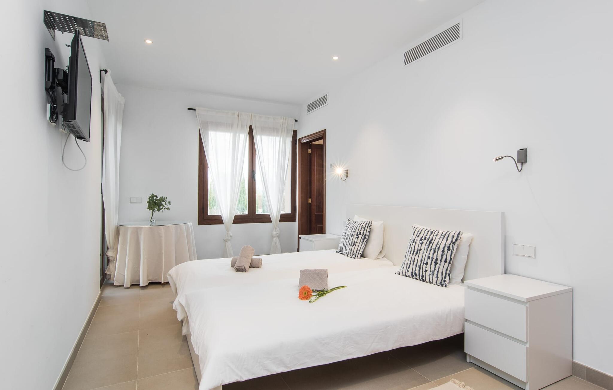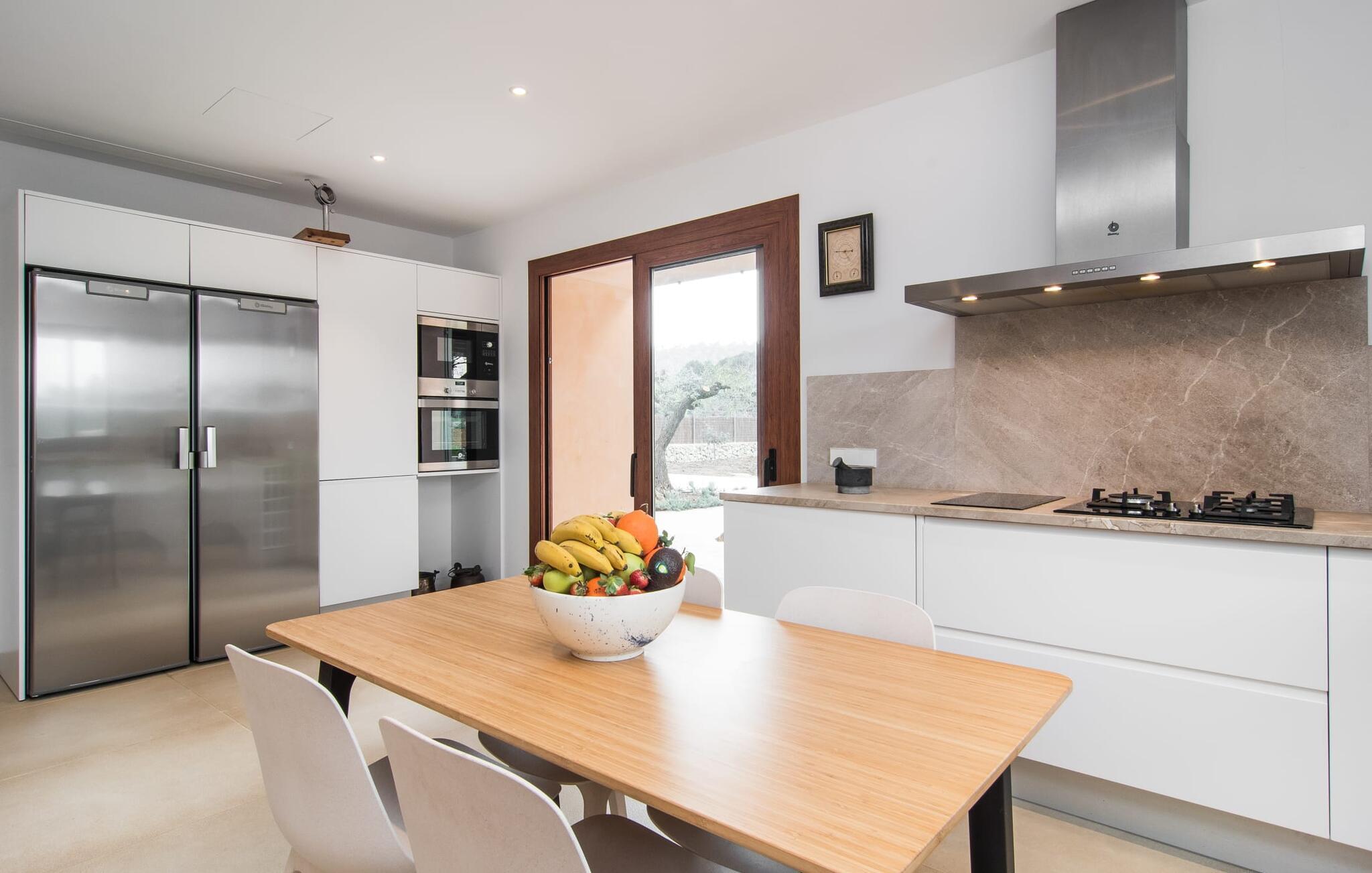 Hvis du især vil udforske den østlige del af Mallorca, så er du kommet til det rigtige sted i den moderne finca "Es Vidrie". Den ideelle beliggenhed mellem de smukkeste middelalderlige småbyer og livlige kystbyer i denne ø-region er overbevisende. Det to-etagers feriehus ligger på baggrund af Llevant-bjergene på en ny anlagt ejendom med gamle træer. Hjertet i haven er swimmingpoolen indlejret i den omkringliggende græsplæne. Den hudvenlige pool byder på afkøling og masser af sjov for store og små. Omgivet af det grønne i den rige middelhavsflora, kan du nyde den helt private og uhindrede udsigt til himlen. Oplev den bedste afslapning, mens du solbader på de medfølgende liggestole. For typisk sydlandsk hygge tilbyder denne perfekte sommerresidens en overdækket terrasse med et langt spisebord, hvor du kan spise uforstyrret - en muret grill støtter dig i din afslappede selvforsyning i det rummelige feriehus. Dette er et Fincallorca feriehus. Gør nyt ud af gammelt! Ved første øjekast fremstår facaden beklædt med stenbrud typisk traditionel, men ved nærmere eftersyn forstærkes det vellykkede eksempel på mallorcinsk arkitektur af trendy farver som sart grøn. Indenfor kan du forvente lyse værelser i en moderne atmosfære, som vil gøre din feriemodel med flere generationer eller familier af venner til en realitet. White Style kombineret med træ og lyse sandtoner skaber en behageligt reduceret stemning, der er reduceret til det væsentlige samt form og funktionalitet. Dette sker både i det smarte, fuldt udstyrede køkken og i det tilstødende opholds- og spiseområde. Det indirekte lyskoncept kendetegner også en hyggelig aften ved pejsen. En god nats søvn kan findes i de fem airconditionerede soveværelser med dobbeltsenge, som hver også har et vægmonteret fjernsyn. Fire udsøgte badeværelser i et smart design med rummelige walk-in brusere er delvist en suite (tre). Et badeværelse er placeret mellem to soveværelser. Fantastisk dejlig ferie - hvem drømmer ikke om det? "Es Vidrie" gør det muligt og byder på stil og komfort. Den hyggelige nybyggede finca "Es Vidrie" med et luksuriøst poolområde er ideel til store familier eller to. Ejendommen, som er beliggende nær en akustisk mærkbar landevej, imponerer med sine moderne faciliteter og flotte omgivelser. Du nyder godt af korte afstande til de smukkeste steder i den østlige del af øen: 5 minutter til Capdepera, 6 minutter til Canyamel, 9 minutter til Artà - der er mange muligheder for at gøre dine indkøb på markedet eller i supermarkeder. Smukke sandstrande som Canyamel kan også nås hurtigt.