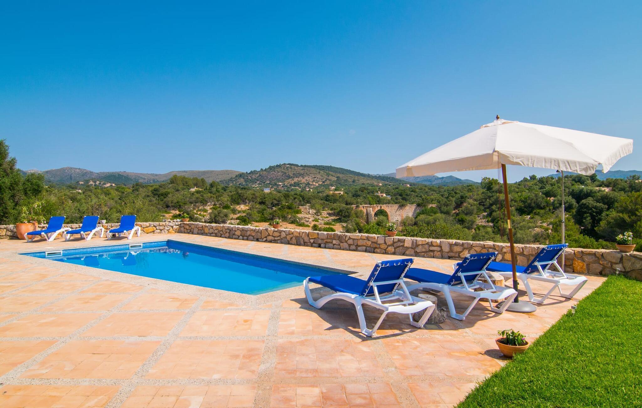 Søger I primært fred og ro på ferien, så er I kommet til det rette sted – og det vil I straks bemærke: glade får, der græsser fredeligt på begge sider af indkørslen til huset villa "Escanellas". Landstedet, bygget i mallorcansk stil med smukke grønne skodder, ligger på en kæmpe ejendom nær byen Artà. Den byder på mere end blot en velholdt græsplæne, som børnene kan lege på, men også en fortryllende kombination af fyrretræer, høje nåletræer og vidunderligt duftende buske, der er typiske for øens vegetation. Fra den delvist overdækkede terrasse, chik og komfortabel på samme tid og udstyret med flere sofagrupper, kan I nyde en fantastisk udsigt over det omkringliggende område af denne kystregion så langt øjet rækker. Slap af på rattansofaen inklusive sofapuder eller nyd middelhavsdelikatesser ved det store spisebord. Et andet overdækket terrasseområde lige ved siden af hovedbygningen giver også plads til måltider; Foruden bord og stole har den en praktisk vask og flere hylder og bordplader til tilberedning af små udendørs snacks, herunder en frisk frugtsalat. Trænger I til at køle af, så svøm et par længder i poolen, der glitrer turkis i sollyset, og varm derefter hurtigt op på en af liggestolene. Villaen udstråler også typisk mallorcinsk charme indeni: mørke træbjælker og stenbuer forbinder rummene, mens lofterne, som nogle steder er afsluttet med sofistikerede kurver lavet af Mares-sten, og de smukke gulvfliser skaber en rustik, men hjemlig atmosfære, meget ren, stemning. Det stilfulde hus kan træde ind fra to sider: enten ind i en imponerende, over 8 m høj foyer eller direkte ind i den rummelige stue/spisestue. Det rummer et langt træbord til uforglemmelige aftener med lækker mad og livlige debatter, samt komfortable sofaer til afslapning foran en spændende film. Lige ved siden af finder I et åbent, moderne og fuldt udstyret køkken, som stadig har en landlig karakter takket være kærligt integrerede elementer: for eksempel den smukke murstensvask eller den vidunderligt varme Aga. Er I træt af dagens spænding, kan I trække jer tilbage til et af de fire dobbeltværelser. En af dem er i stueetagen, mens de andre er på øverste etage og kan nås via en stor trætrappe. De er alle lyse og venlige, ned til sidste kærlige detalje, og garanterer søde drømme. Et af værelserne er på loftet og har ingen lås, hvilket gør det perfekt til to børn. Et højdepunkt af villaens tre badeværelser er de enkelte fliser og vægge i middelhavsfarver samt murede bruse- og badekarområder. Det vil helt sikkert give jer den skønne følelse af en spa-oplevelse derhjemme. Villaen "Escanellas" ligger i et idyllisk landskab, der er et besøg værd: for eksempel ligger den romantiske kunstnerby Artà kun 2 km væk. Populær blandt turister, har den stadig formået at bevare sin vidunderlige autentiske mallorcanske atmosfære. De smalle gader, mange små gallerier, fremragende restauranter og caféer og de talrige seværdigheder fra det gamle kloster til museet sætter scenen for en succesfuld dagstur. Hvis I vil til stranden, kan I måske køre jeres lejebil til Canyamel, omkring 12 km væk. Omgivet af grønne bakker har stranden fremragende infrastruktur med livreddere, toiletter og restauranter. Nogle gange kan I endda se vilde gæs og andre vandfugle ved et nærliggende vandløb. Den utroligt smukke naturstensvilla "Escanellas", bygget på en kæmpe, landlig ejendom i en rolig beliggenhed, byder ikke kun på ren afslapning, men også en virkelig spektakulær udsigt over kunstnerbyen Artà, kun 2 km væk. Der er talrige indkøbsmuligheder samt gode restauranter og barer. Lige over de imponerende grønne bakker, der omgiver det populære feriested, finder I også nogle af de smukkeste naturlige sandstrande, som Mallorca har at byde på.