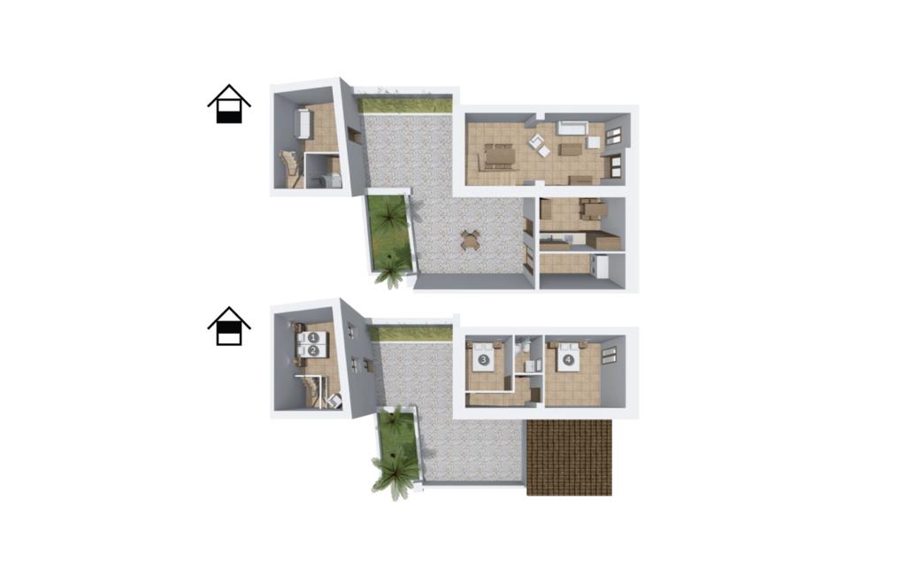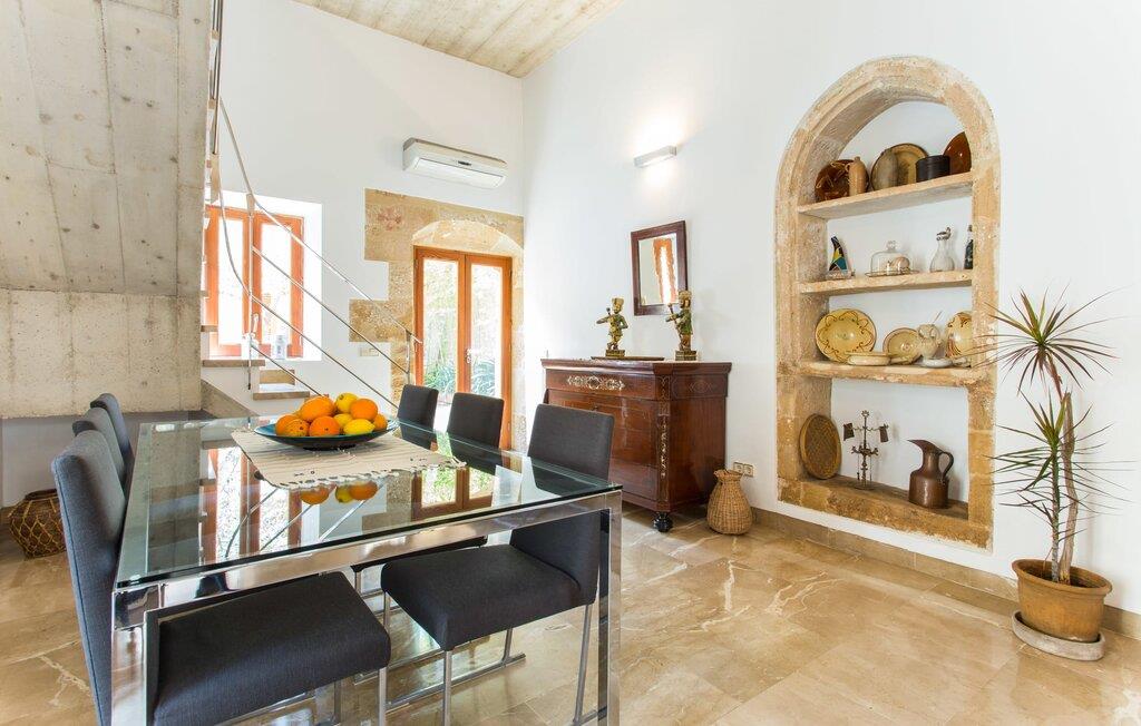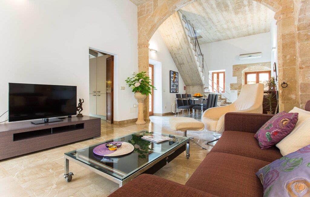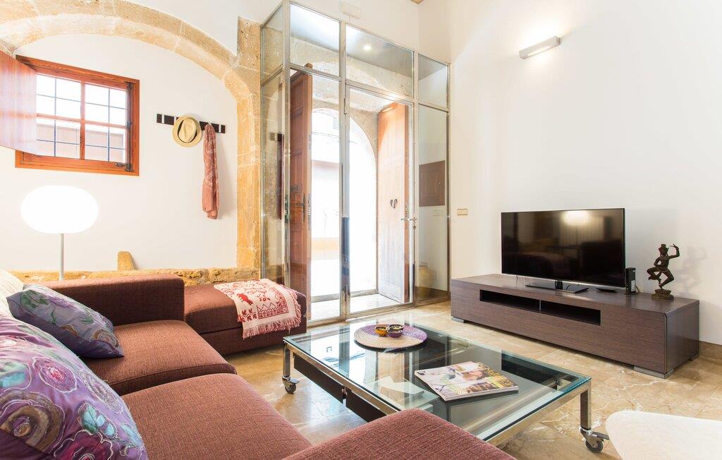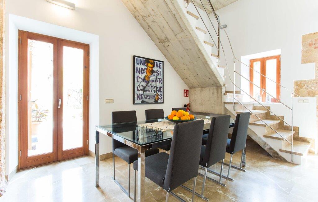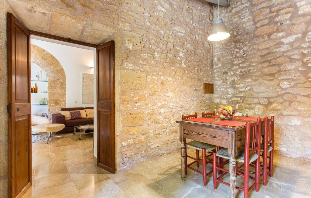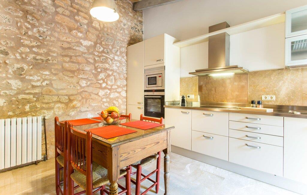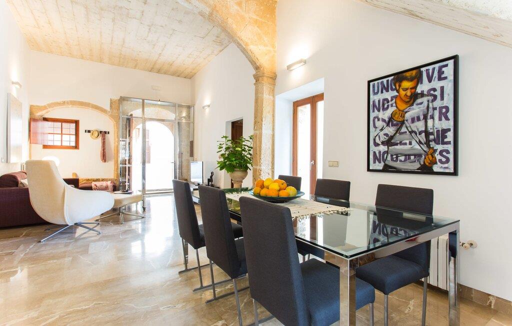 Leder I efter noget særligt på et sted, der byder på både byliv og hav, middelalderlig og moderne, spænding og ro? Fincallorca vil gerne præsentere jer "Esglesia 10", et arkitektonisk mesterværk beliggende i det ældste distrikt i Alcúdia, ikke langt fra den katolske kirke. I bor i begge betydninger af ordet "i gamle sten", for dette moderne og smagfuldt indrettede hus ligger både indenfor de massive bymure og har imponerende historisk murværk inde og ude. Her bliver I (gamle) byboere, der slentrer fredeligt gennem gaderne, der er gennemsyret af historie, hvor der stadig findes en masse mallorcansk tradition. Til jeres morgenmorgenmad eller en lille natdrink kan I sidde i den beskyttede, beplantede gårdhave med adgang til det separate opholds- og soveområde. Det er værd at bemærke, at det er bedst at efterlade bilen 150 m væk på parkeringspladsen nær kirken, da det er let at fare vild i de snoede smalle gader. Så snart I træder ind af hoveddøren, kan I straks synke ned i de bløde puder og trække vejret dybt efter en dag med shopping, sightseeing eller på stranden. Det åbne rum med højt til loftet, gammelt murværk og den imponerende trappe til 1. sal løber til gården overfor og minder om en kunstnerhems. Det efterlader altid et fremragende førstehåndsindtryk. Herfra kan I også få adgang til køkkenet med dets buede tag (og en dør til den udendørs spiseplads). Ikke alene er det perfekt til madlavning, men det er også smart nok til en udvidet vinsmagning efter et besøg i Inca. De to hyggelige soveværelser på første sal, det ene med antikke møbler og en helt igennem kongelig dobbeltseng, deler et brusebad. To yderligere gæster kan indkvarteres uafhængigt af hinanden i den to-etagers minilejlighed med brusebad (dog uden køkken) på den anden side af gården. Nedenunder finder I en sofa og ovenpå en stor dobbeltseng med en stol ved siden af vinduet og et langt walk-in fyrre garderobeskab. I kan mødes i midten for at spise sammen, selvom de separate huse giver mulighed for privatliv og uafhængighed. Alcúdia og Pollença er to populære små byer med havne, palmeomkransede promenader og et udvalg af strande. jeres drømmeferie kan blive til virkelighed her - begge byer er perfekte til at slentre og slappe af samt til vandsportsaktiviteter. Den gamle bydel i Alcúdia tager jer med ind i øens farverige historie, og den store promenade i Pollença er en af de smukkeste på Mallorca. Den barske Formentor-halvø tiltrækker ikke kun berømtheder med sin Hollywood-charme, afsidesliggende bugter, forrevne klippekyster og betagende udsigt. Cap fyrtårnet vil vise jer vejen! Mange besøgende til Alcúdia kan have savnet Sa Bassa Blanca-museet, som ligger i nærheden og byder på enestående kunstværker, en rosenhave og mauriske facader. Ikke så mærkeligt, for bag de to Badias til venstre og højre er der så mange smukke strande... Denne ekstraordinære ejendom ligger lige i centrum af den historiske, næsten trafikdæmpede gamle bydel i middelalderbyen Alcúdia. Butikker, caféer og restauranter ligger lige uden for døren. Pollença, 12 km væk, er en ideel base for vandreture gennem Serra de Tramuntana (og byder på meget mere). To Badias tilbyder strande til dig; Læder- og vinbyen Inca byder på et stykke byliv kun en halv times kørsel væk.