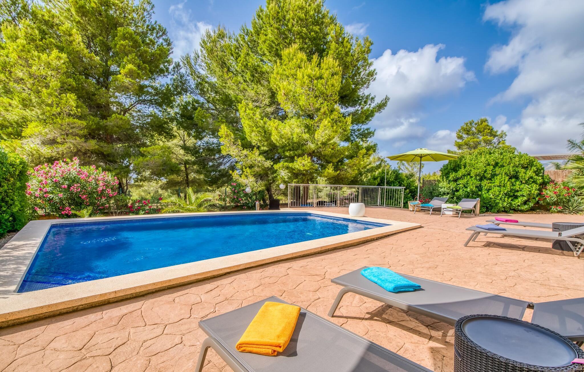 Forestil dig dette: en azurblå pool, der lokker i sollys. En vidunderlig stor poolterrasse med seks liggestole og en betagende udsigt over Sierra de Levantes vilde bjerglandskab. I nærheden er et storslået udvalg af middelhavsplanter: bougainvillea, oleander og fyrretræ... en blanding af dufte, der får topparfumører til at falde i svime. Et pust af salt havluft svæver over din private oase fra kysten af ??det grønne, ubebyggede naturreservat kun 1 km væk. På terrassen kan du forkæle dig selv i solen... forkæl dig selv med en pause i skyggen af ??dit fyrretræ. Eller slap af i strandstolen og giv din have et maritimt præg. Inden en eftermiddagssiesta kan du slappe af på den store overdækkede terrasse. Der venter dig en luksuriøs, gasdrevet grill, som du hurtigt kan fremtrylle et lækkert måltid med. Om aftenen inviterer den oplyste pool dig til at tage en forfriskende sen svømmetur.