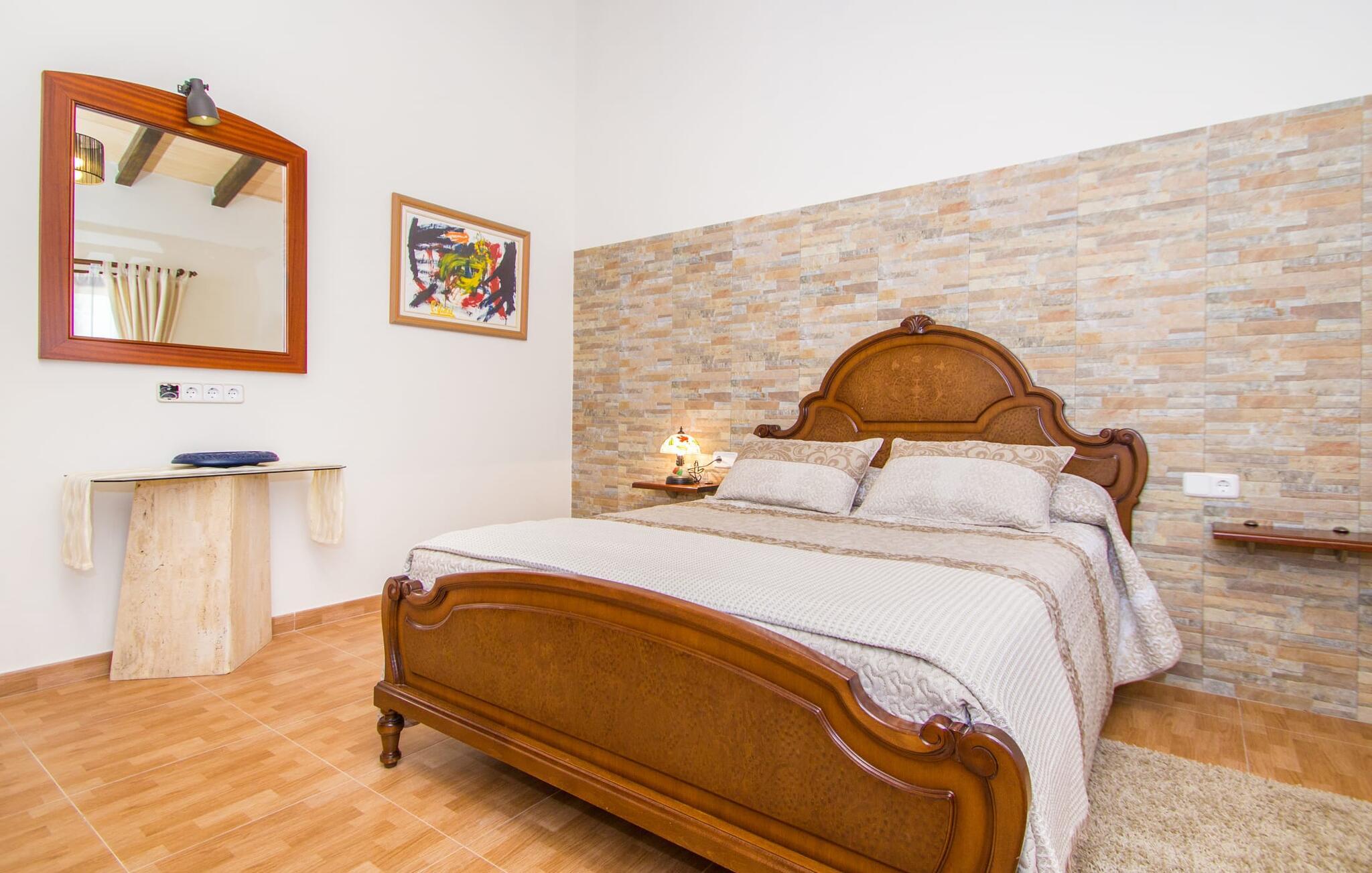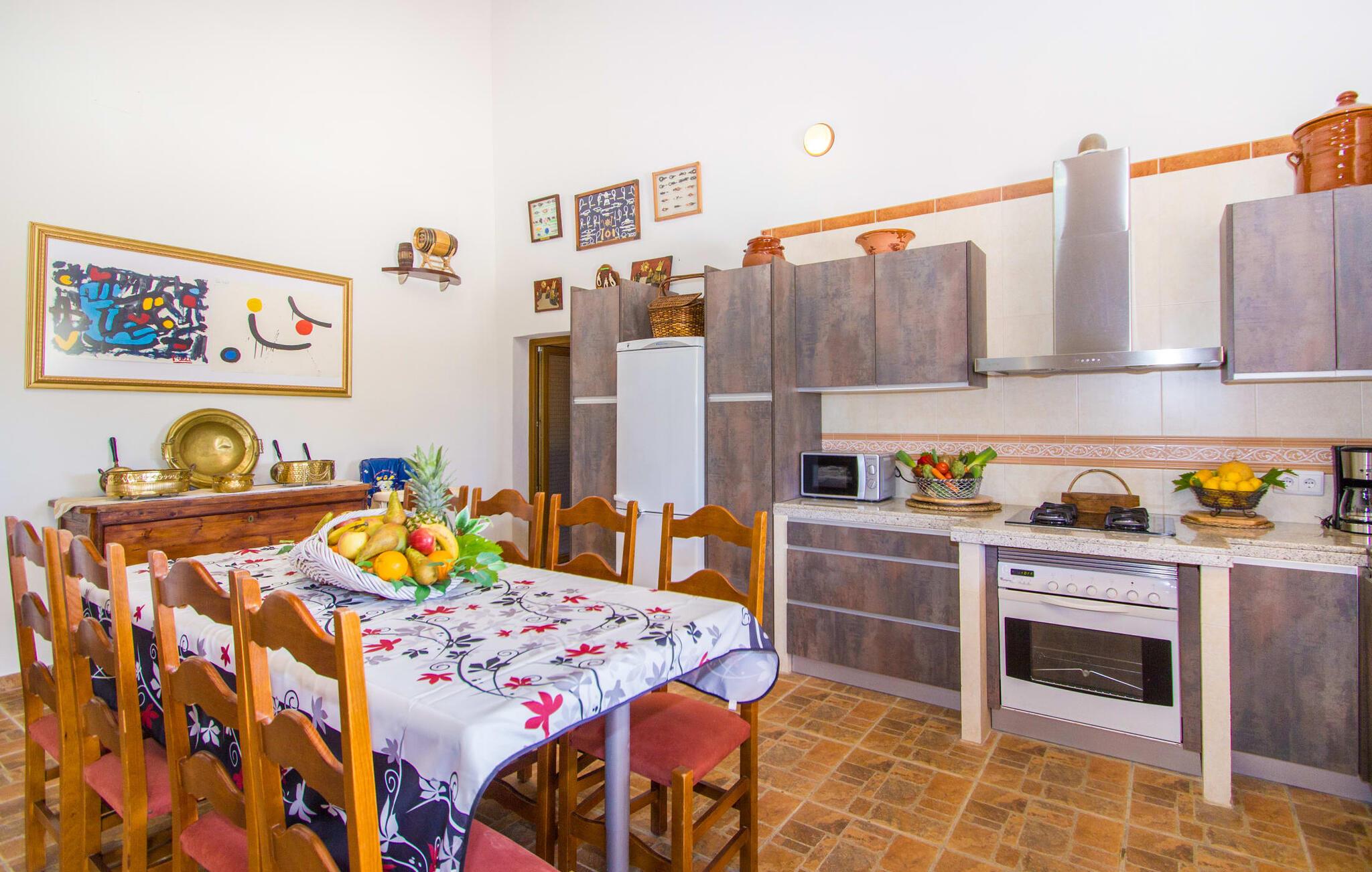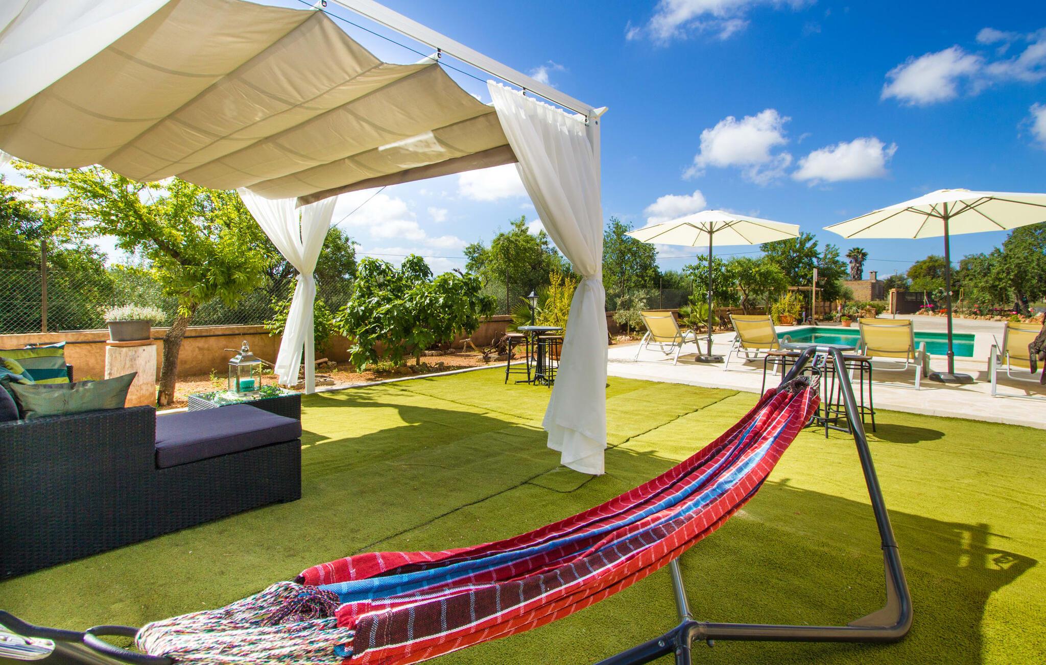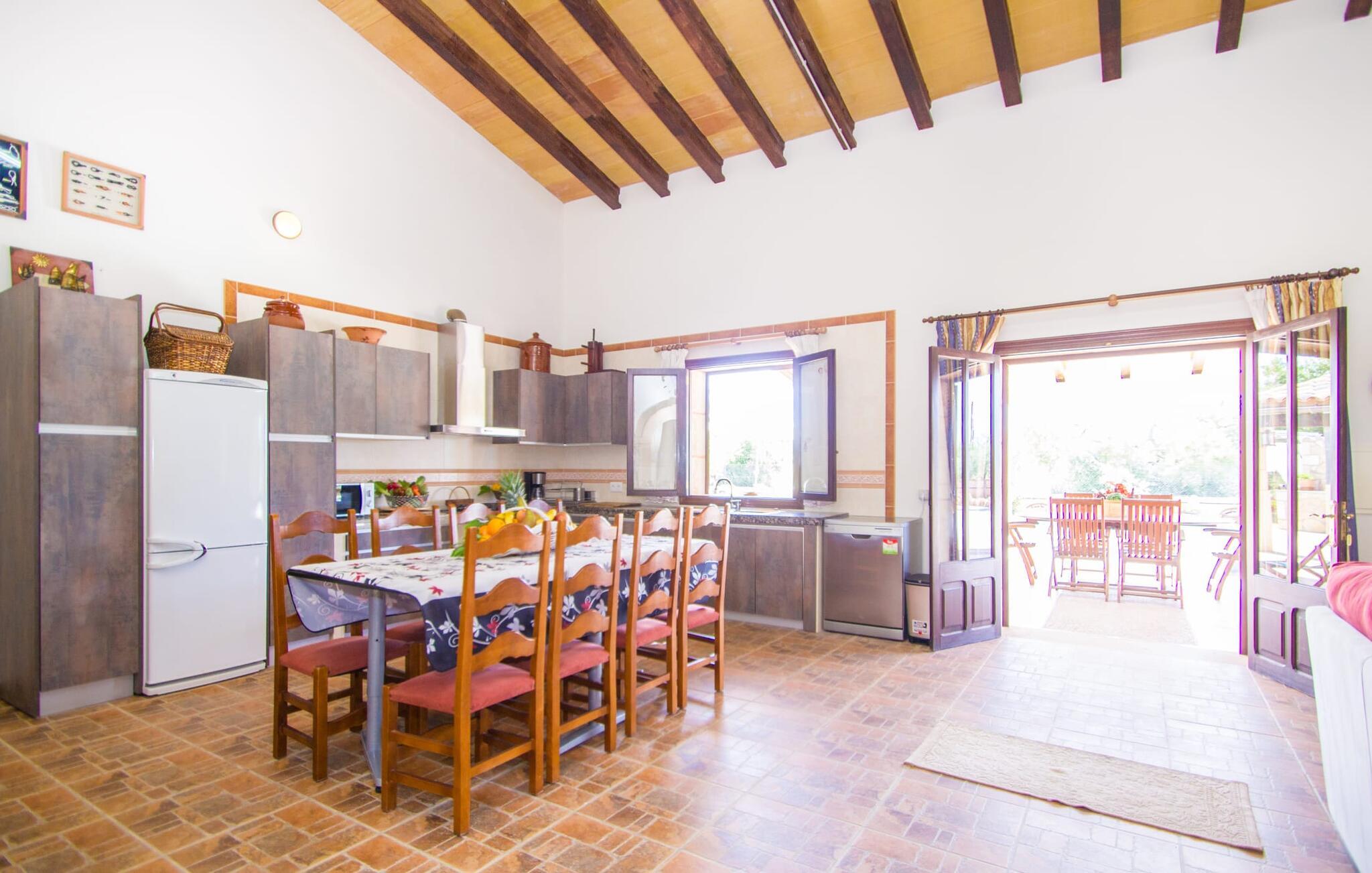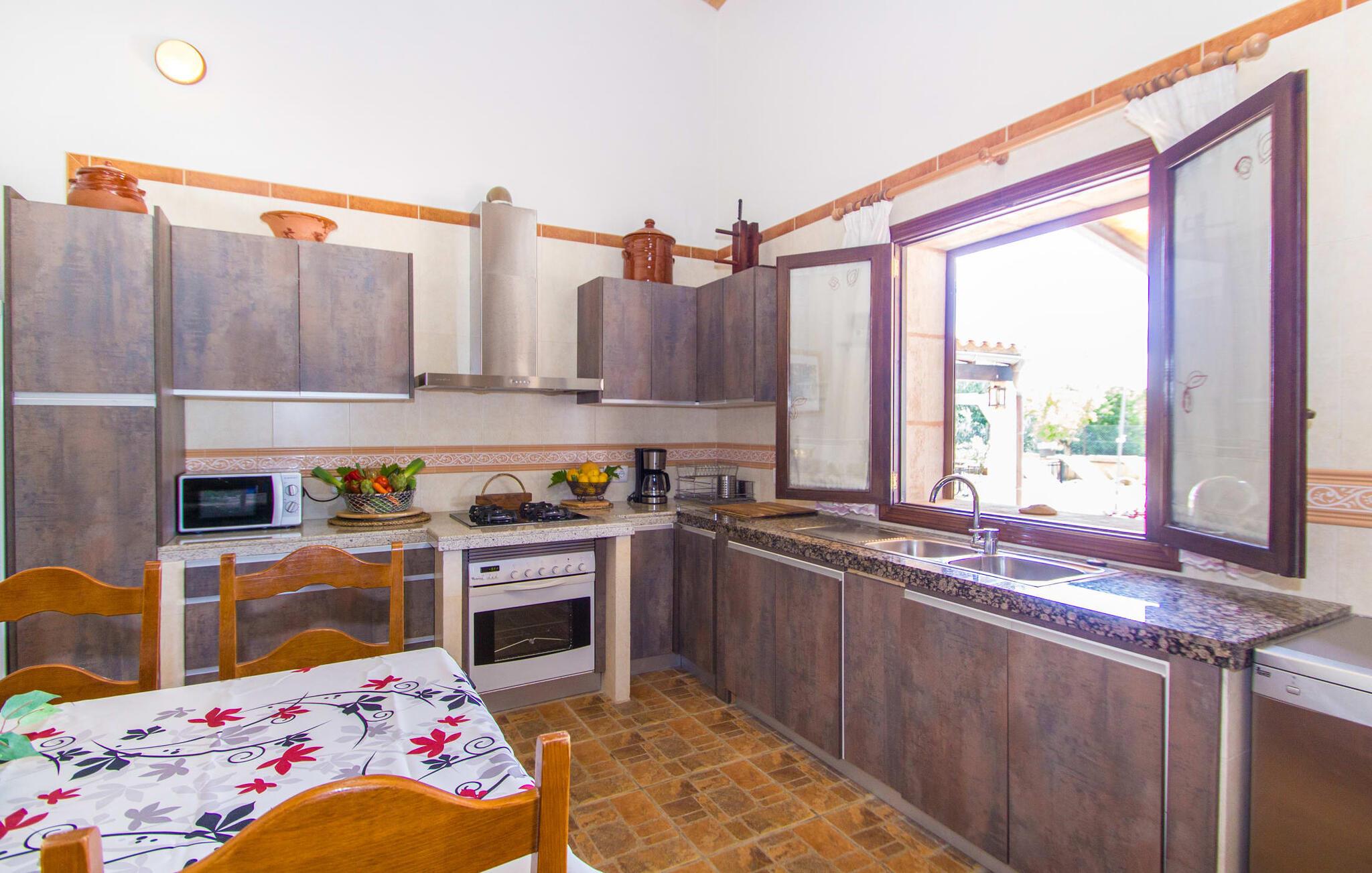 Den smukke naturstensfinca "Esplendor" i det sydlige Mallorca tilbyder den perfekte beliggenhed for en komfortabel ferie med egen forplejning nær smukke sandstrande. Det er omgivet af velholdt havegrund i landlige omgivelser og alligevel tæt nok på den charmerende landsby Campos. Butikker, supermarkeder og gode restauranter ligger mindre end 2 km fra jeres fredelige tilflugtssted. De smukke udendørs arealer indbyder til at tilbringe hele dagen udendørs. Solterrassen med pool, hyggelig chill-out zone og grillplads vender mod sydøst. Så glæd jer til behageligt morgenlys til morgenmaden og lange solskinstimer ved poolen. Fincaens indre er bygget i ét plan. Stuen med pejs er åben til køkkenet med spiseplads. En glasdør giver direkte adgang til den overdækkede terrasse og pool. Der er tre soveværelser med dobbeltsenge, hvoraf det ene har eget badeværelse. to af dem har direkte adgang til haven. Alle soveområder er udstyret med aircondition og varme. De kan mørklægges helt med rulleskodder til afslappede siestaer. Sommerhuset er også velegnet til at arbejde hjemmefra. Tag gerne jeres firbenede ven med jer, da denne ejendom er kæledyrsvenlig. Feriehuset ligger på en velholdt havegrund 1,6 km fra centrum af Campos på det sydlige Mallorca. Campos har en god infrastruktur med supermarkeder og forskellige restauranter. De lange sandstrande Es Trenc og Sa Rápita ligger 15 minutter væk i bil. Det er 30 minutters kørsel til øens hovedstad, Palma.