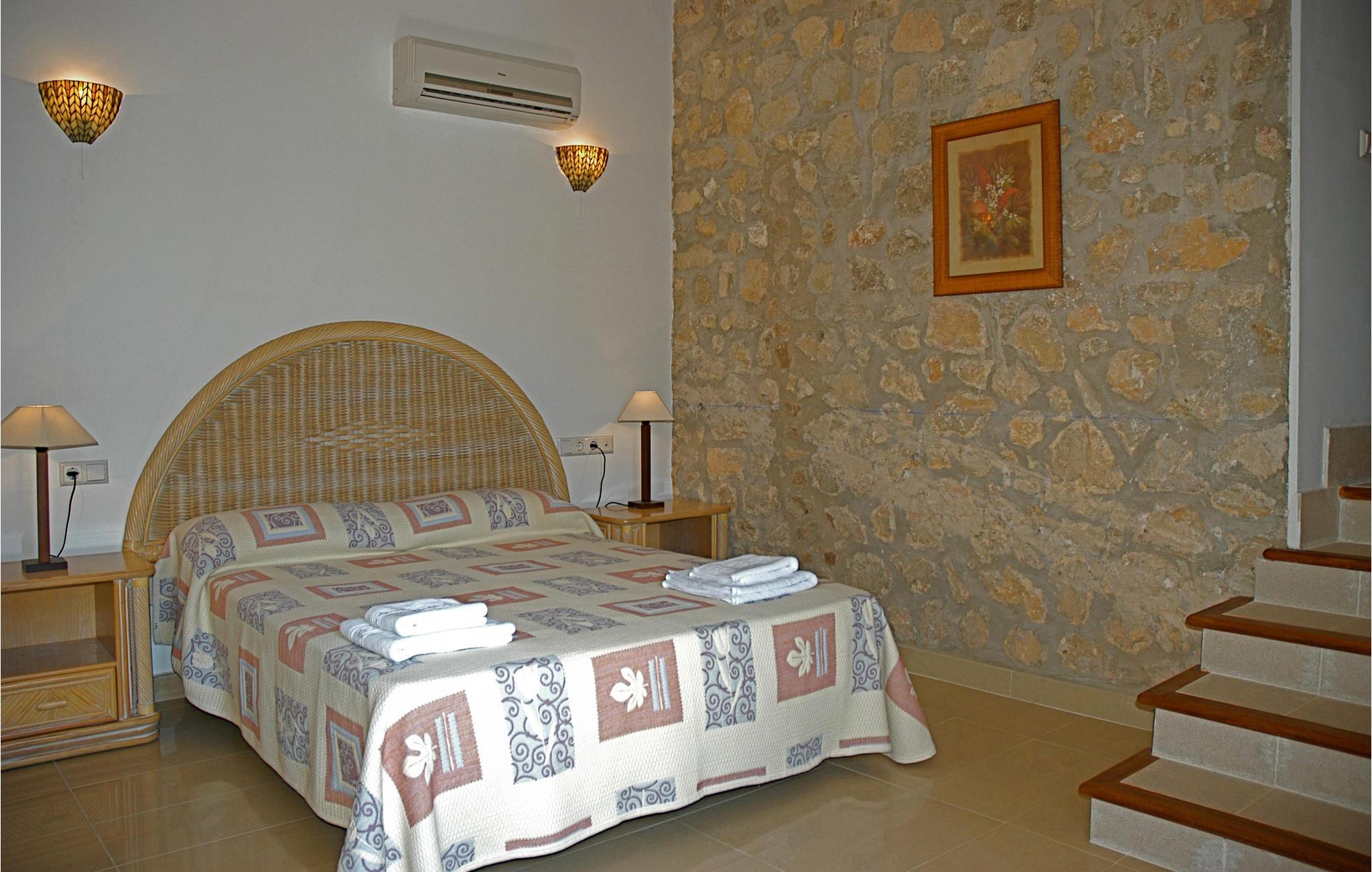 Et hemmeligt tip til alle, der leder efter ro og afslapning. Landhuset ligger langs den vilde, romantiske klippekyst ved Tramuntana-bjergene og udenfor den lille bjerglandsby Estellencs. Her får I en behagelig og rummelig feriedomicil med hele 6 soveværelser og 6 badeværelser. Derfor er huset også velegnet til seminarer, kurser og andre arrangementer. Derudover er der et gæstetoilet i stueetagen og et badeværelse med bruser i haven. Huset er fuldt klimatiseret (varmt/koldt), så det også er oplagt som feriemål om vinteren. På grund af de tykke mure og den behagelige havbrise er klimaanlægget næsten ikke nødvendigt om sommeren, og huset råder i det hele taget over et meget behageligt indeklima.