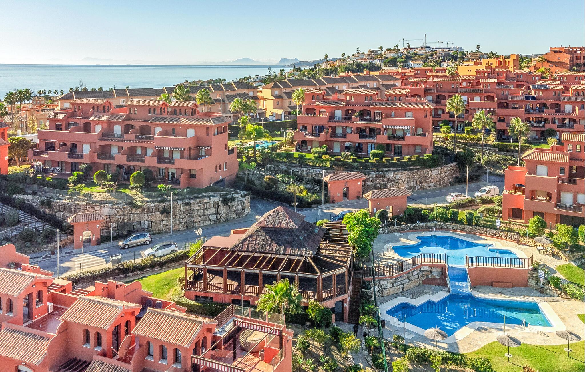 Banker hjertet for golf? Så finder I alt, hvad I ønsker i denne to-etagers lejlighed! Boligen ligger tæt på flere glimrende golfbaner, og indretningen fremstår smagfuld, lys og hjemlig. Lejligheden emmer af atmosfære, og I kan starte dagen ud med at nyde morgenkaffen på terrassen. I har adgang til en stor, fælles pool, så I kan dyppe jer lige så ofte, I vil. Efter morgenmaden og en dukkert kan I gå til golfbanen, og hvis ikke I føler for de 18 huller, kan I gå den korte vej ned til stranden.