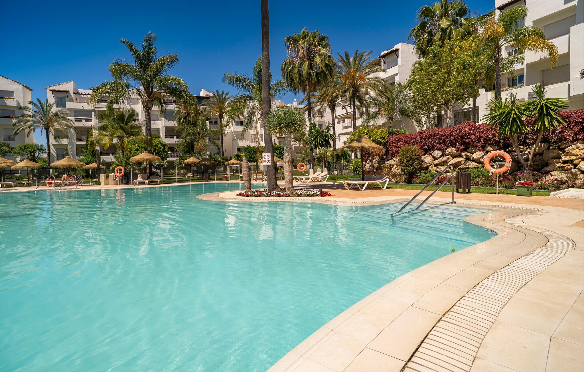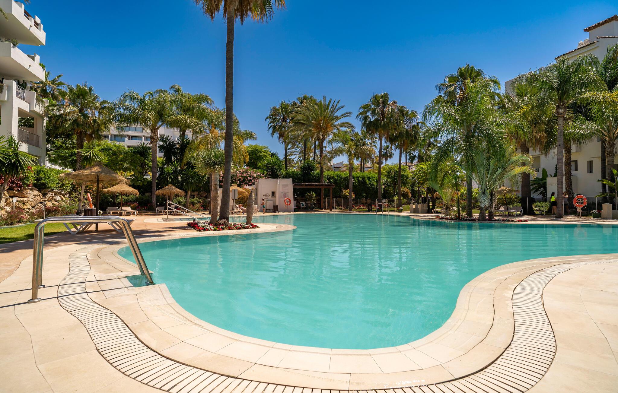 Oplev en afslappende ferie nær stranden og med adgang til pool og have.
