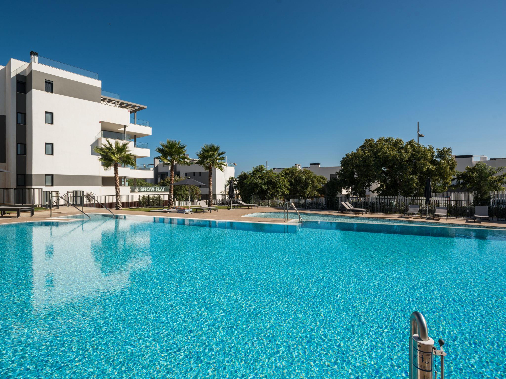 Modern, comfortable apartment block "Calma Blanca", built in 2021. In a central, busy, sunny position, 1.2 km from the sea, 1.2 km from the beach, south facing position. For shared use: 2 swimming pools, indoor pool heated (seasonal availability: 01.Jan. - 31.Dec. pool opening hours: 10:00-20:00). Unconventional pool shape. Shower/WC in the pool area. In the complex: fitness room, lift. Communal covered parking space n 01. Shop, supermarket, restaurant, bar, café, pedestrian zone 800 m, pub garden 300 m, bus stop "Avda Puerta de Mar" 400 m, sandy beach 1.3 km. Sports harbour 1 km, golf course (18 hole) 5 km, sports centre 300 m. Nearby attractions: Centro historico de Estepona 2 km. Object suitable for 6 adults. The owner does not accept any groups. The owner does not accept any youth groups. Neighbourhood highly sensitive to noise. Quietness and good behaviour expected.