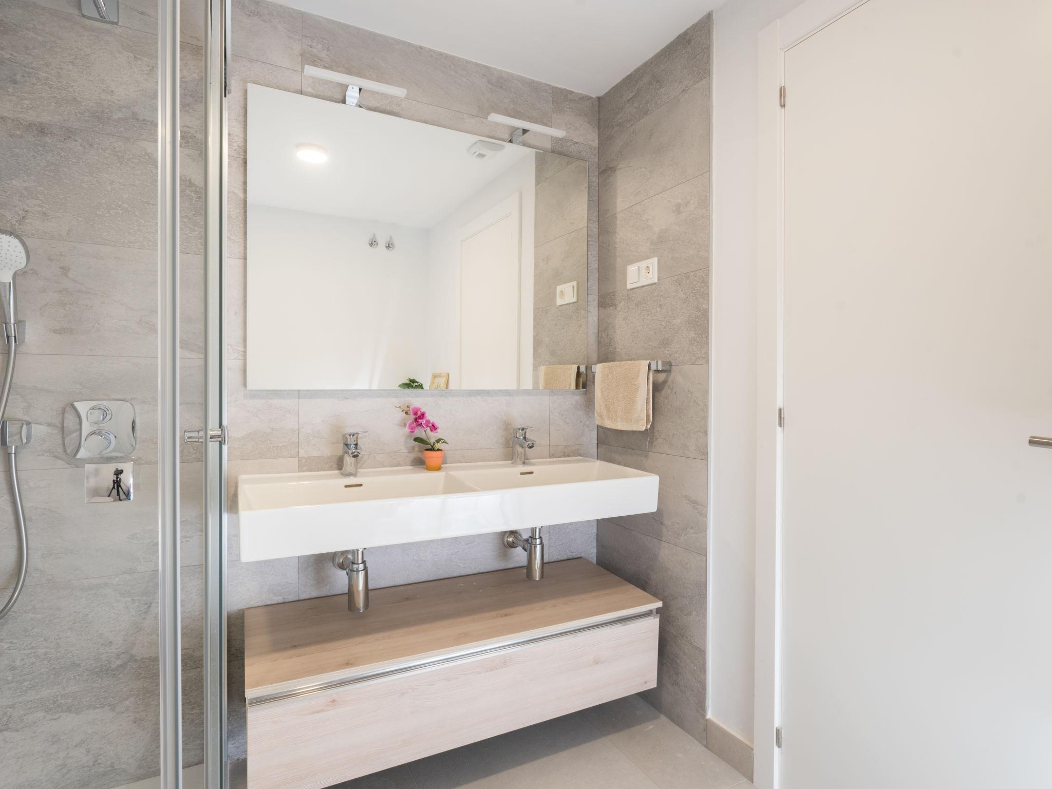4-room apartment 100 m2 on 2nd floor, south facing position. Object suitable for 6 adults. Modern and stylish furnishings: living/dining room with digital TV, air conditioning and forced-air heating. Exit to the terrace. 1 room with 1 french bed (150 cm, length 190 cm), bath/WC, hand-basin, air conditioning and forced-air heating. 1 room with 2 beds (90 cm, length 190 cm), air conditioning and forced-air heating. 1 room with 2 beds (90 cm, length 190 cm), air conditioning and forced-air heating. Open kitchen (oven, dishwasher, 3 ceramic glass hob hotplates, toaster, kettle, microwave, freezer, electric coffee machine). Shower/WC. Air-conditioning, forced-air heating. Natural stone floors. Terrace 50 m2. Terrace furniture, deck chairs (2), sitting area. Panoramic view of the sea and the city. Facilities: washing machine, iron, hair dryer. Internet (WiFi, free). Garage space n 01. Please note: suitable for families. Non-smokers only. VUT/MA/57377 // Reg. Nr.: ESFCTU0000290360006383990000000000000000VFT/MA/573775