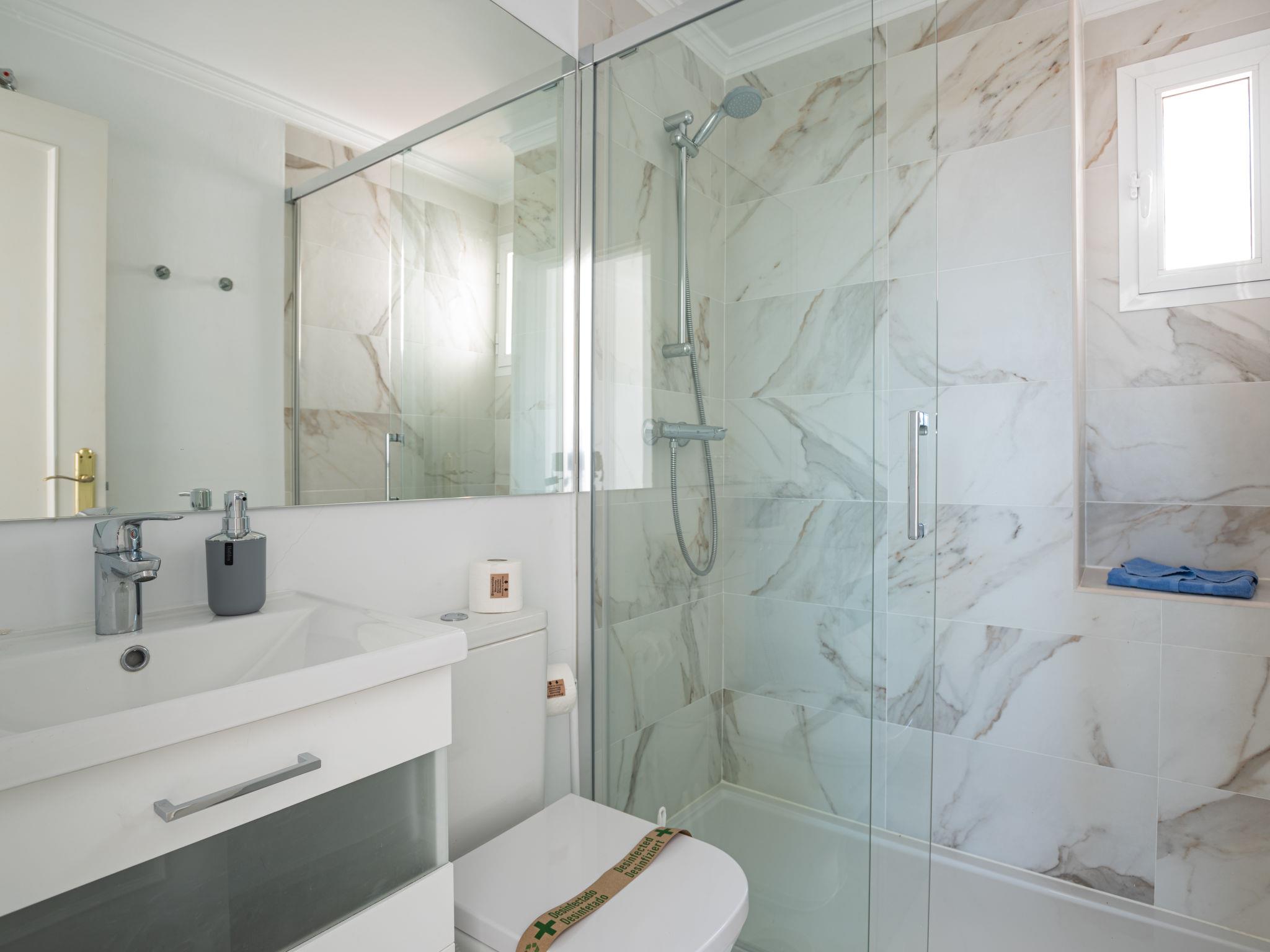 "Sol de Estepona", 3-room terraced house 115 m2 on 2 levels. Beautiful furnishings: open living/dining room with international TV channels. Exit to the terrace. Large kitchen (oven, dishwasher, 3 induction hot plates, toaster, kettle, microwave, electric coffee machine). Sep. WC. Air-conditioning, forced-air heating. Upper floor: 1 room with 1 bed (150 cm, length 200 cm), bath/WC (private). Exit to the balcony. 1 room with 1 french bed (150 cm, length 200 cm), bath/WC (private). Exit to the terrace. Air-conditioning, forced-air heating. Large terrace 45 m2. Terrace furniture, barbecue, deck chairs (2). Beautiful view of the bay. Facilities: washing machine, iron, children's high chair, baby cot, hair dryer. Internet (WiFi, free). Parking at 15 m. Please note: suitable for families. Non-smoking house. No lift. Check in time: 16.00h-19.00h via prior agreement with property manager at least 24h before arrival. Late check in: 19.00h-22.00h: 25€, 22.00h-00.00h: 50,-€ to be paid in cash on check in. Cromecast available. VUT/MA/42322 // Reg. Nr.: ESFCTU0000290360002218740000000000000000VUT/MA/423224